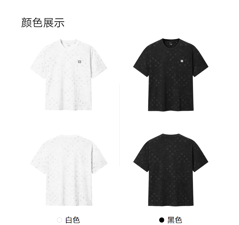 GXG男装 圆领T恤暗满印上衣短袖针织 日常通勤舒适短袖T恤 2025夏季热卖