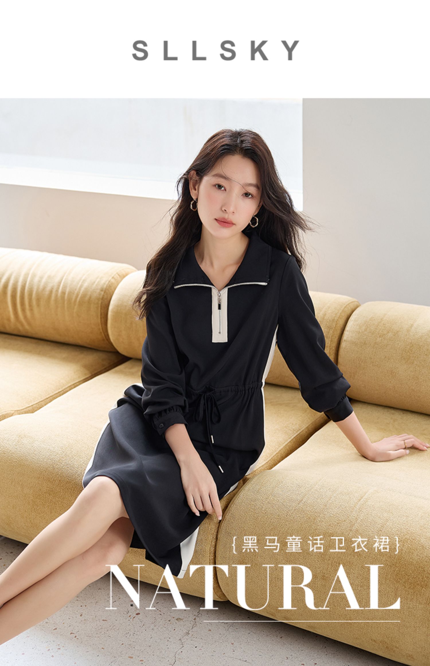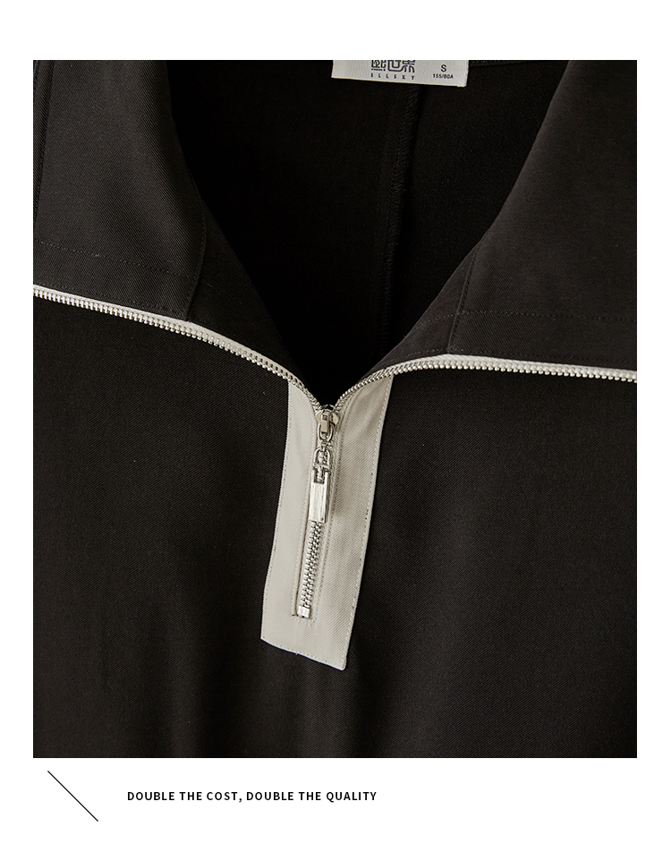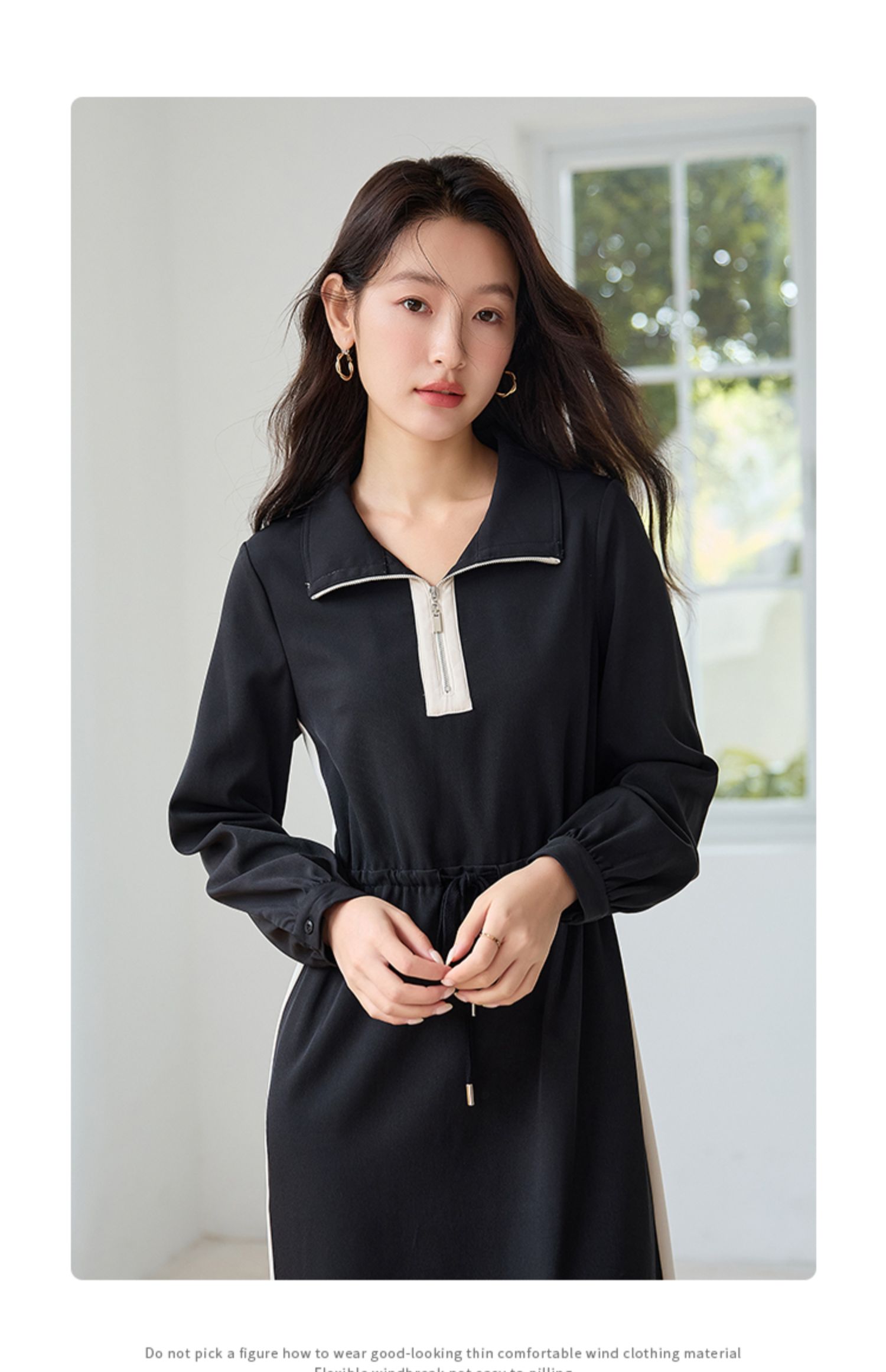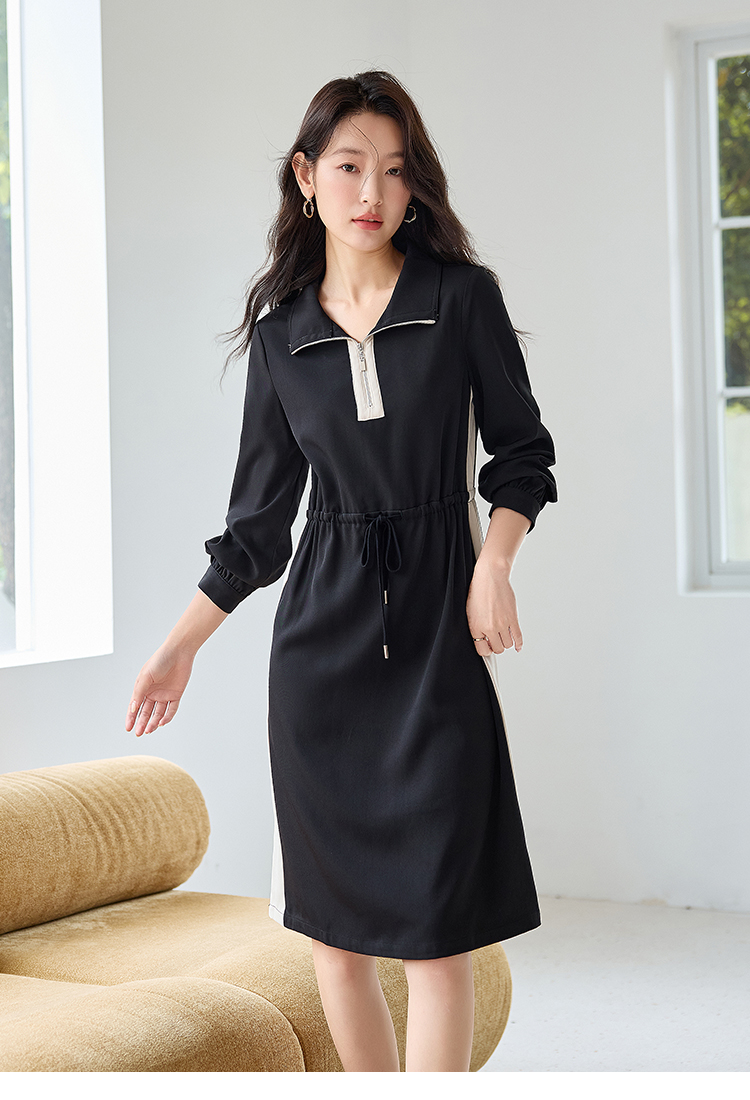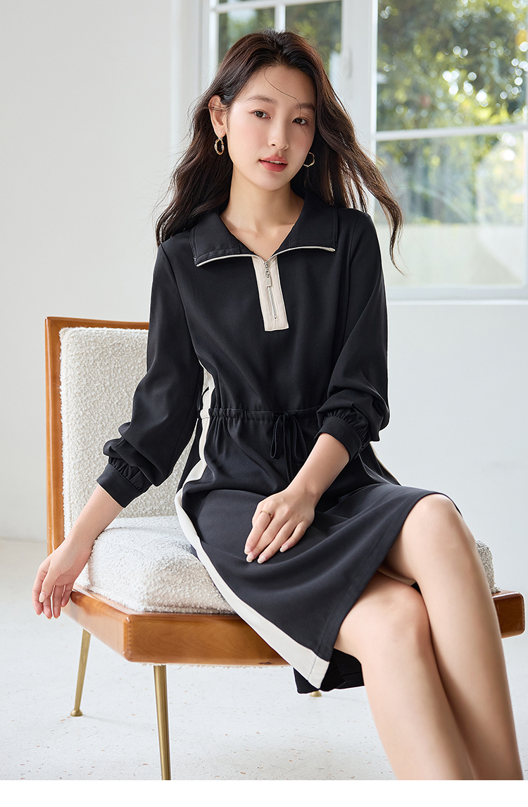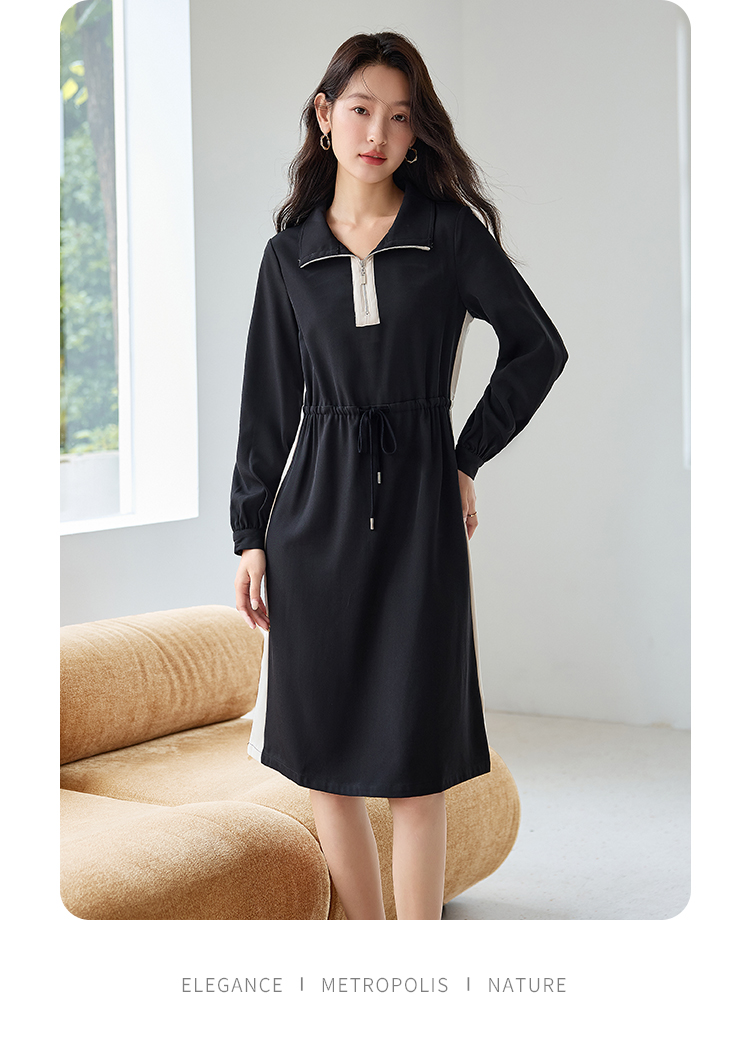 【年终特卖】熙世界休闲POLO领连衣裙2025秋季新款宽松时尚撞色拉链卫衣裙