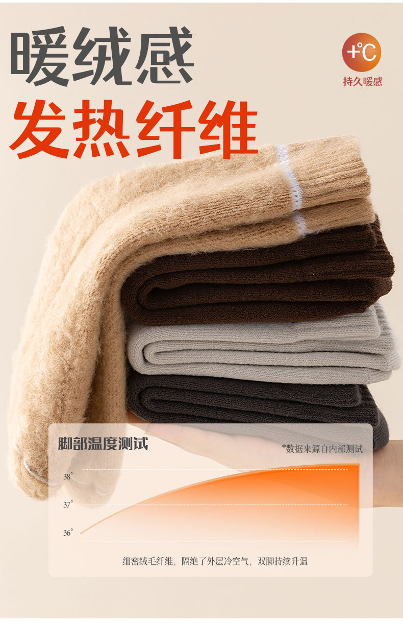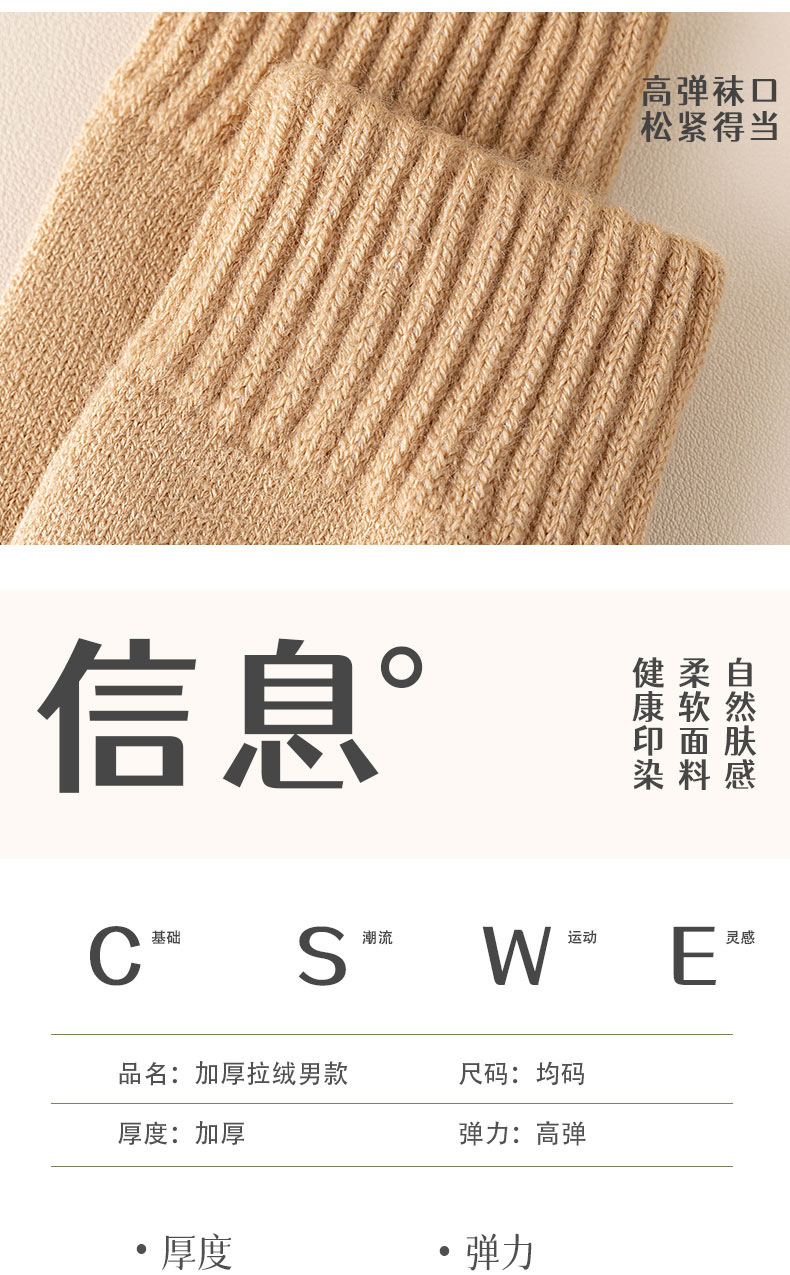 「5双装!加绒加厚」俞兆林5双装加绒加厚袜子男款秋冬季中筒袜蓄热保暖毛圈袜地板袜配饰