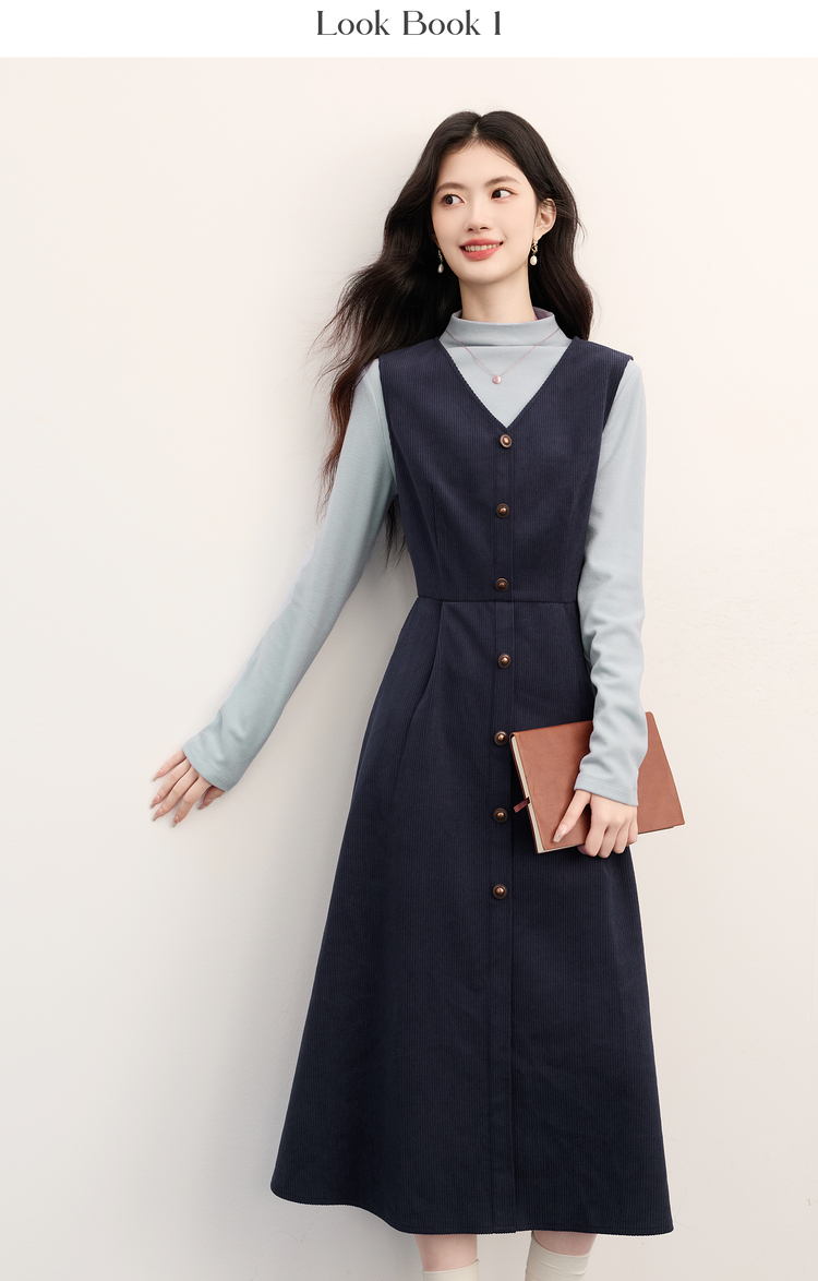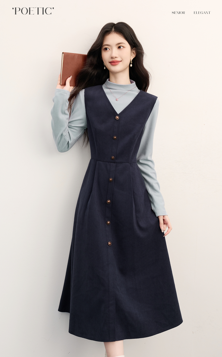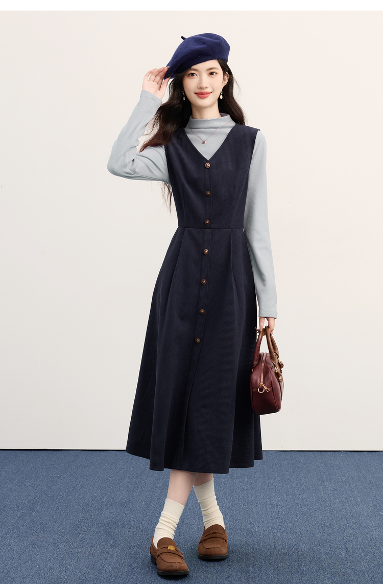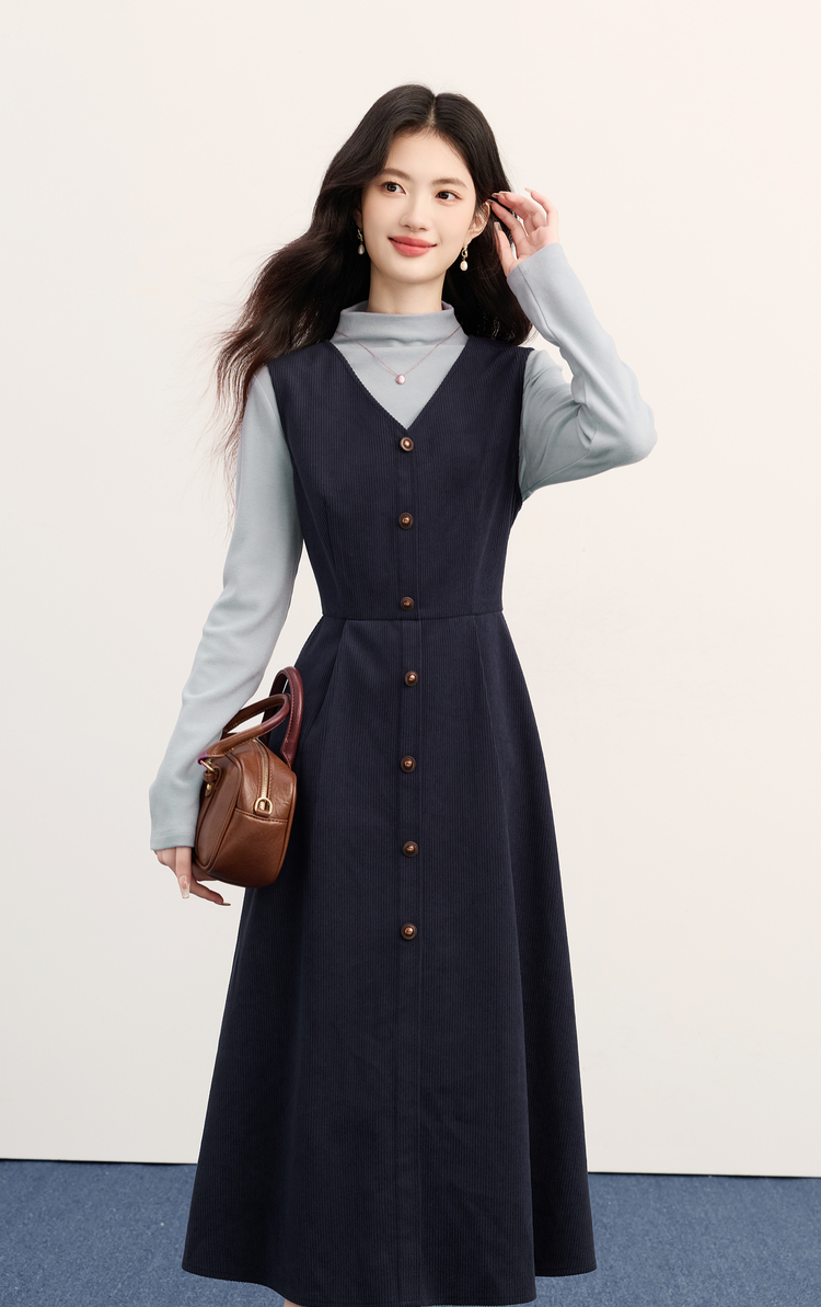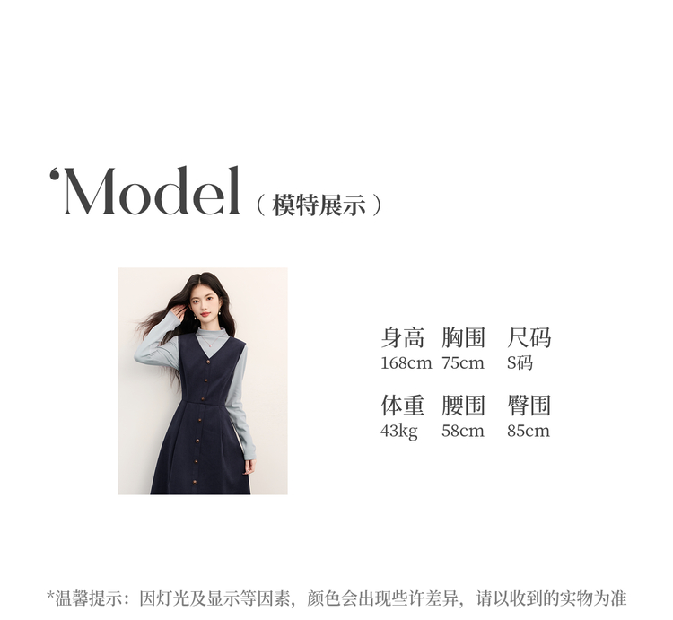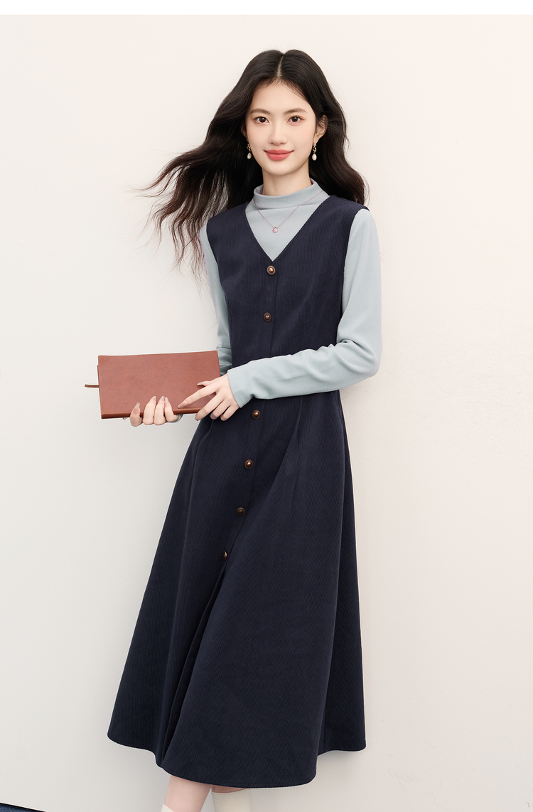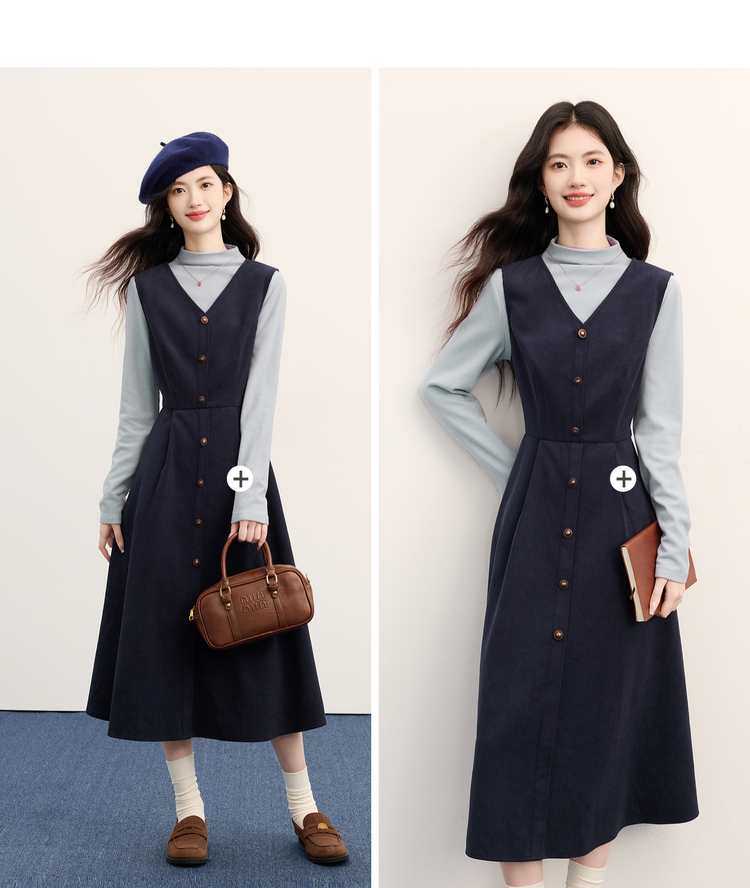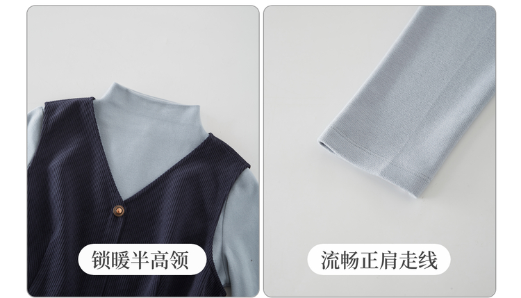 【11/26新品】熙世界富家千金感半高领打底衫背心连衣裙两件套装女2025秋冬新款