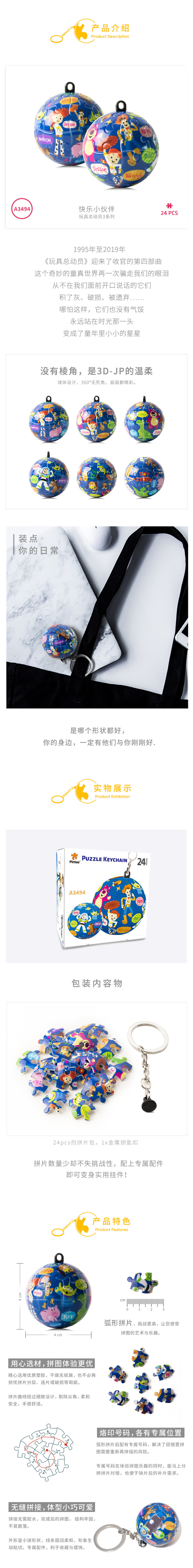 24片 钥匙扣拼图 塑料拼图 A3494 玩具总动员3-快乐小伙伴