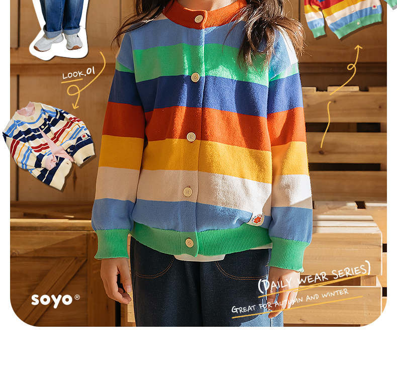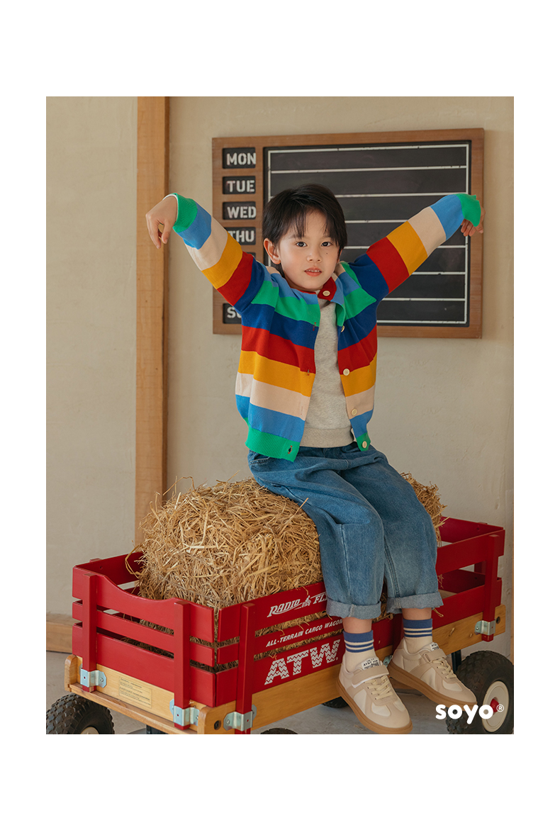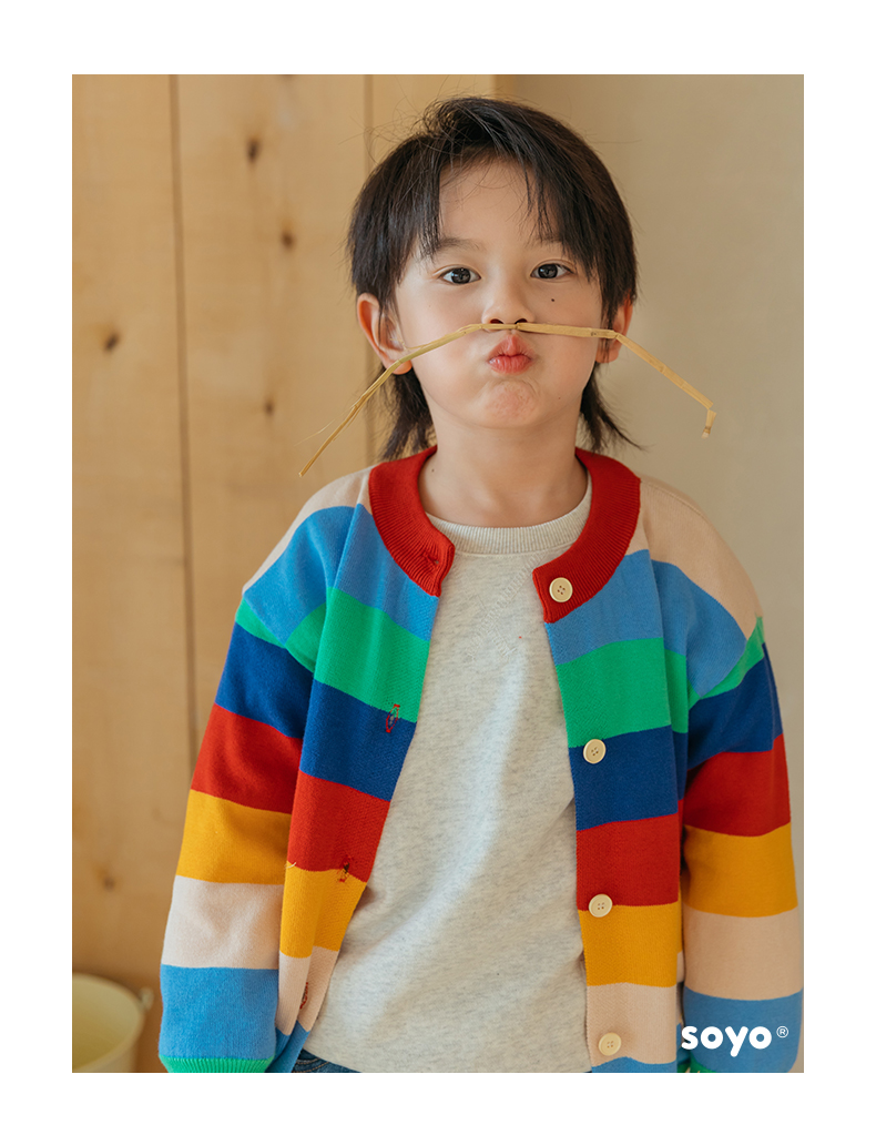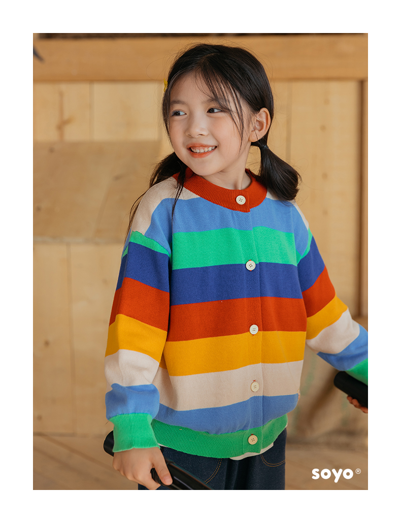 soyo舍予良仓柔软不扎百搭彩虹毛衣开衫