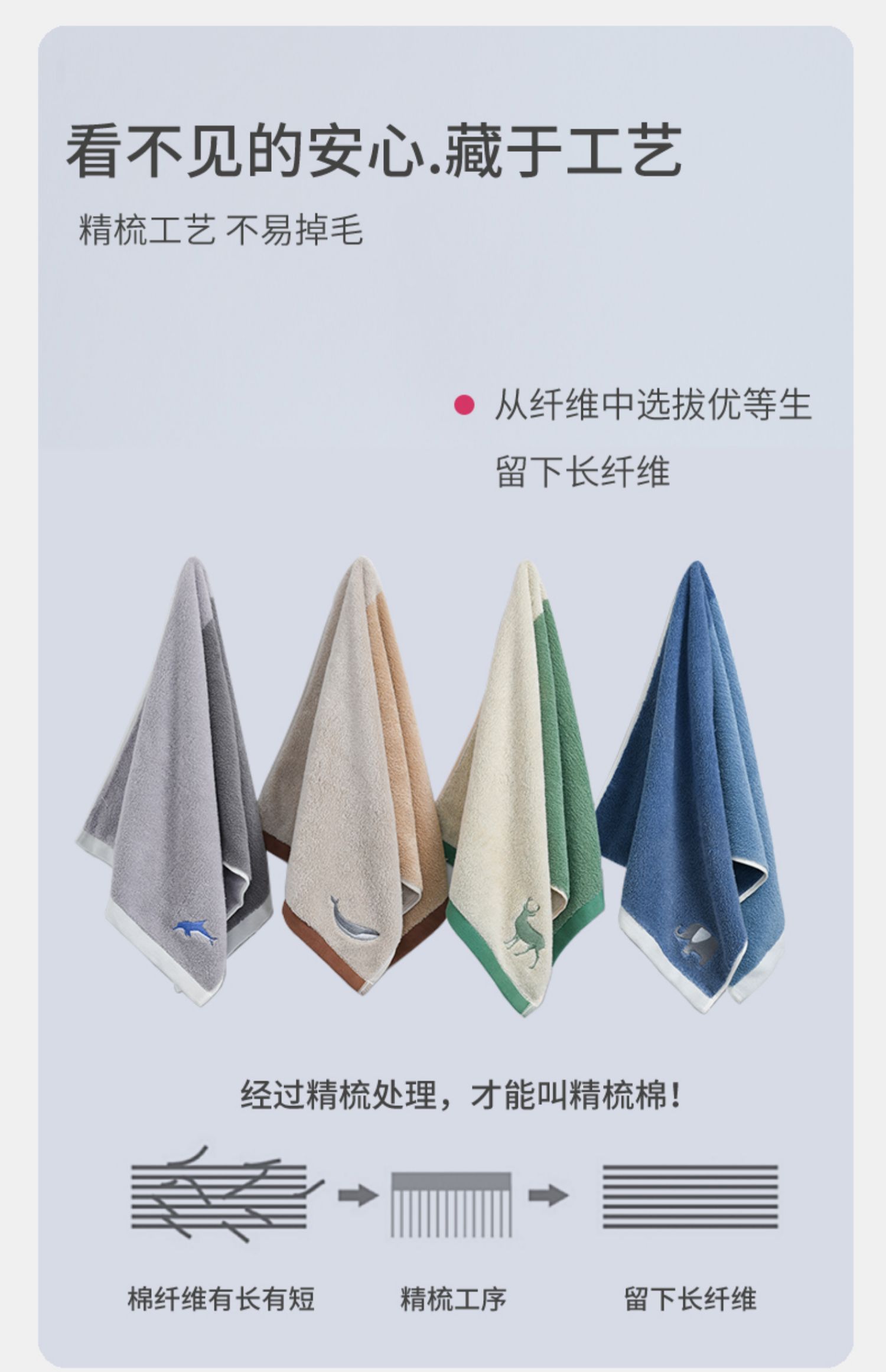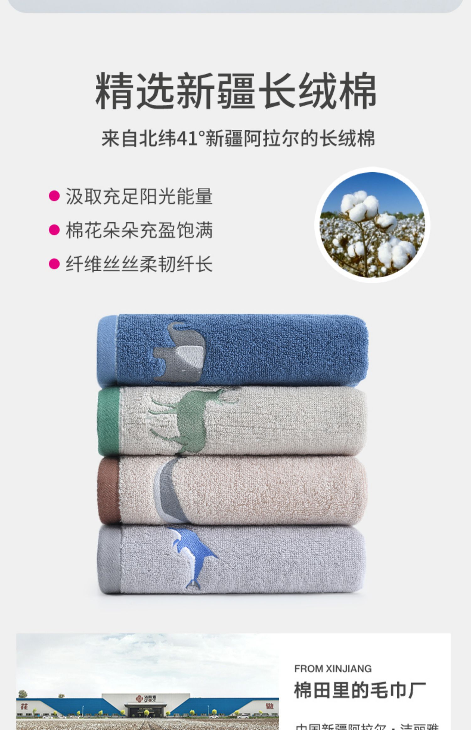 洁丽雅动物刺绣纯棉毛巾家用成人款全棉洗脸巾面巾擦脸巾加厚吸水
