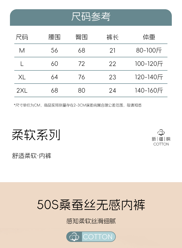 洁丽雅50S高腰女士棉质内裤桑蚕丝抗菌内裆裸感舒适三角裤