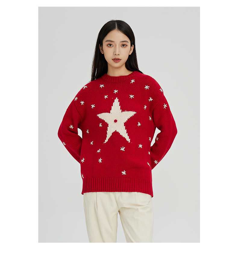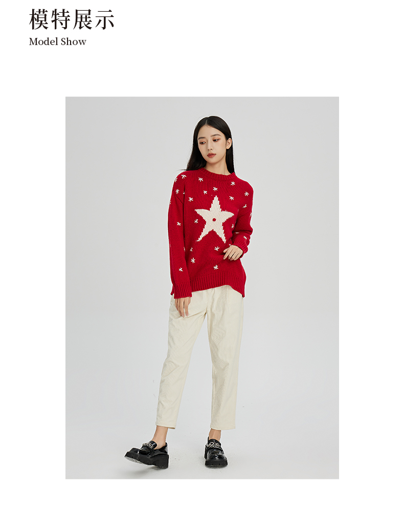 NUTS商场同款秋冬款红色气质半高领宽松毛织套头衫女241052593