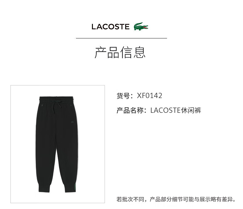 Lacoste法国鳄鱼女装束脚抽绳健身裤休闲百搭运动长裤XF0142-98