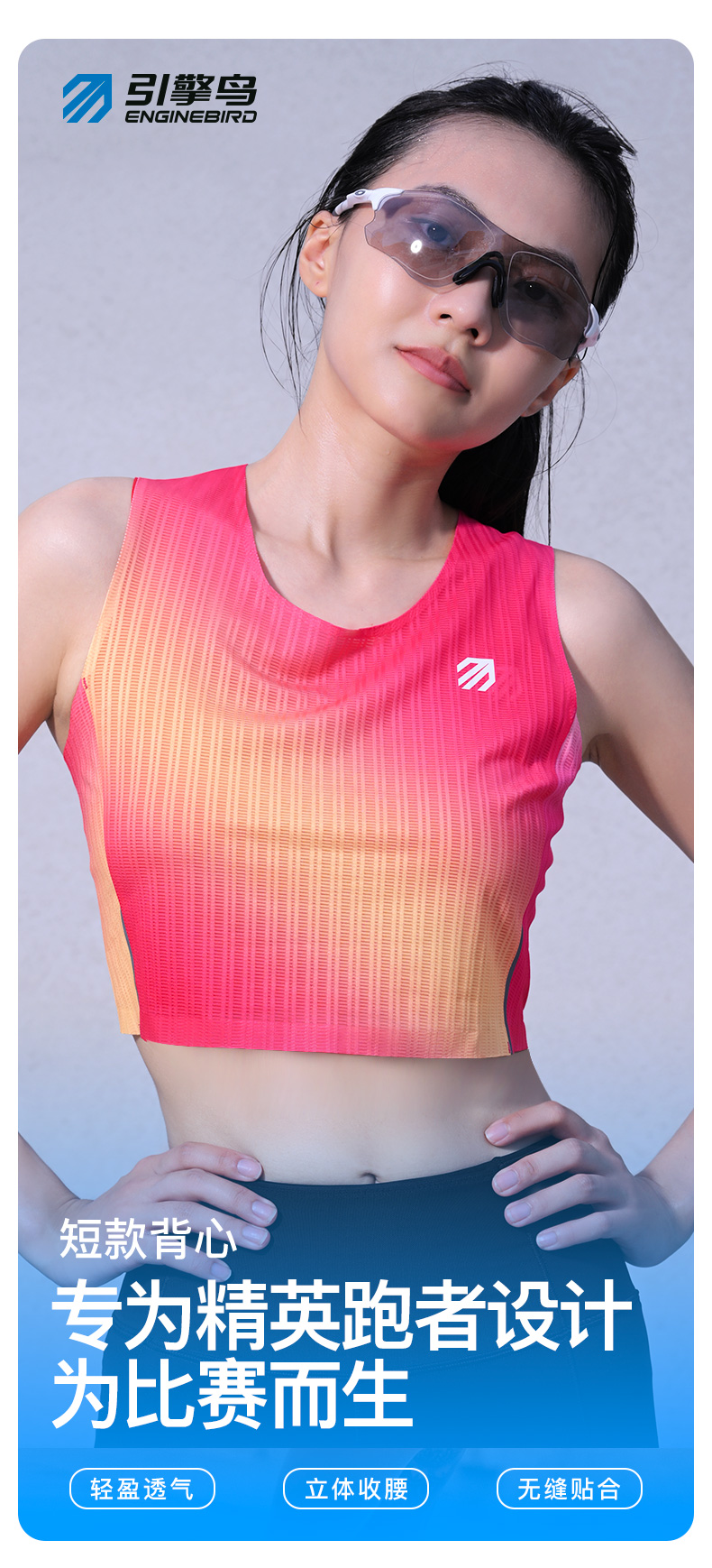 引擎鸟活力超轻速干炫彩短款背心女子马拉松跑步