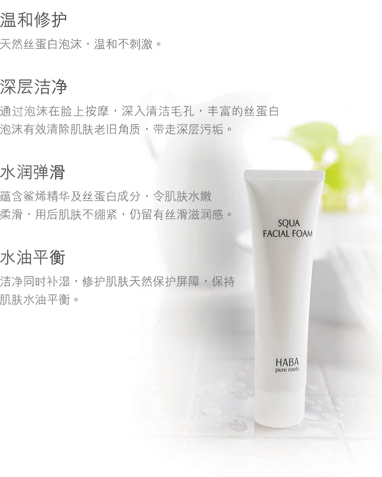 HABA洗面奶日本鲨烷保湿洁面乳100g 深层清洁泡沫敏感肌孕妇可用