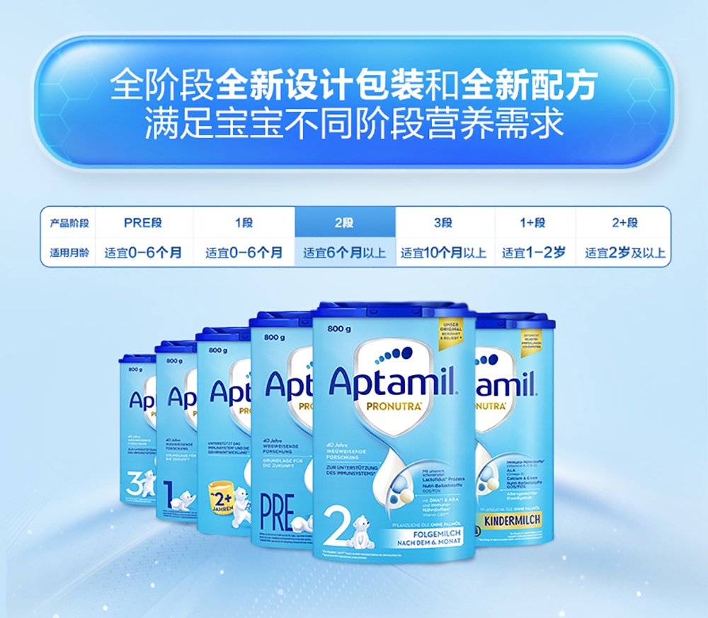 【跨境进口】2段 | 德国本土经典版Aptamil2段德国爱他美奶粉2段6-10个月800g | 超过6罐请分开下单(跨境商品报关后不支持退货,介意慎拍)
