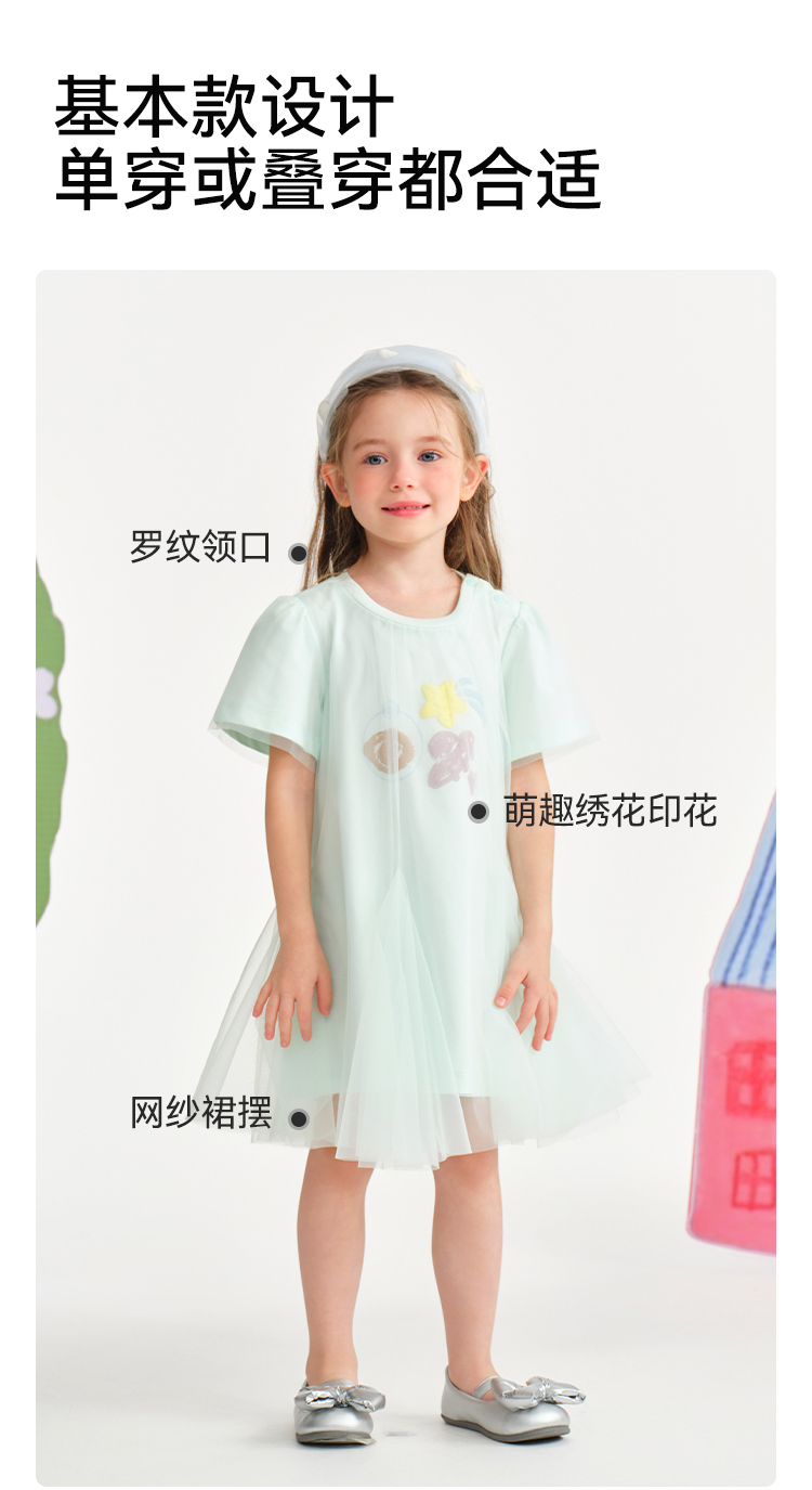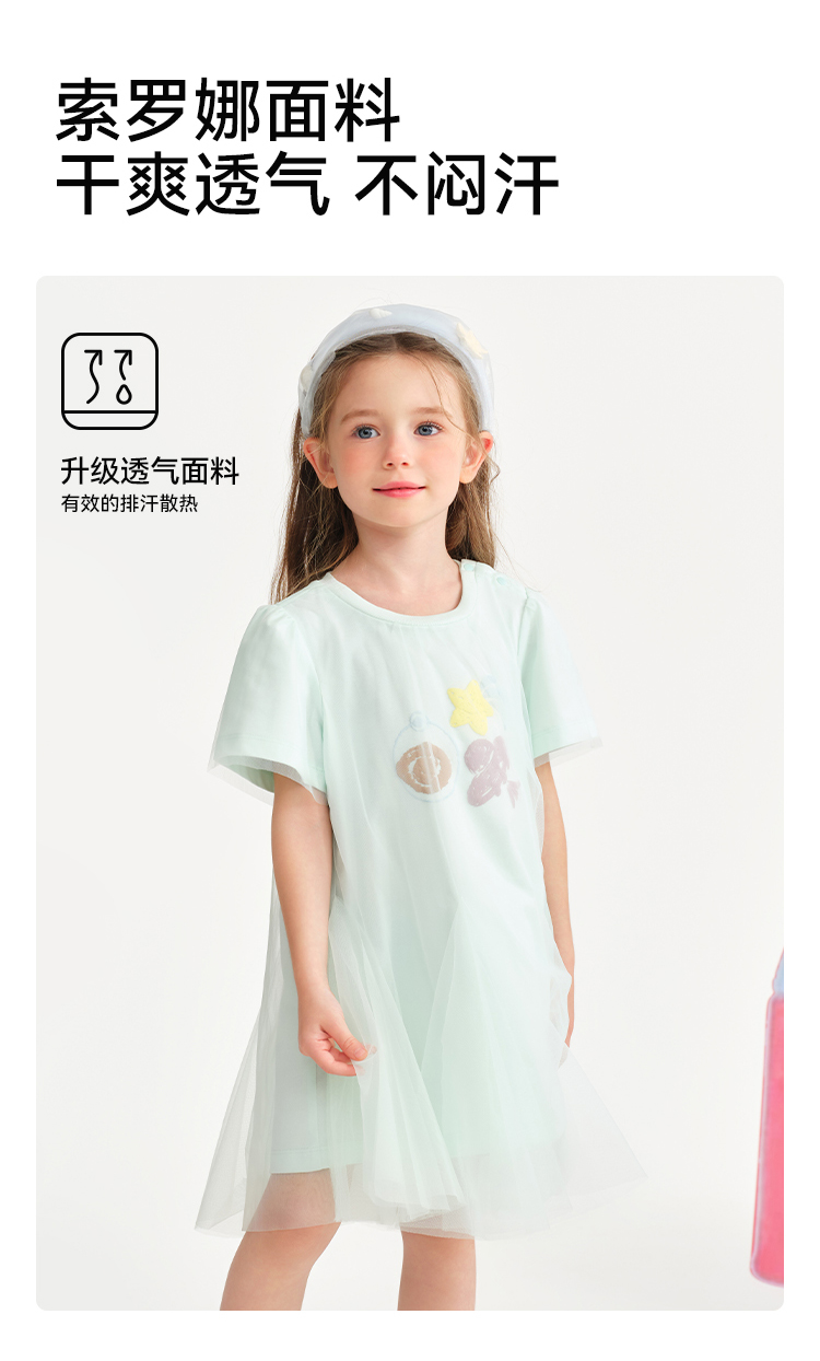 【英氏】【索罗娜网纱】【90-130】女童夏季亲肤连衣裙