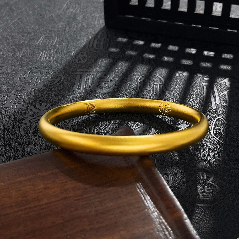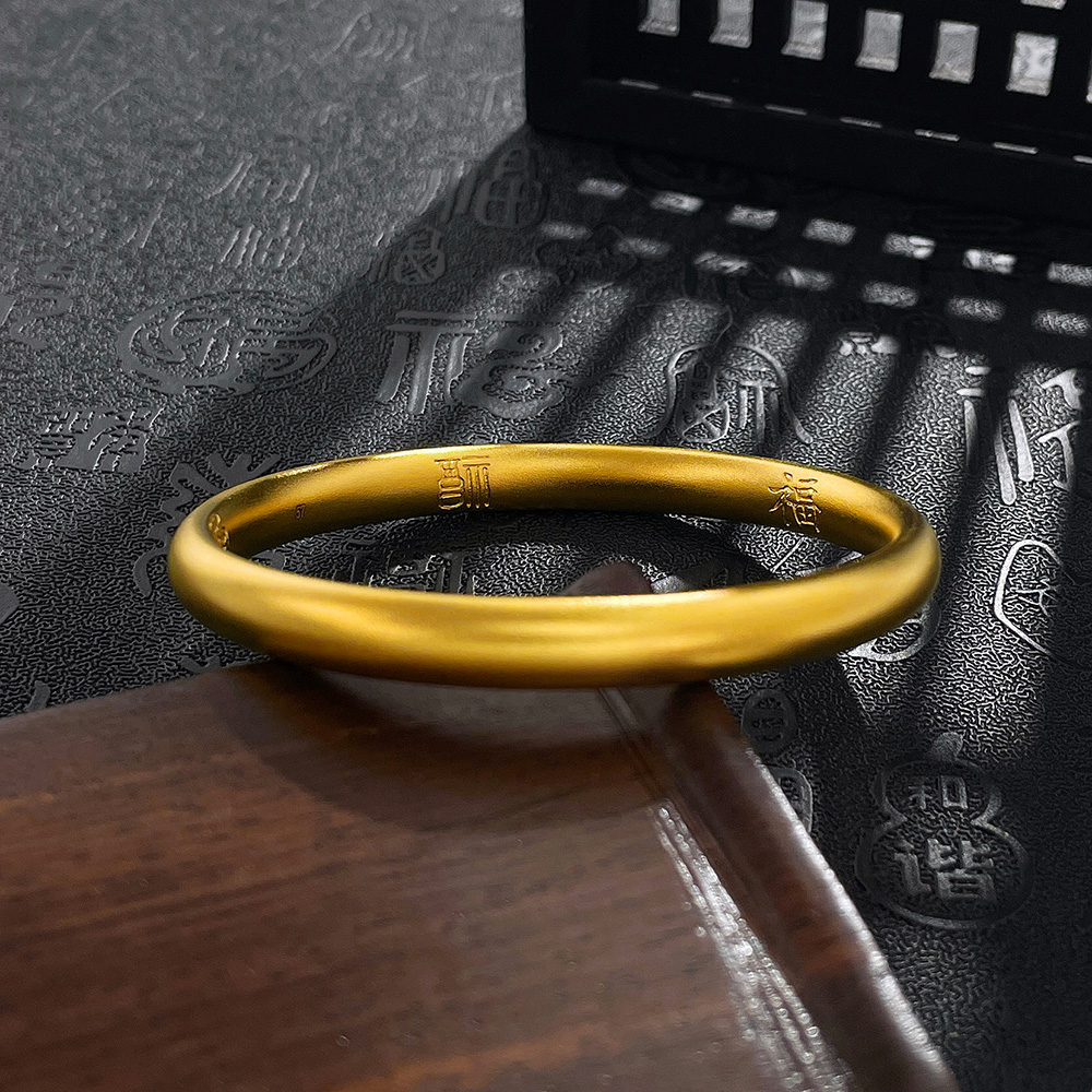 【限时克减150元】足金999.9 #复古风 古法空心固口内五福临门福字泥鳅背手镯(面宽约6.5-6.9mm,厚约4.3mm)(GFSZW00170-01)