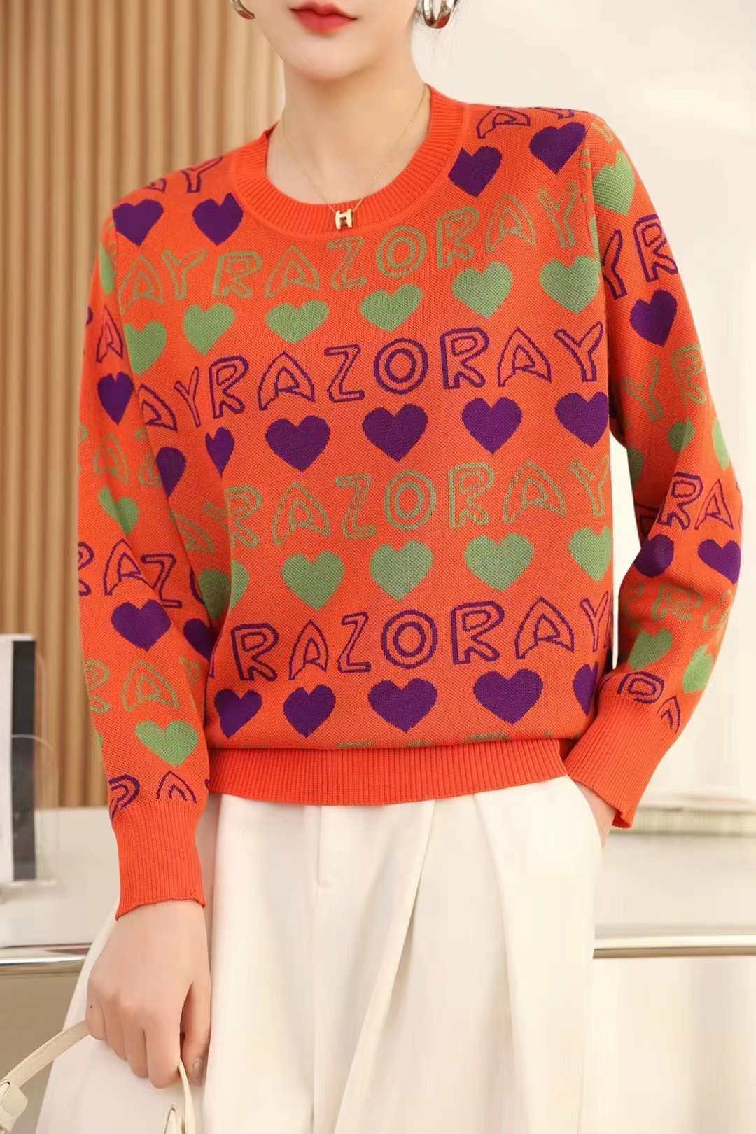 C99-219 # 桔色均码 低圆领毛衣,靓丽的桔色~为沉闷的冬日增添一份色彩