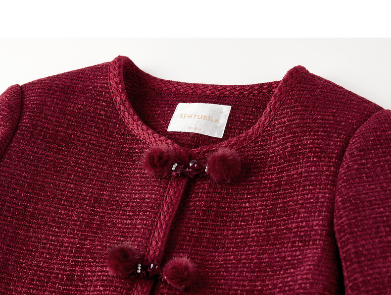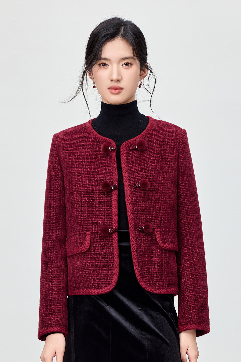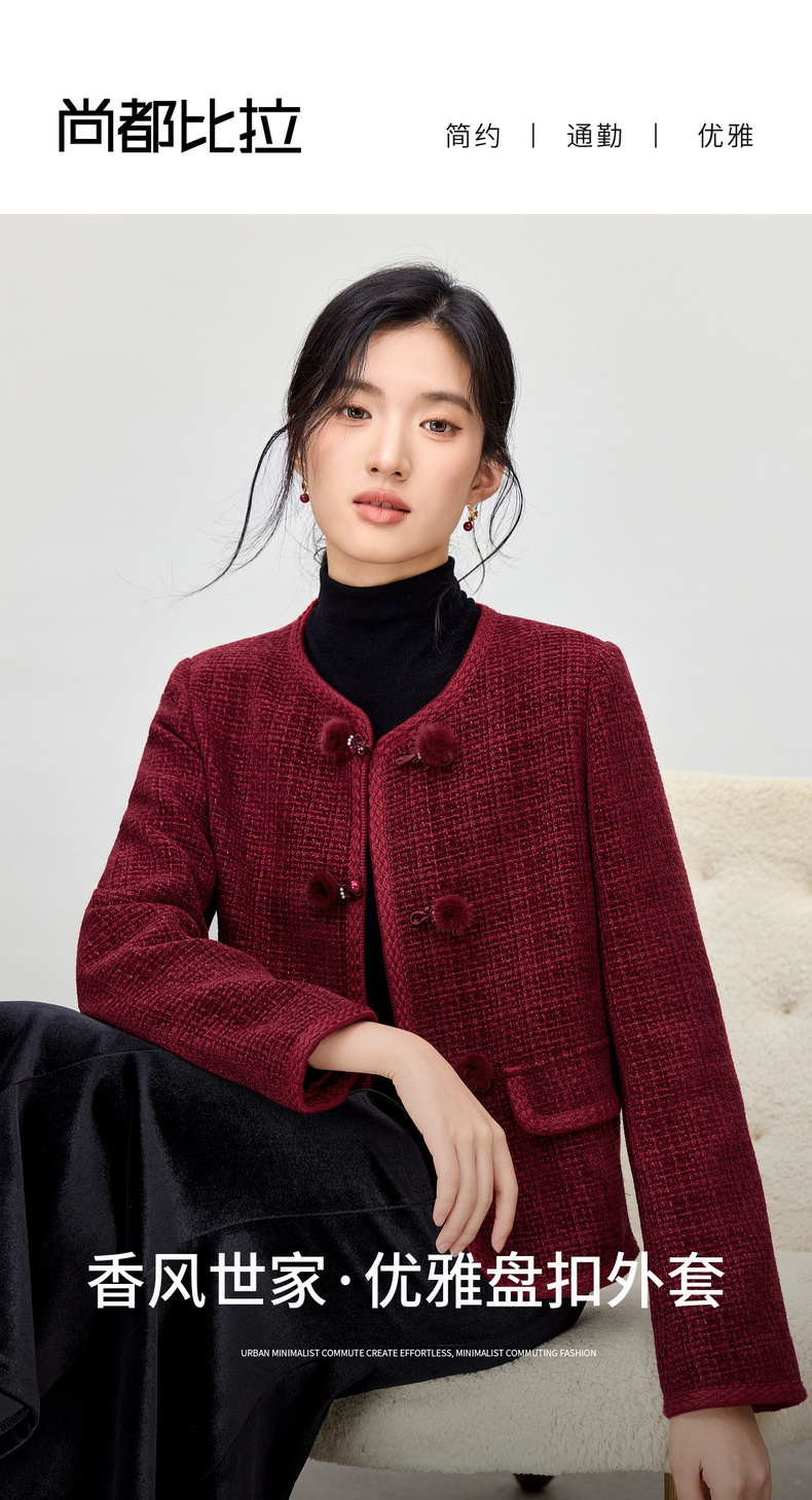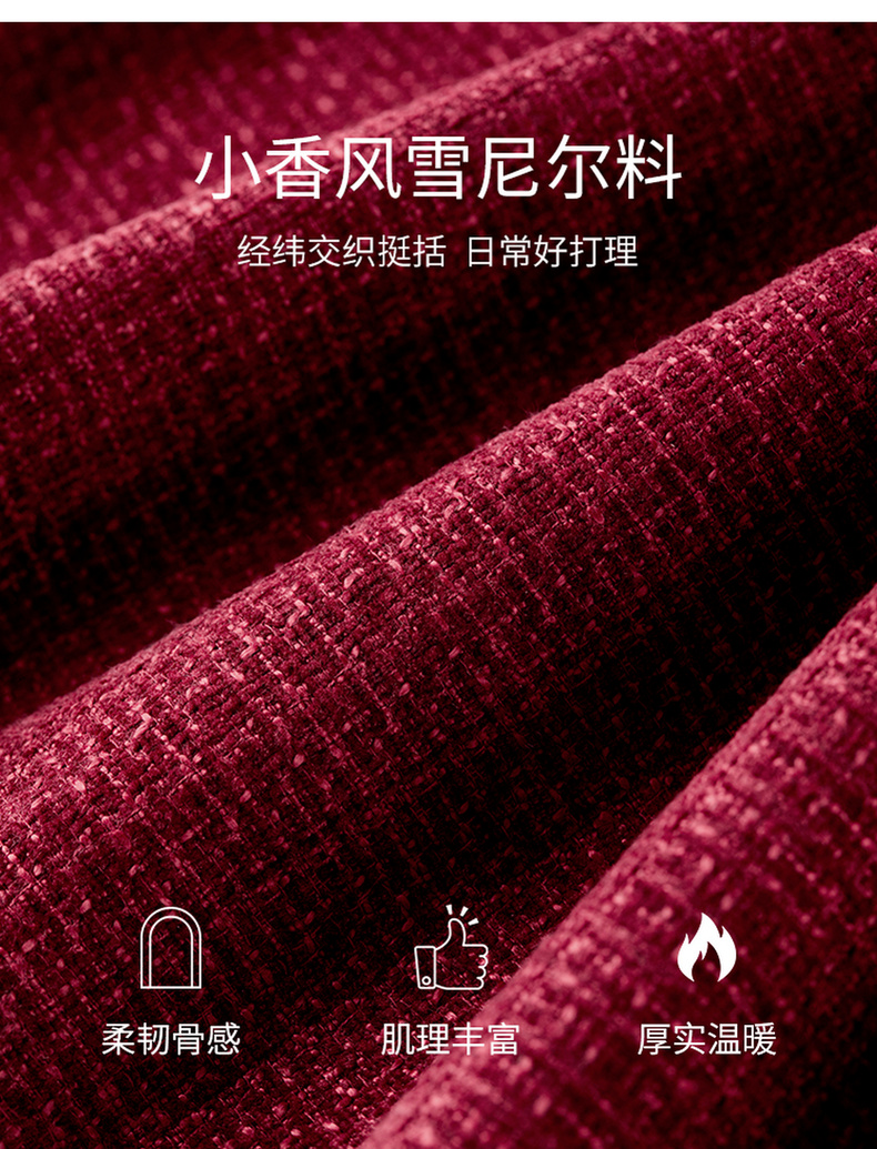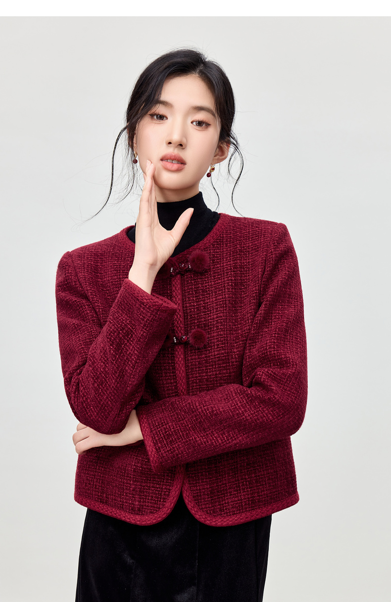 【内购】【毛绒盘扣】通勤织带圆领装饰假口袋垫肩厚保暖小香风雪尼尔外套-154WA3701