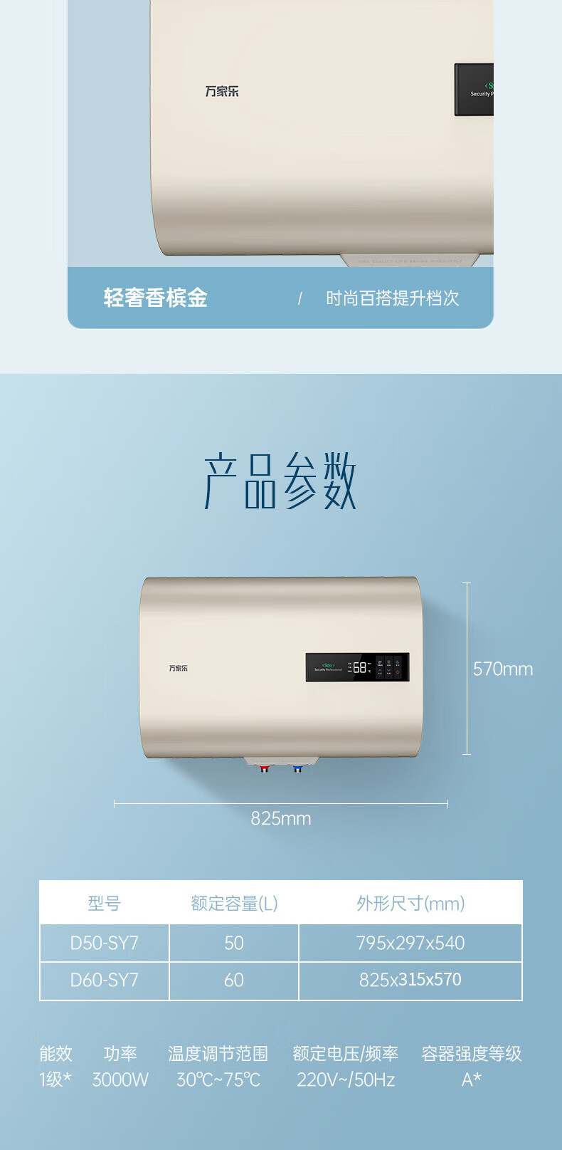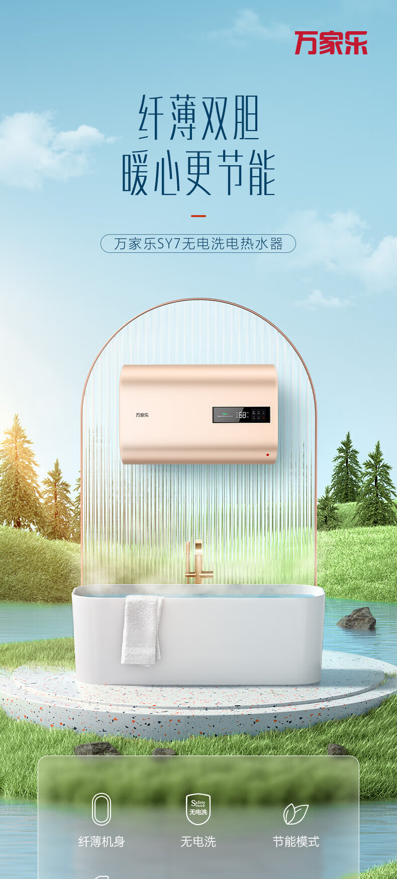 万家乐暖心更节能 SY7 50L/60L无电洗电热水器 纤薄双胆