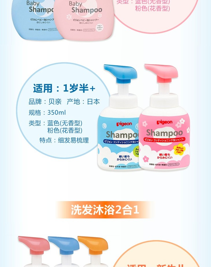 【保税仓】Pigeon/贝亲 小童弱酸性泡沫洗发水 1岁半 350ml 蓝色 商品缩略图0