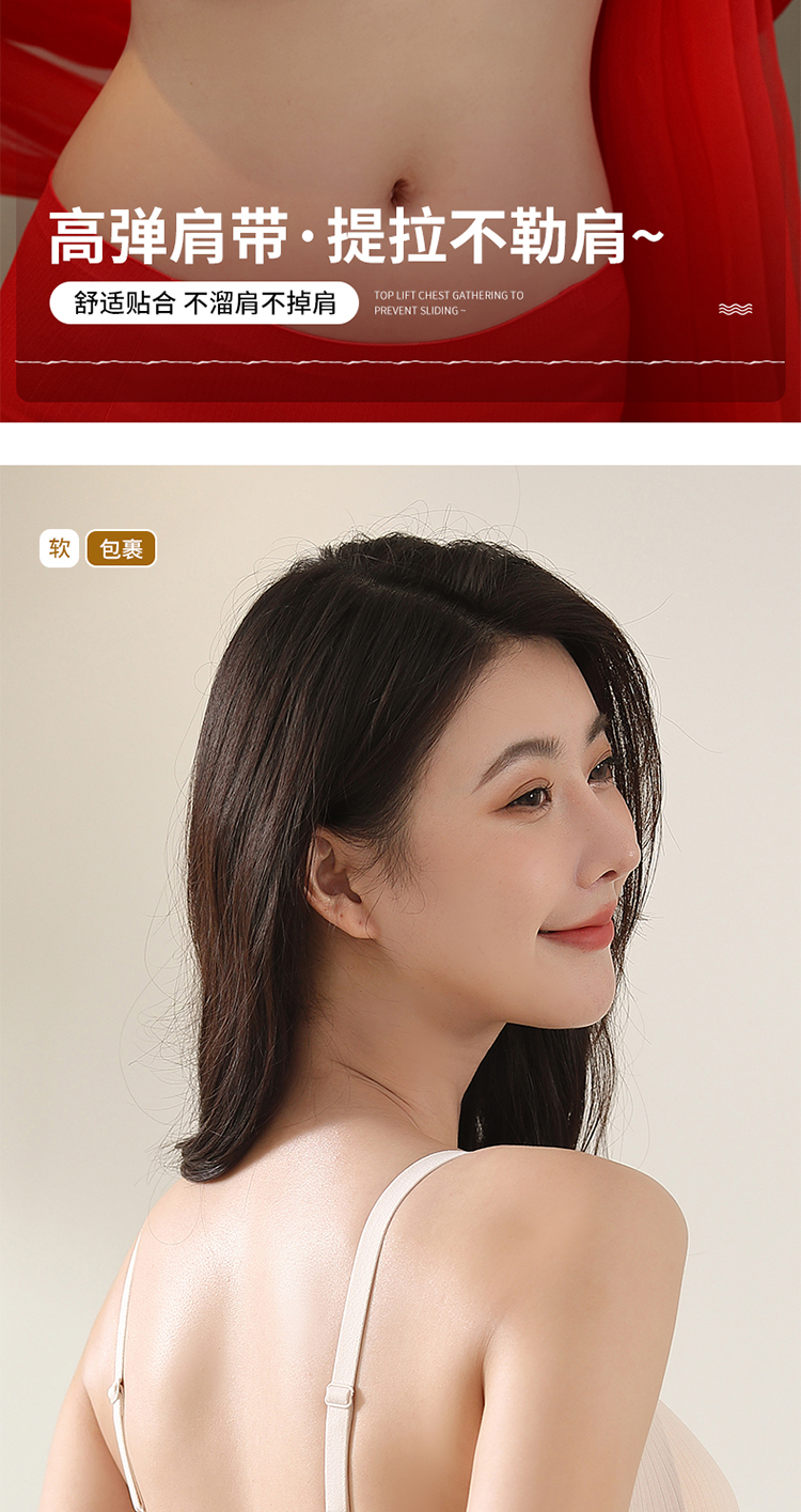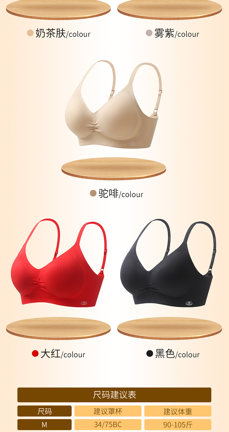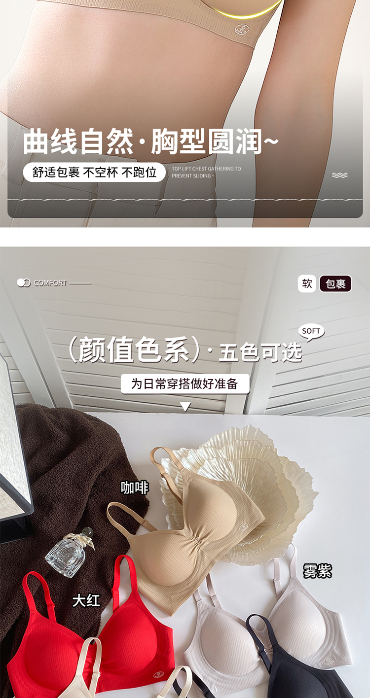 轻梵 褶皱感幸福大红盒内衣 半固定杯 机洗不跑杯 聚拢固定 果冻软支撑 舒适收副乳 片式无痕设计