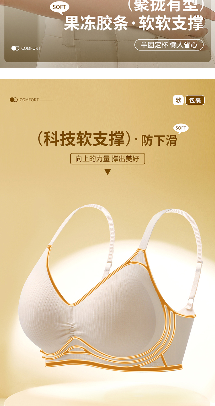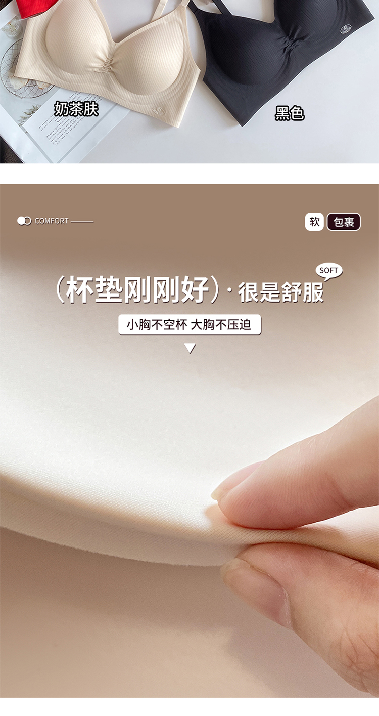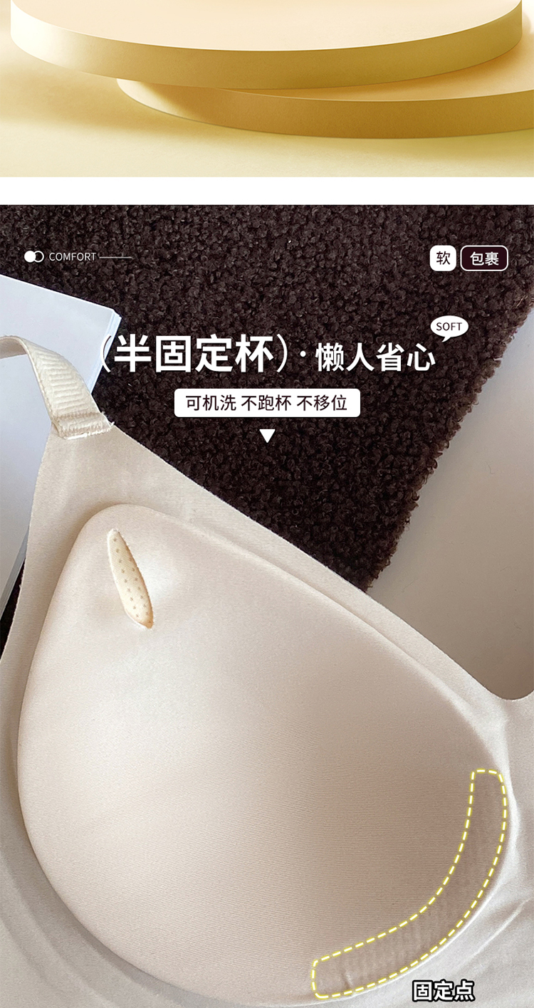 轻梵 褶皱感幸福大红盒内衣 半固定杯 机洗不跑杯 聚拢固定 果冻软支撑 舒适收副乳 片式无痕设计