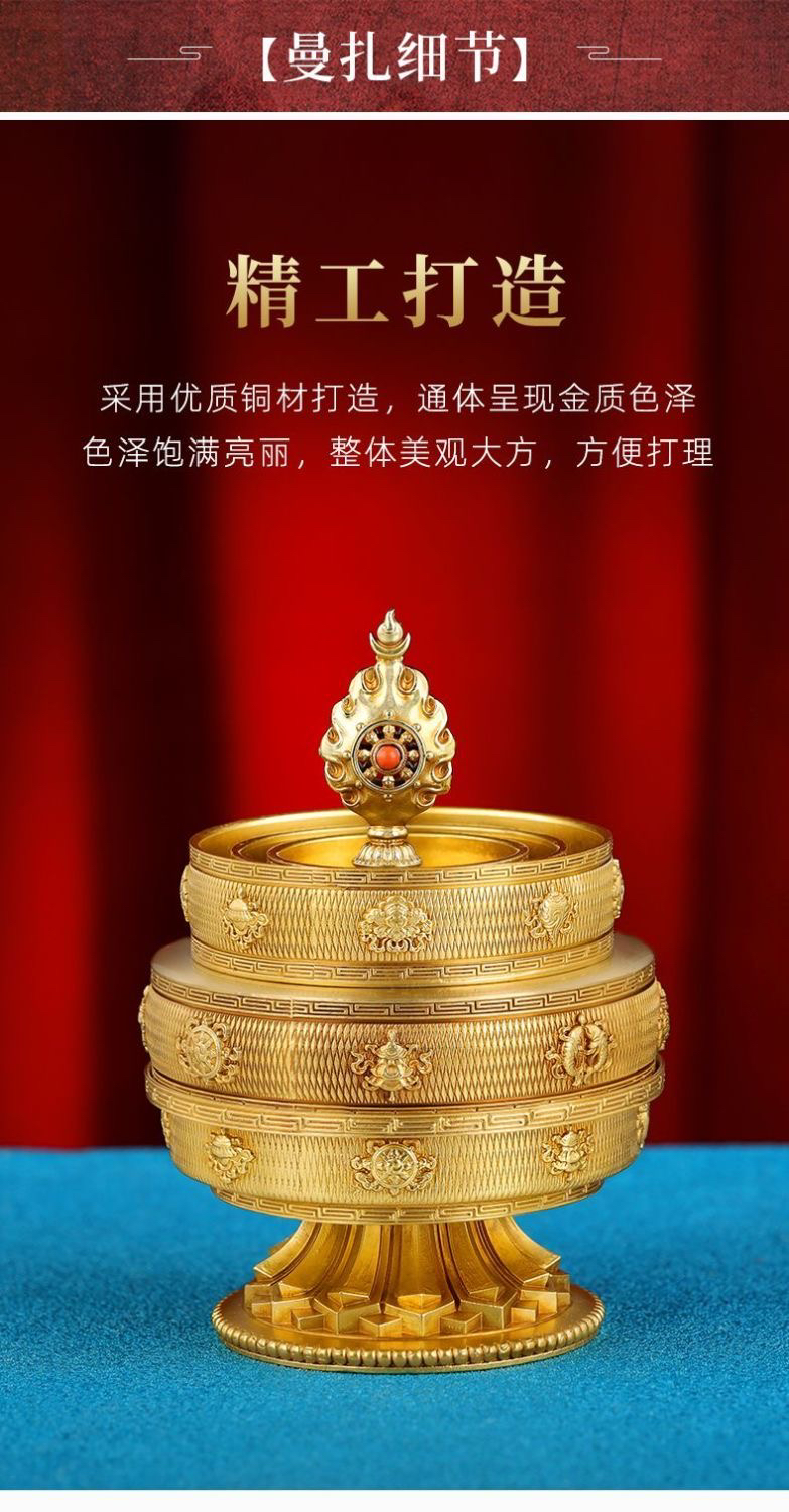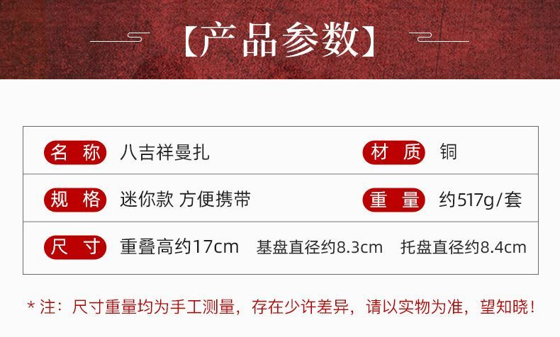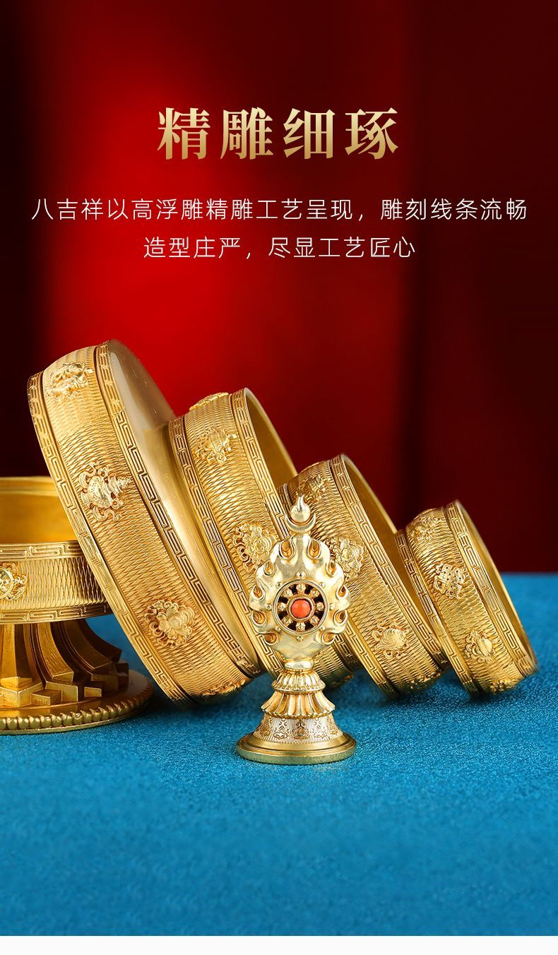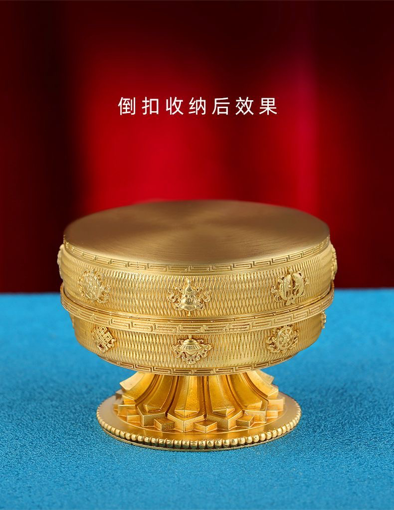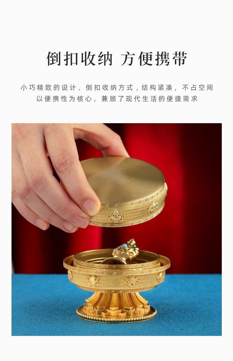 藏式曼扎铜修盘八吉祥盘雕花便携迷你曼扎八吉祥曼达盘全套8cm