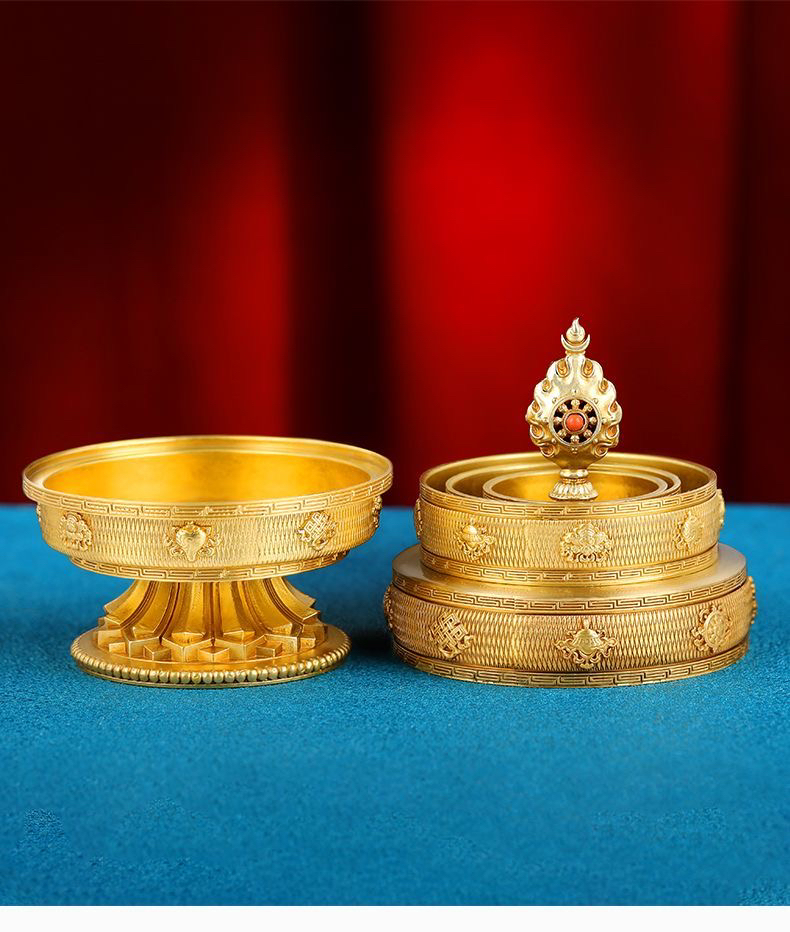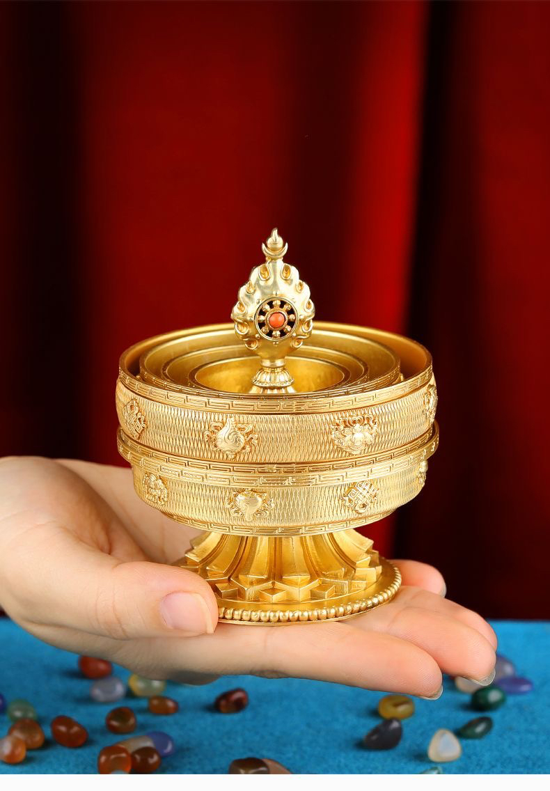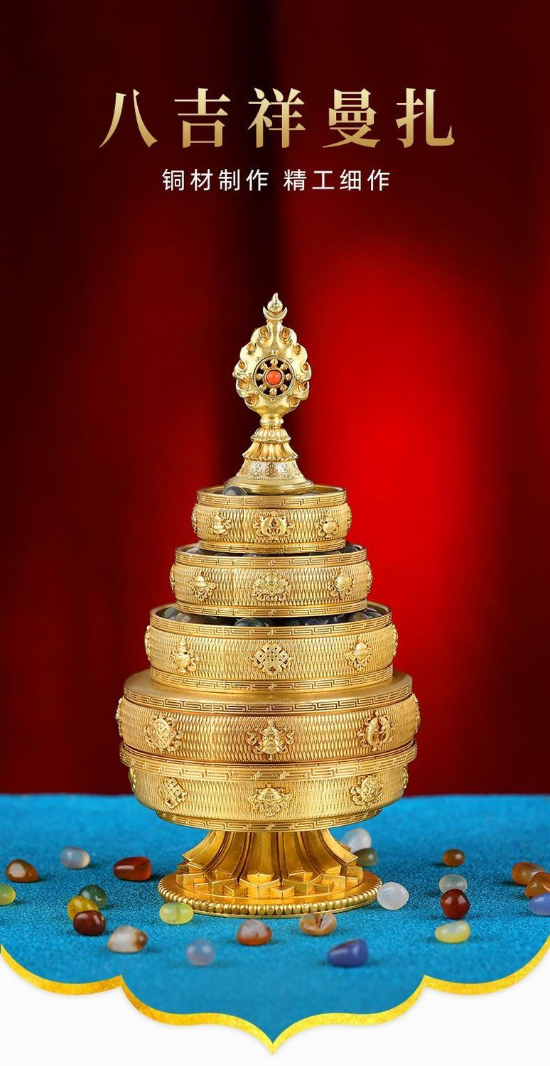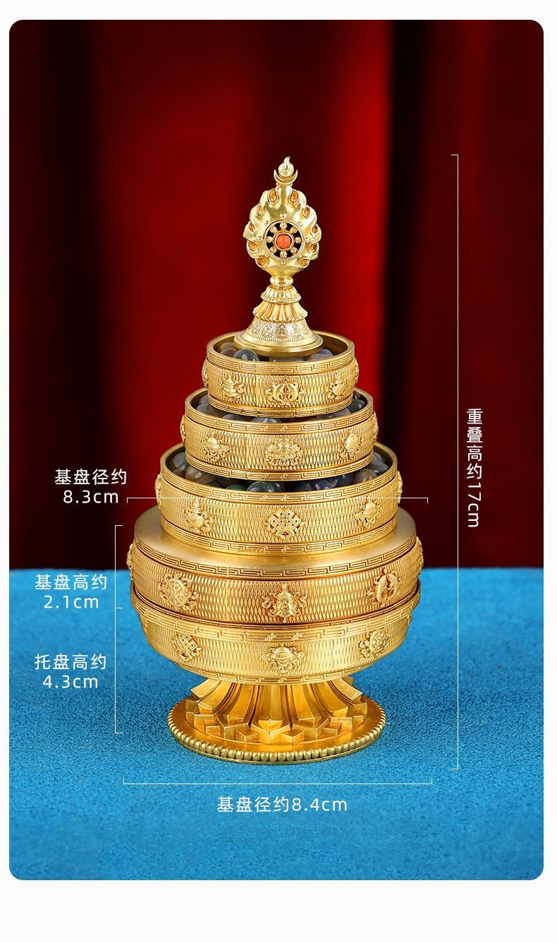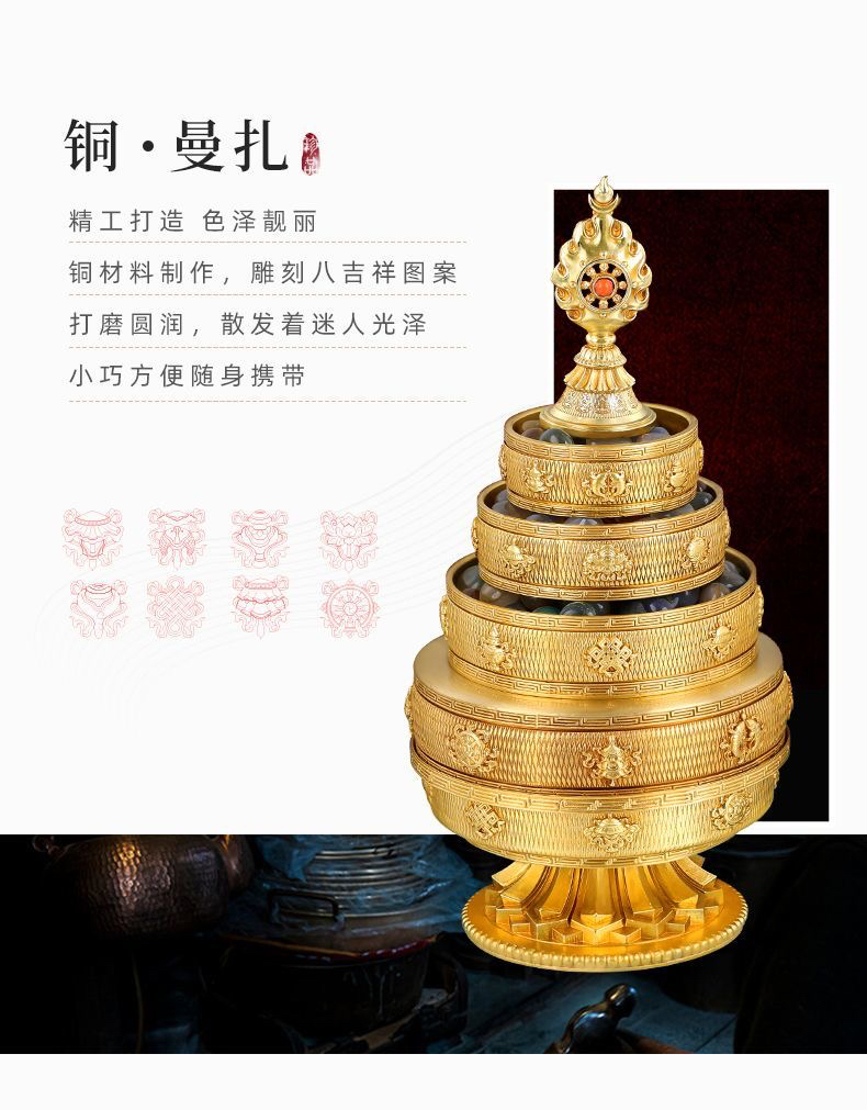 藏式曼扎铜修盘八吉祥盘雕花便携迷你曼扎八吉祥曼达盘全套8cm