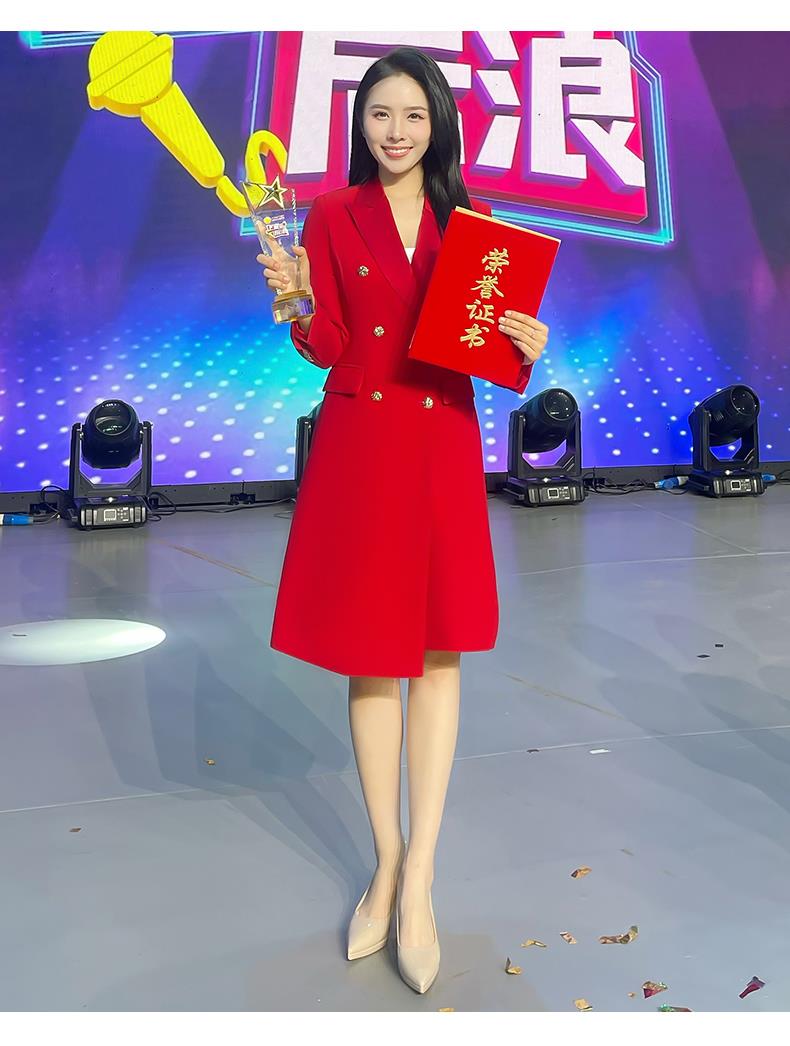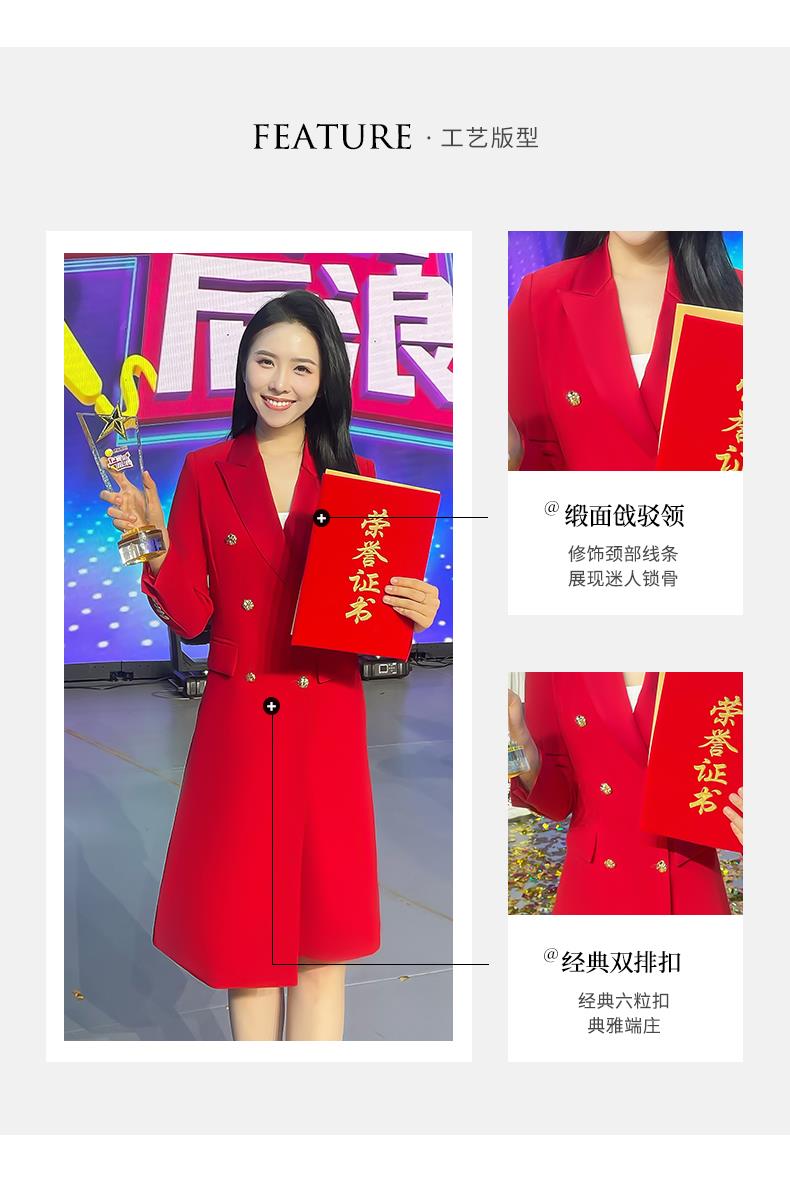 IWY/西装连衣裙红色年会礼服女缎领拼接主持人大赛演讲比赛高端西装裙Q1002-R