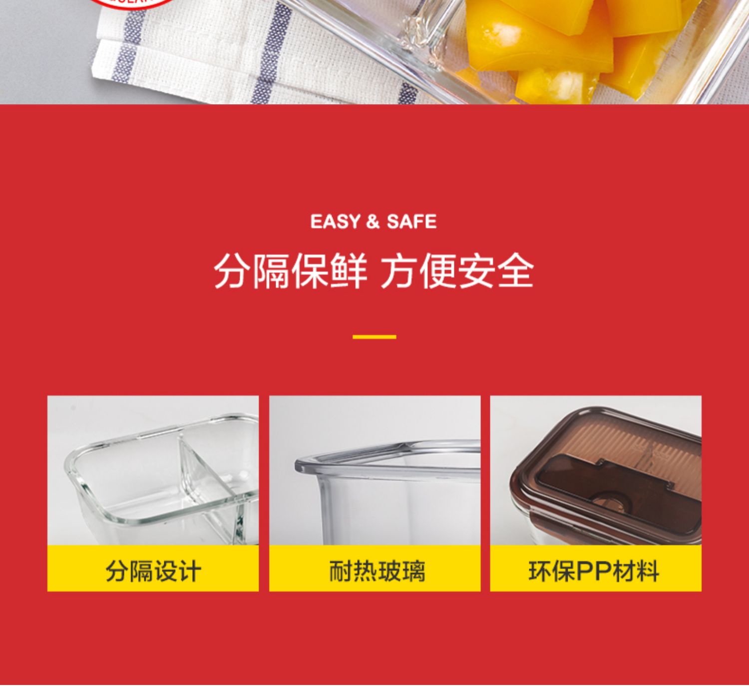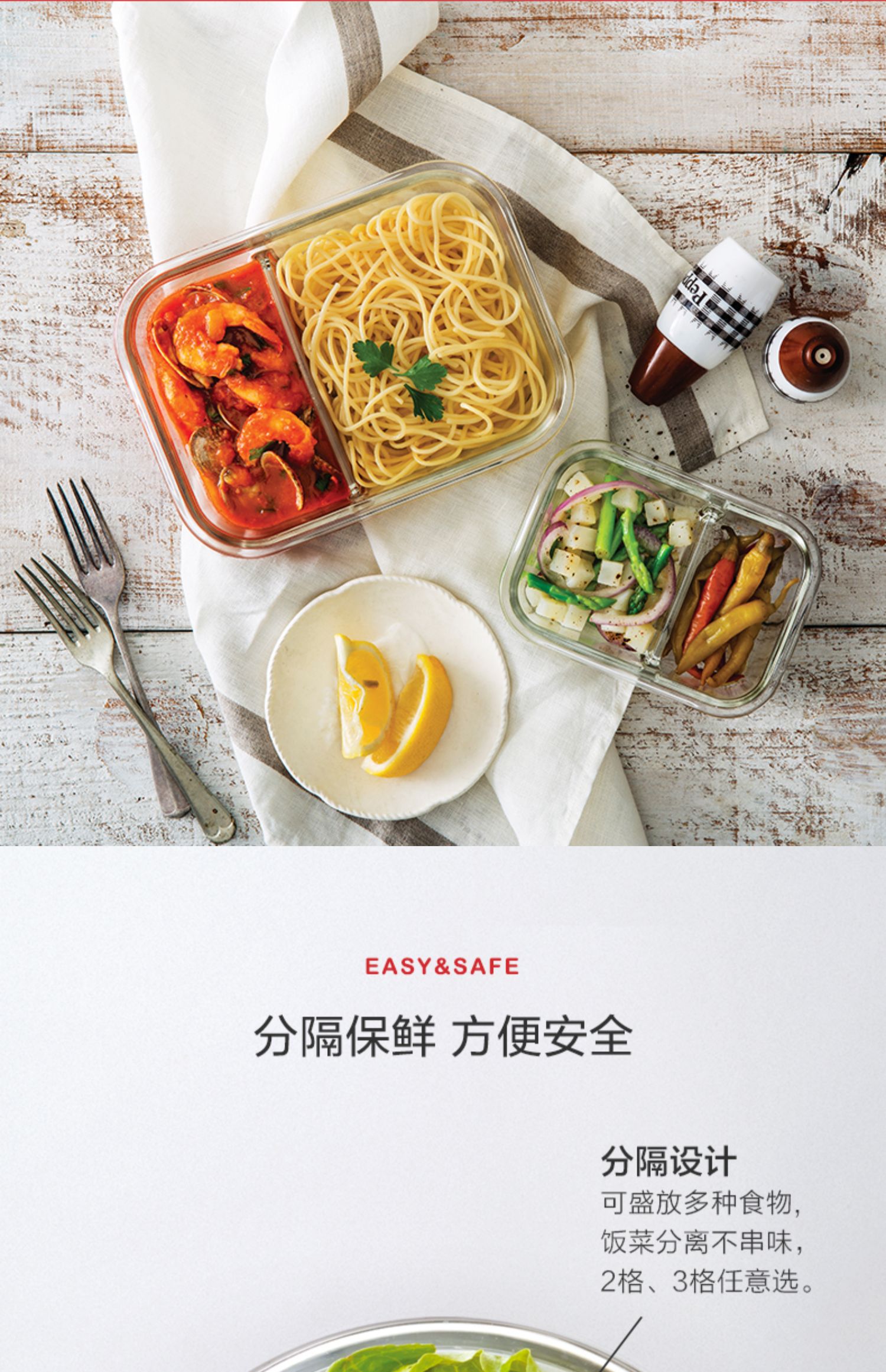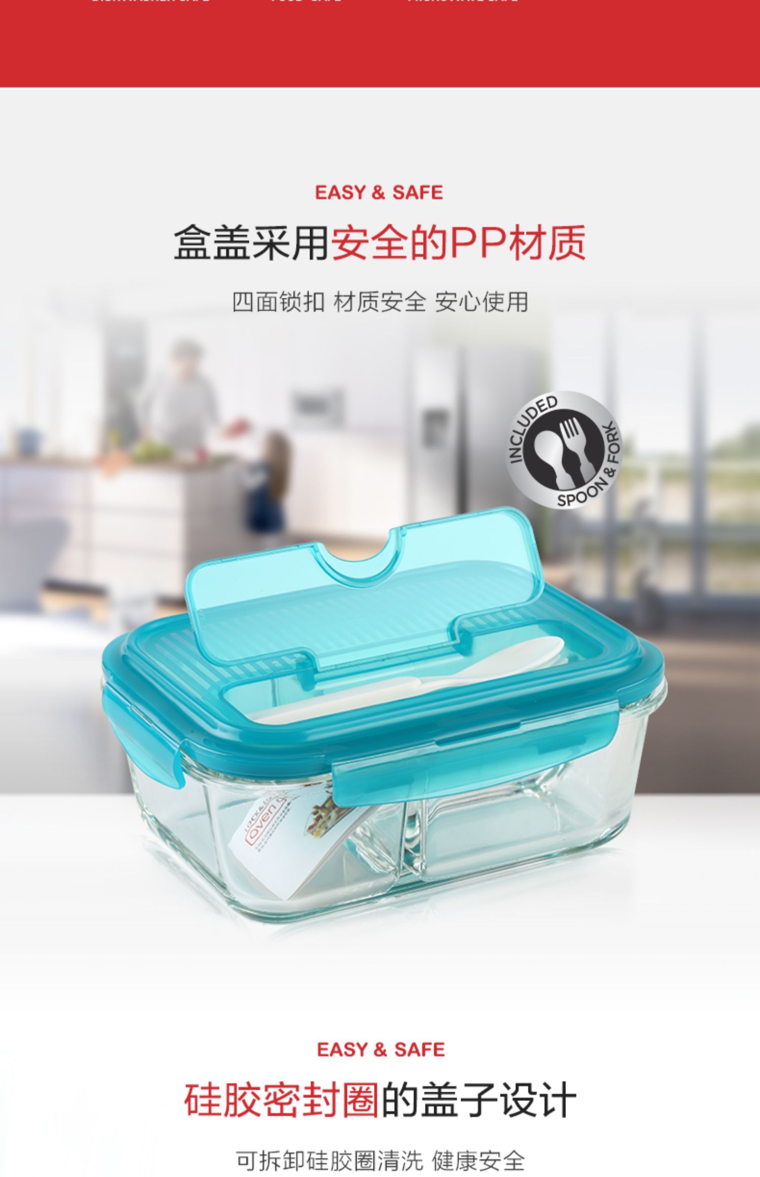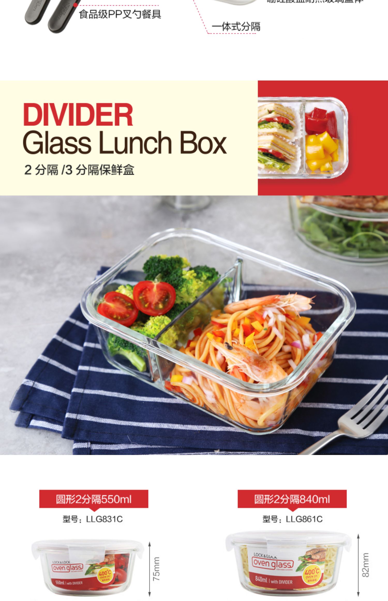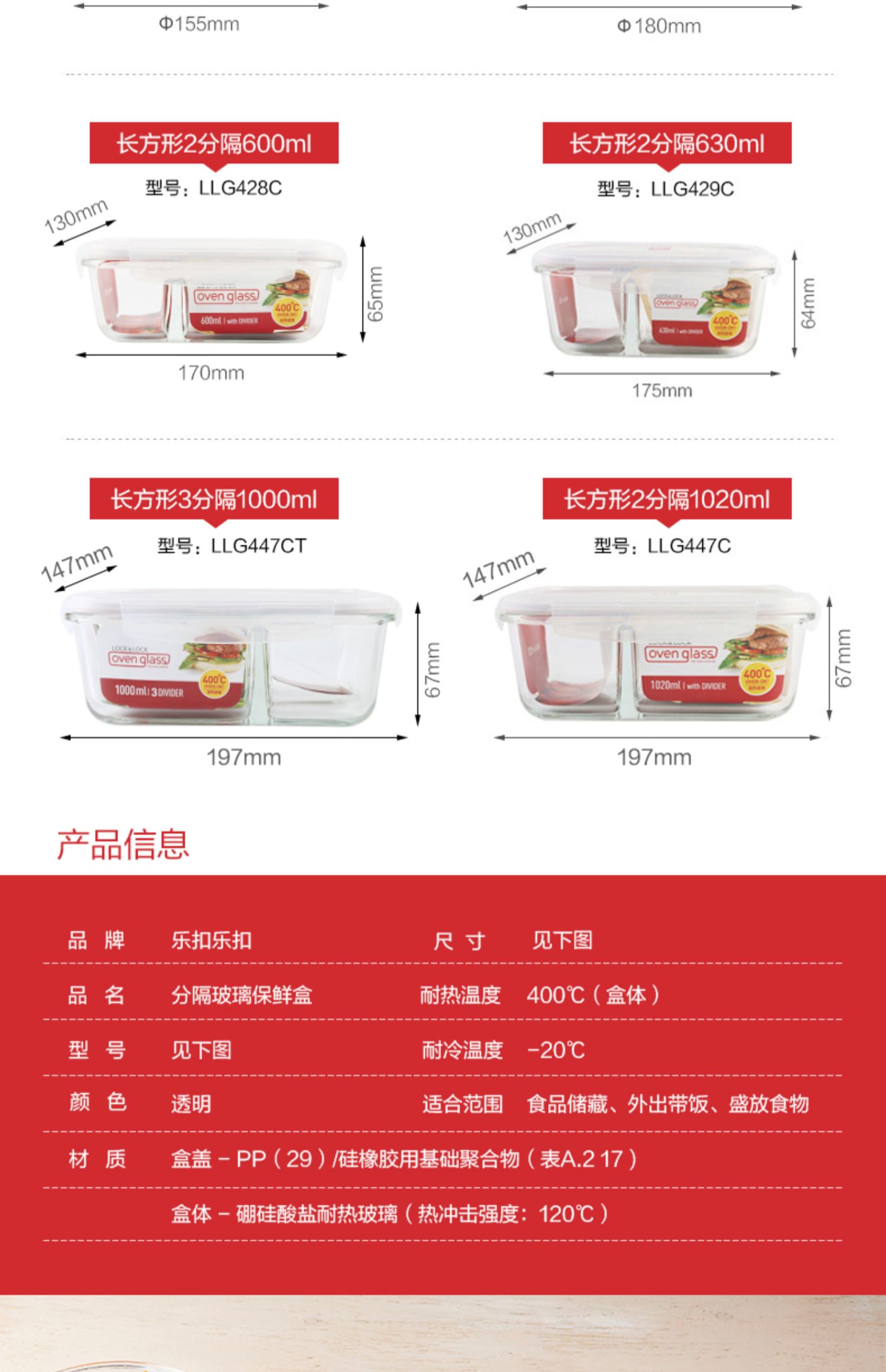 乐扣乐扣(LOCK&LOCK)耐热玻璃分隔保鲜盒单品LLG
