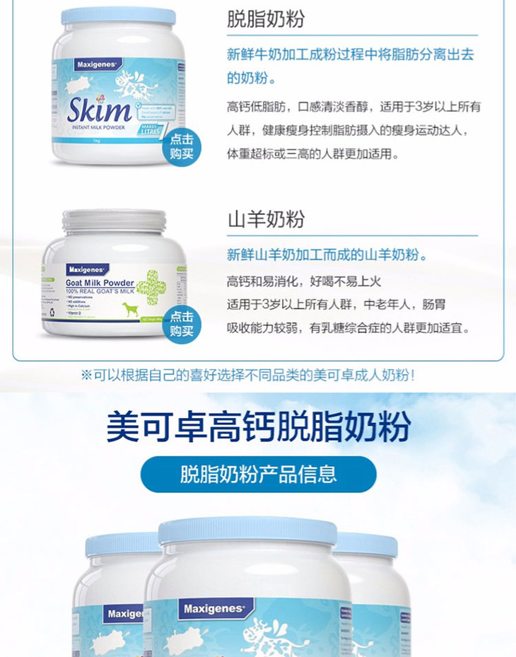 美可卓成人脱脂奶粉蓝胖子蓝妹子1kg