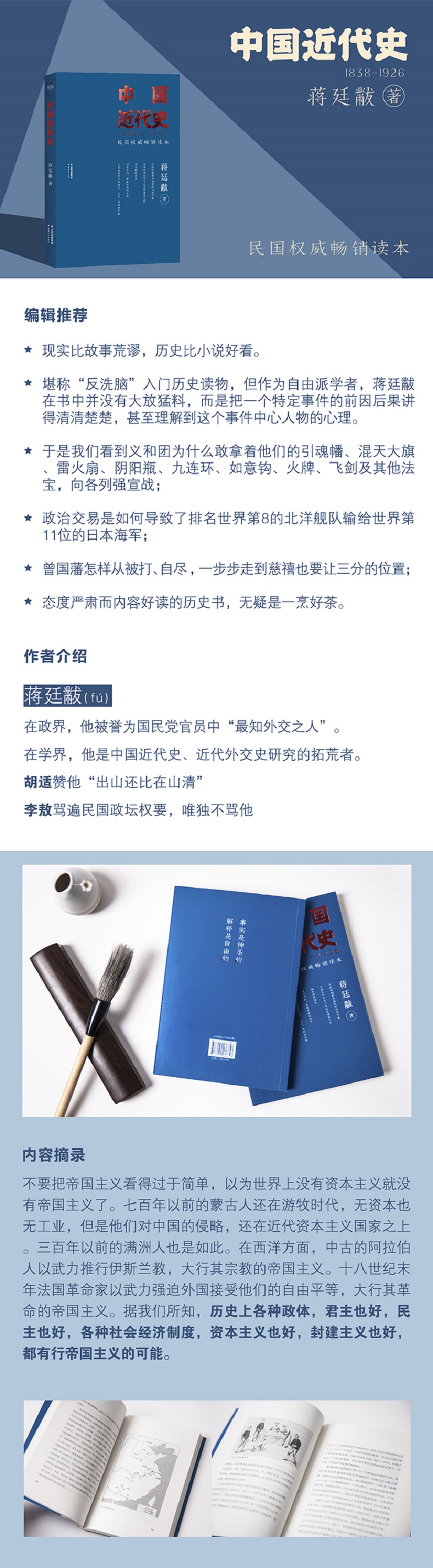 《中国近代史》蒋廷黻版为民国畅销读本。用明白通畅的字句娓娓道尽百年演变,写政治的抗衡、文明的冲撞,也写社会的规则与民族的惰性。