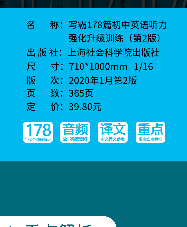 学语者 读霸178篇 初中英语阅读强化升级训练 扫码赠送英文短文MP3 超值附赠参考答案及全文译文小册子 上海社会科学院出版社