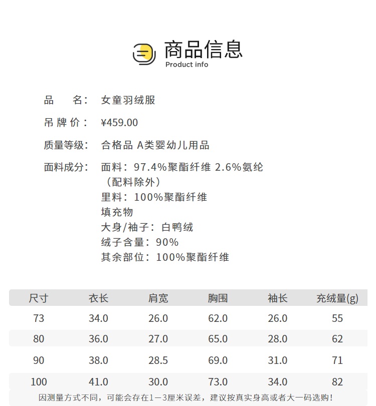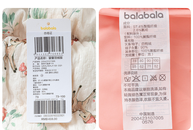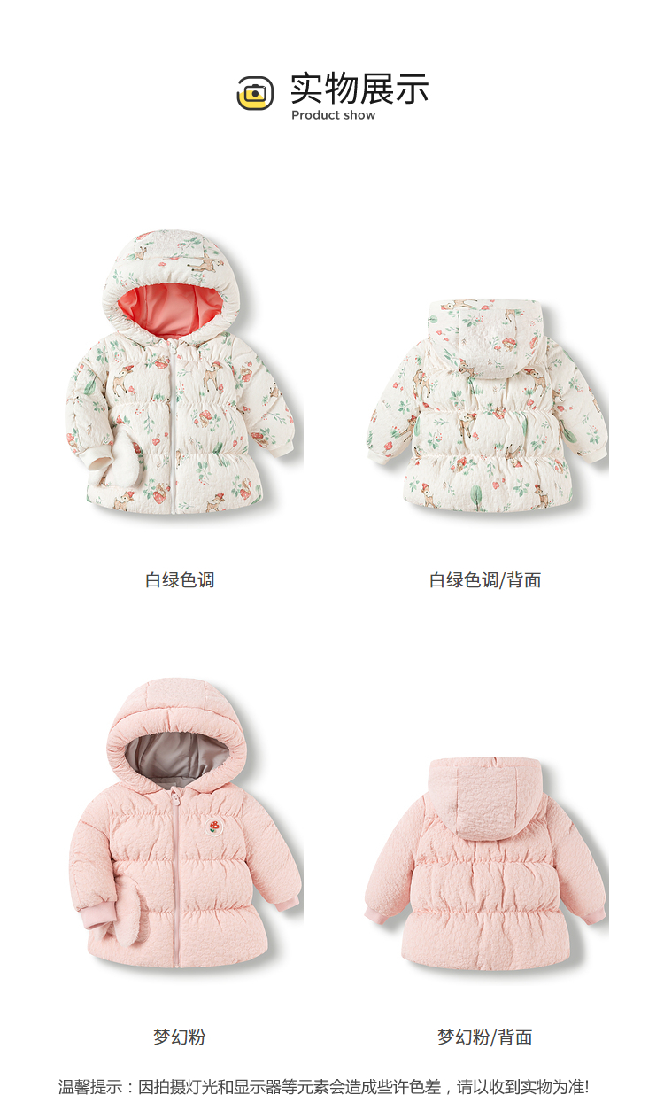 巴拉巴拉婴儿羽绒服冬季女童短款外套宝宝造型可爱萌趣甜美时尚潮