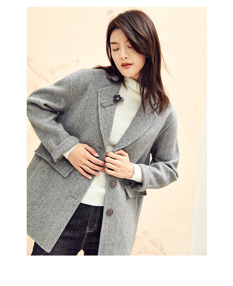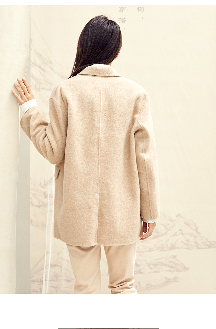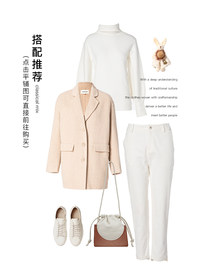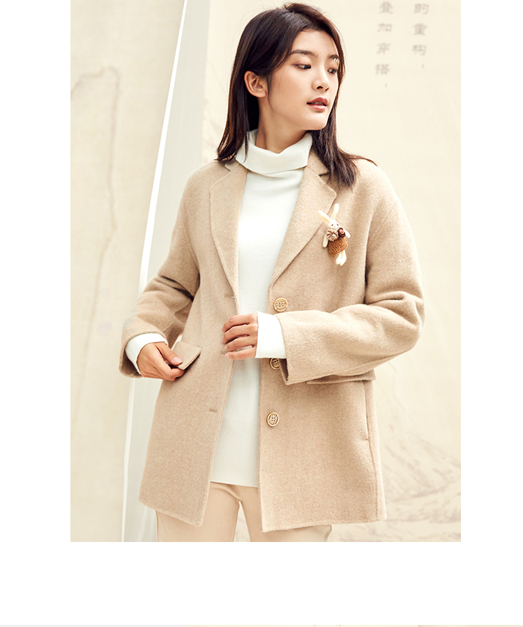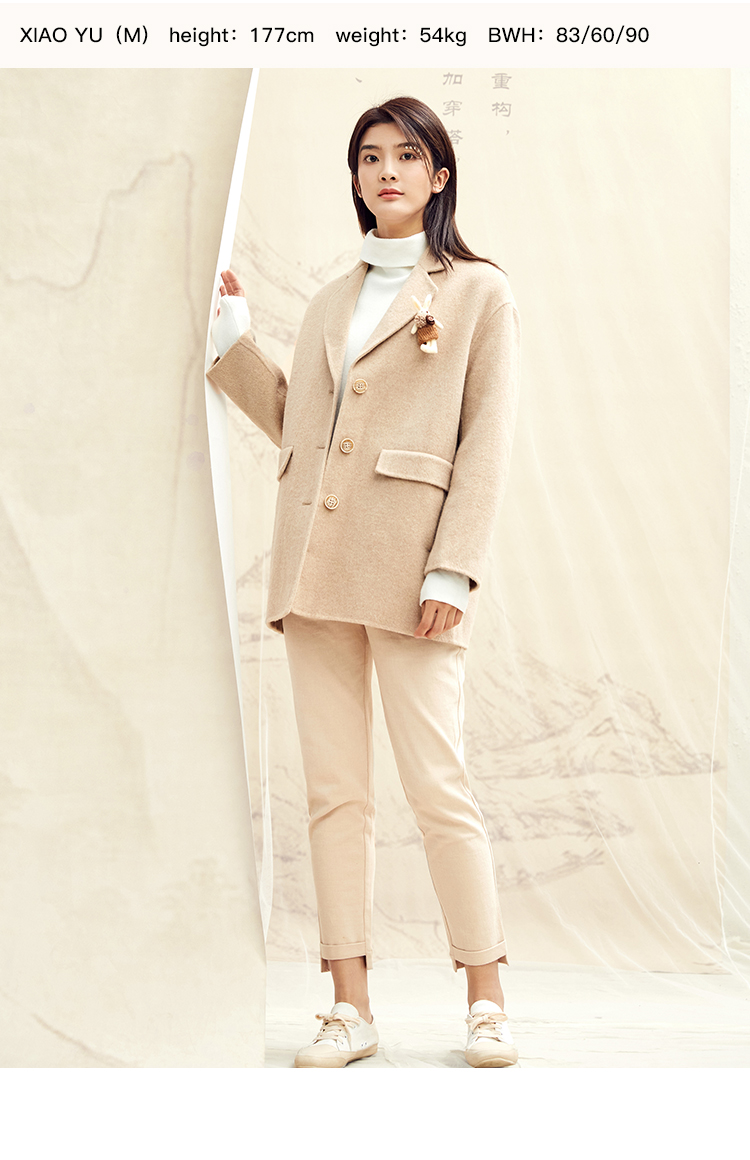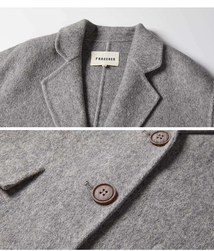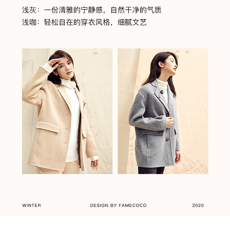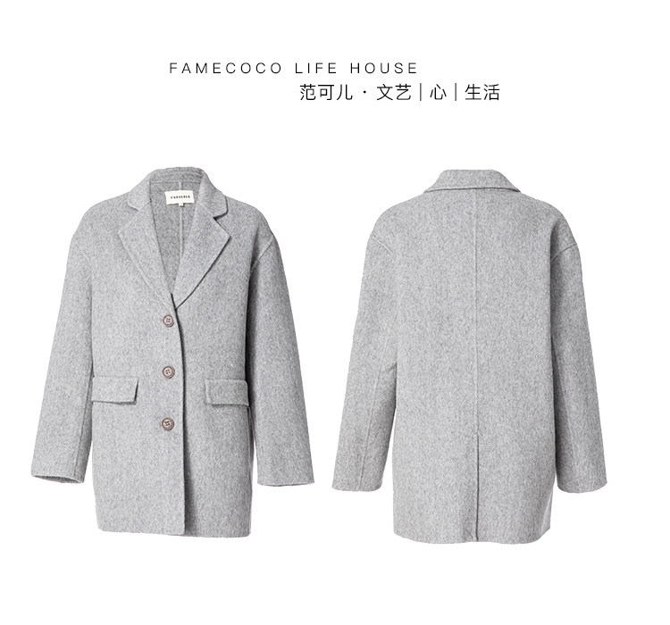 Famecoco范可儿毛呢西装外套秋冬小香风双面呢大衣F198AC122
