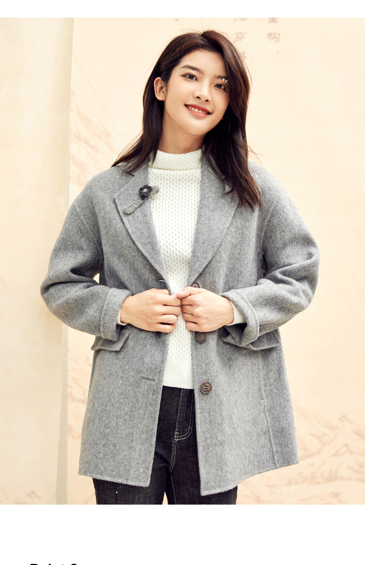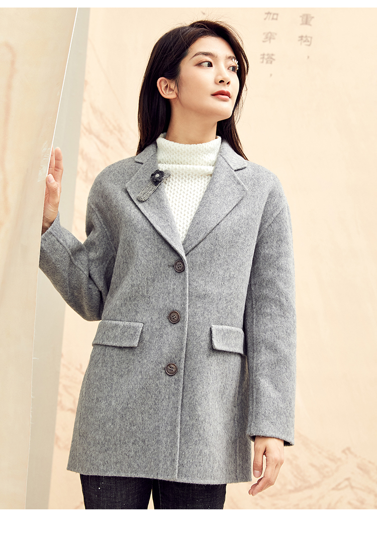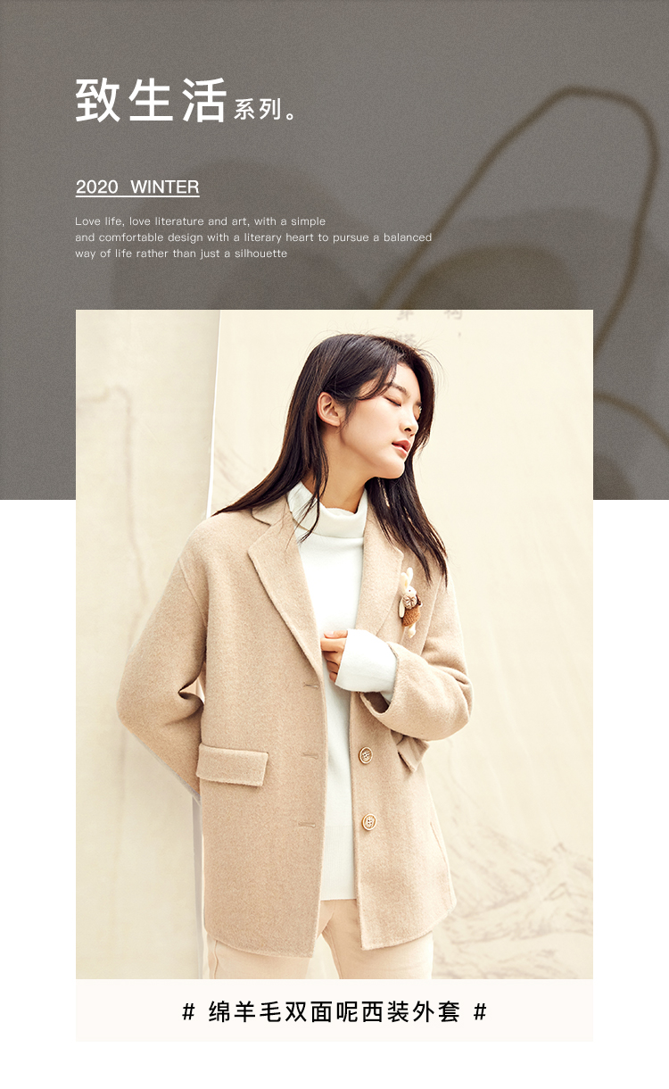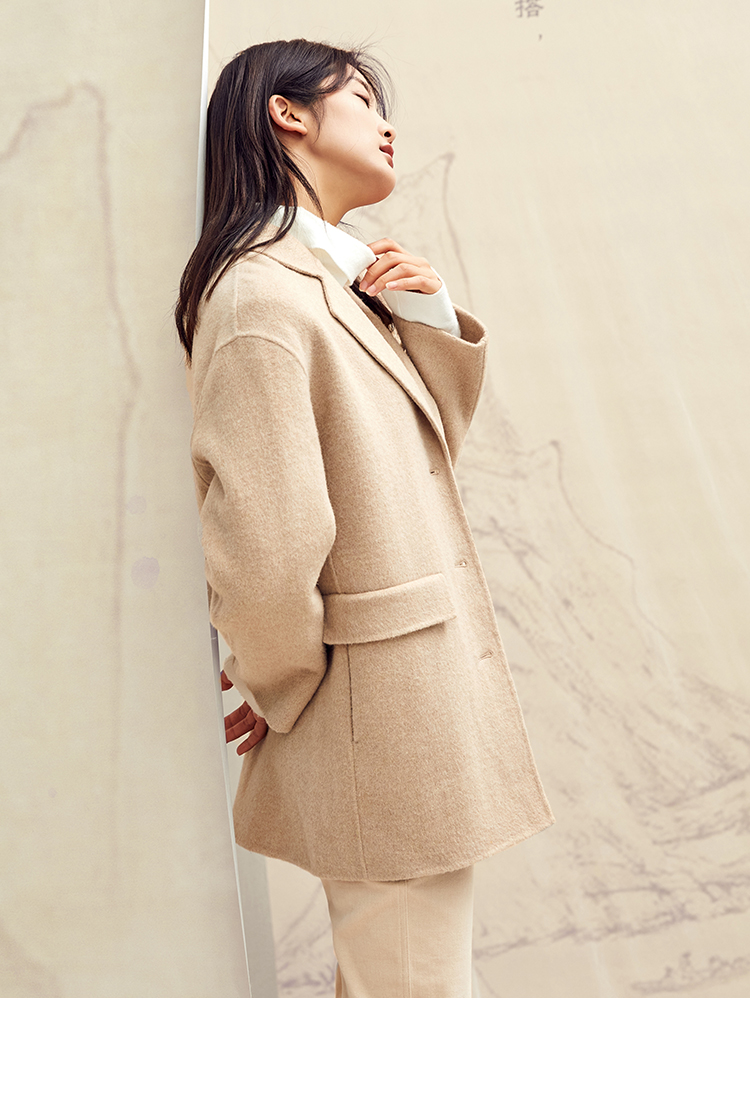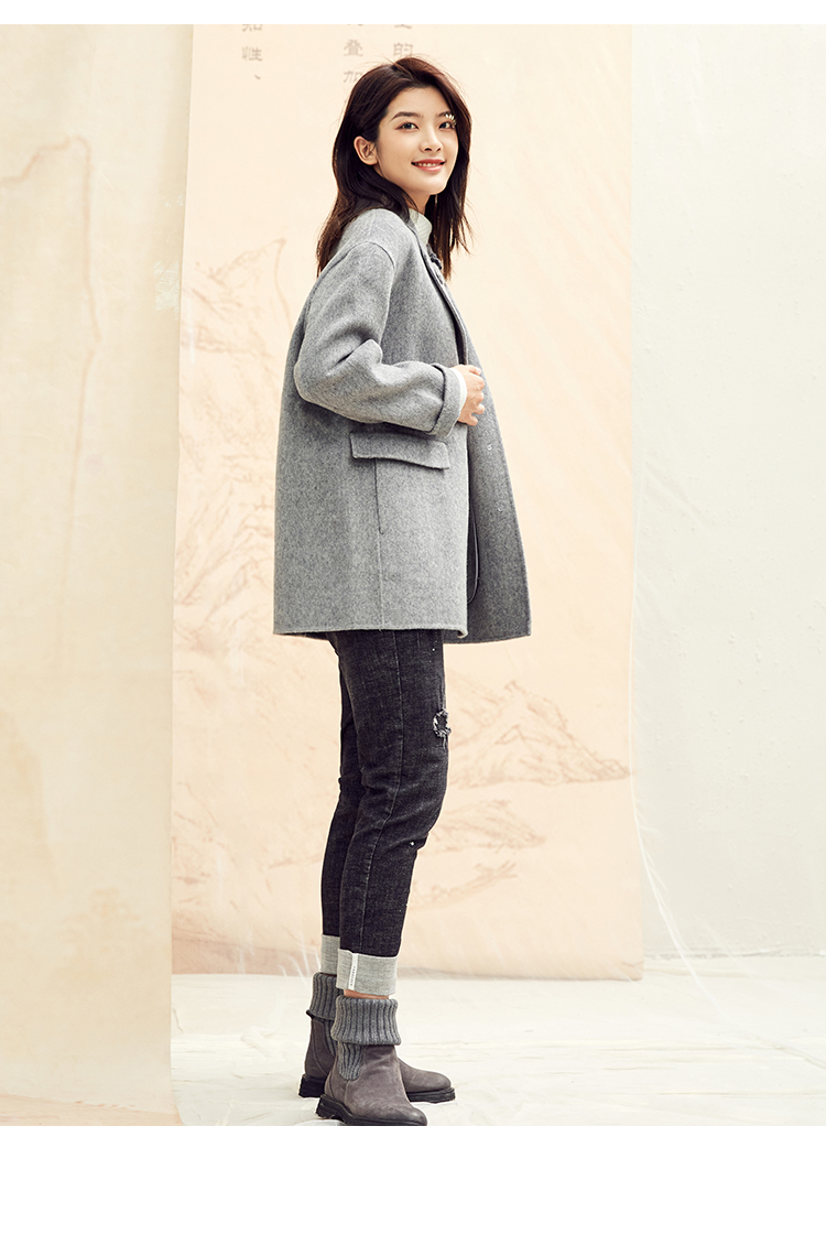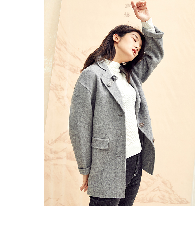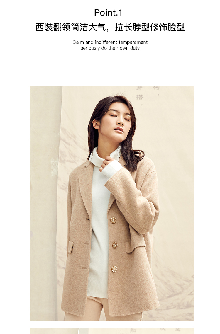 Famecoco范可儿毛呢西装外套秋冬小香风双面呢大衣F198AC122