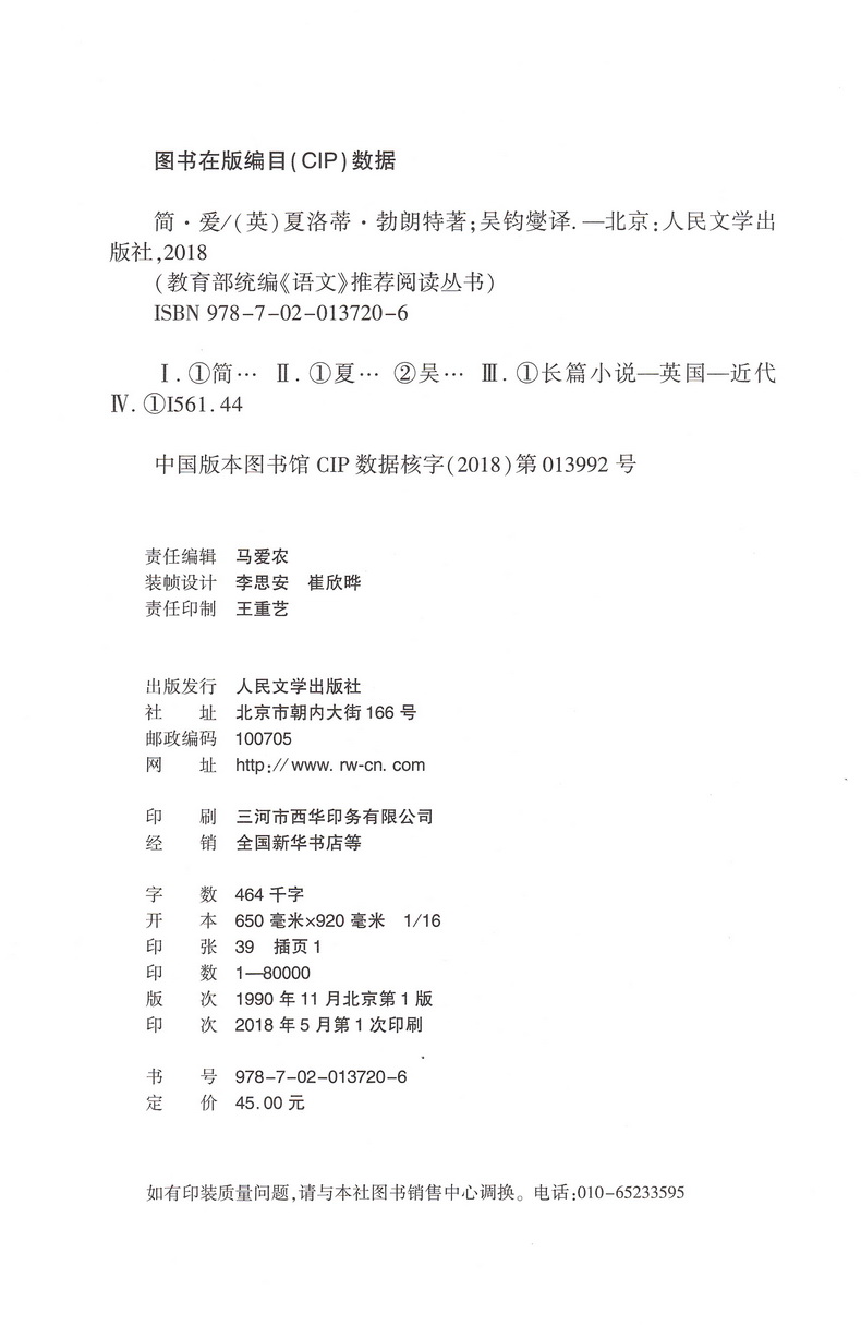 九年级下简爱正版 初三初中生课外书阅读中学生读物书籍经典世界名著书籍外国文学人民文学出版社