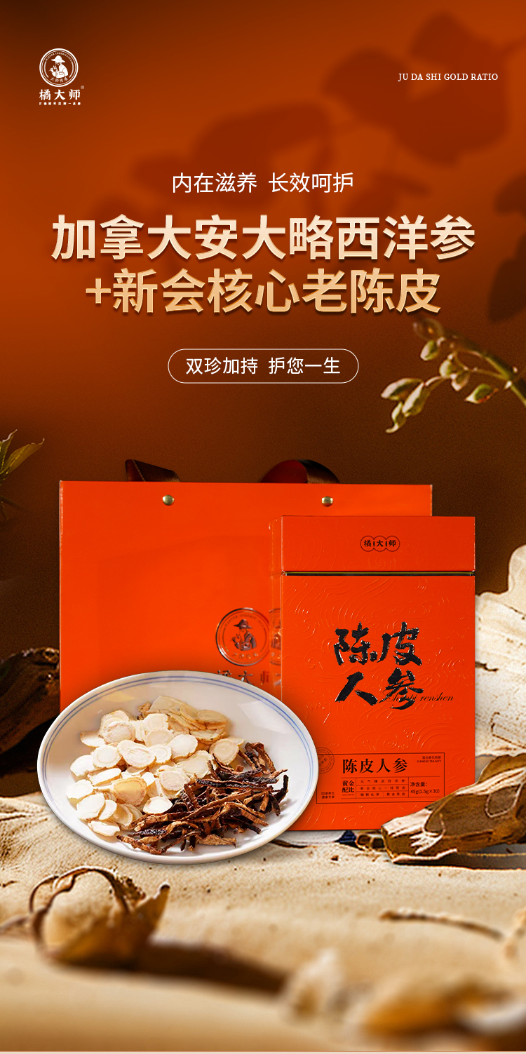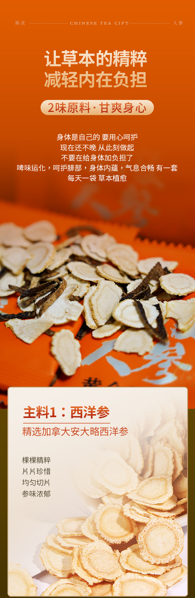 【福利秒杀】【陈皮人参】正宗新会陈皮人参加拿大切片西洋参含片养生茶泡水官方旗舰店正品99元/两盒,45g/盒(1.5g/袋*30袋)