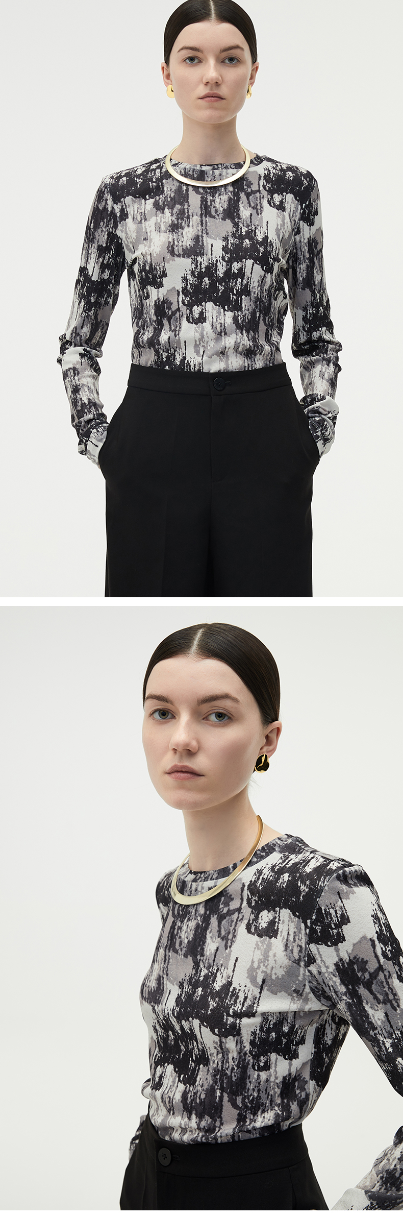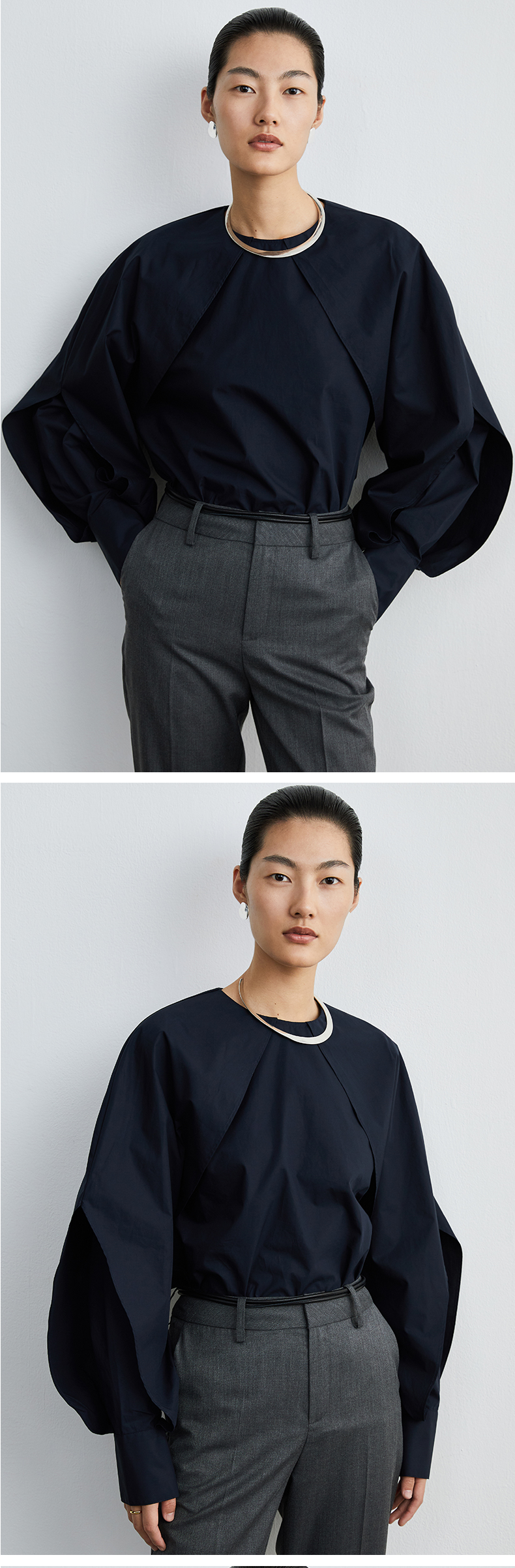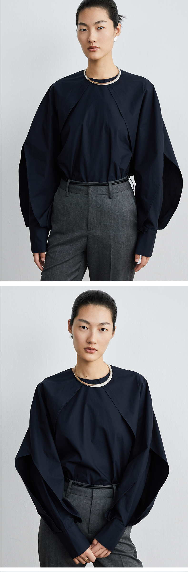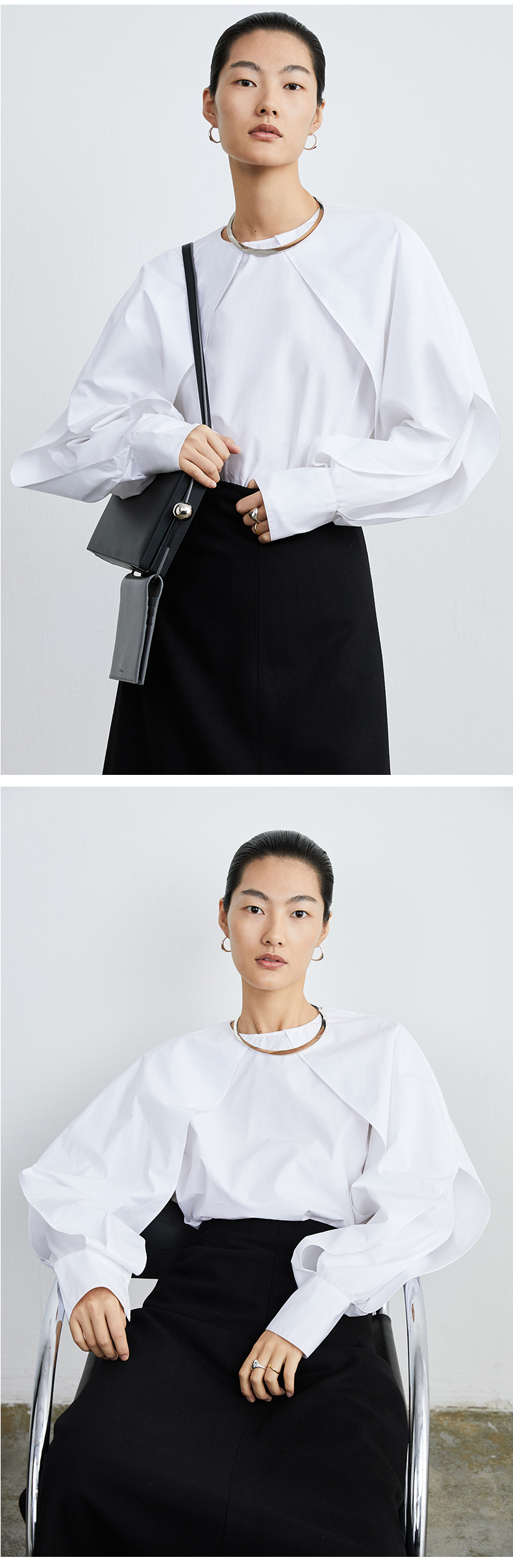 HIDEMI本期必入拉链褶皱廓形衬衫 黑色/白色