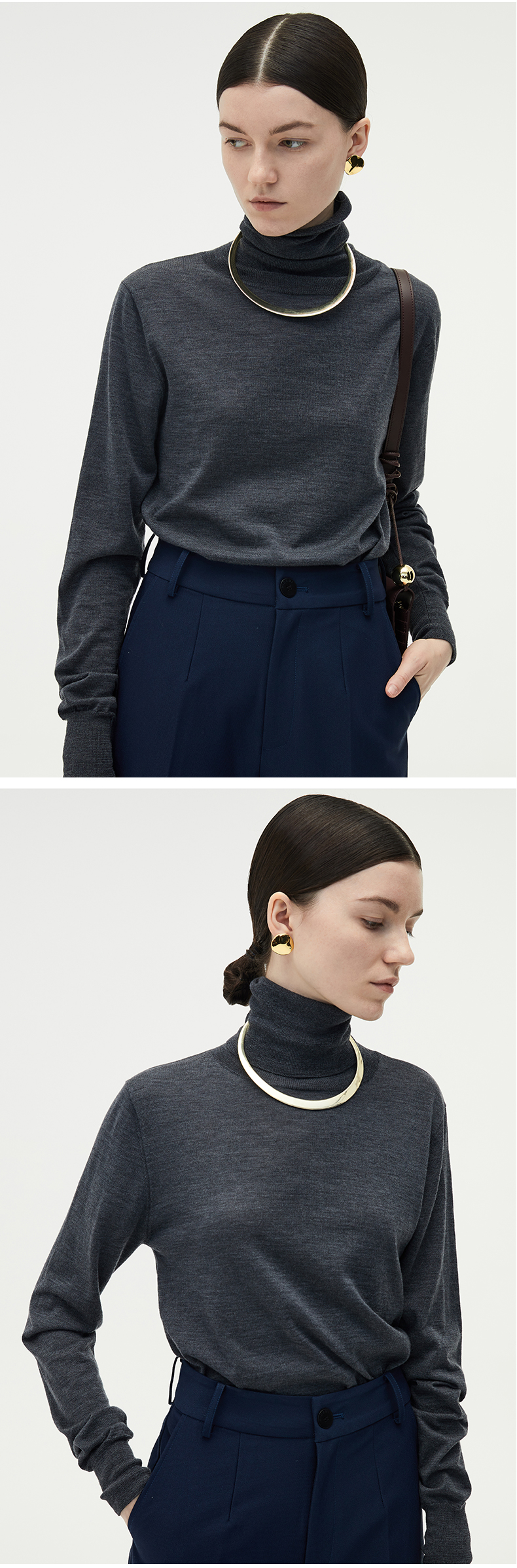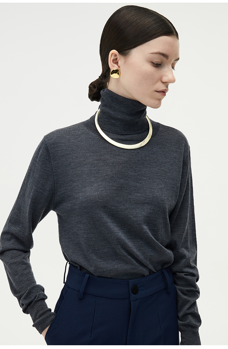 HIDEMI 美利奴羊毛简约设计感茧型套装 半高领毛衣/茧型半身裙