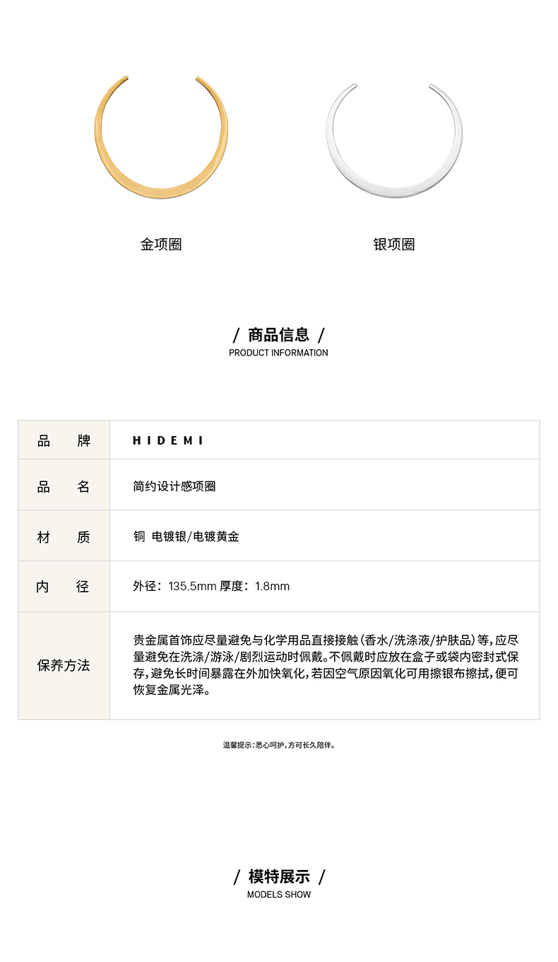 HIDEMI简约设计感项圈 银色/金色