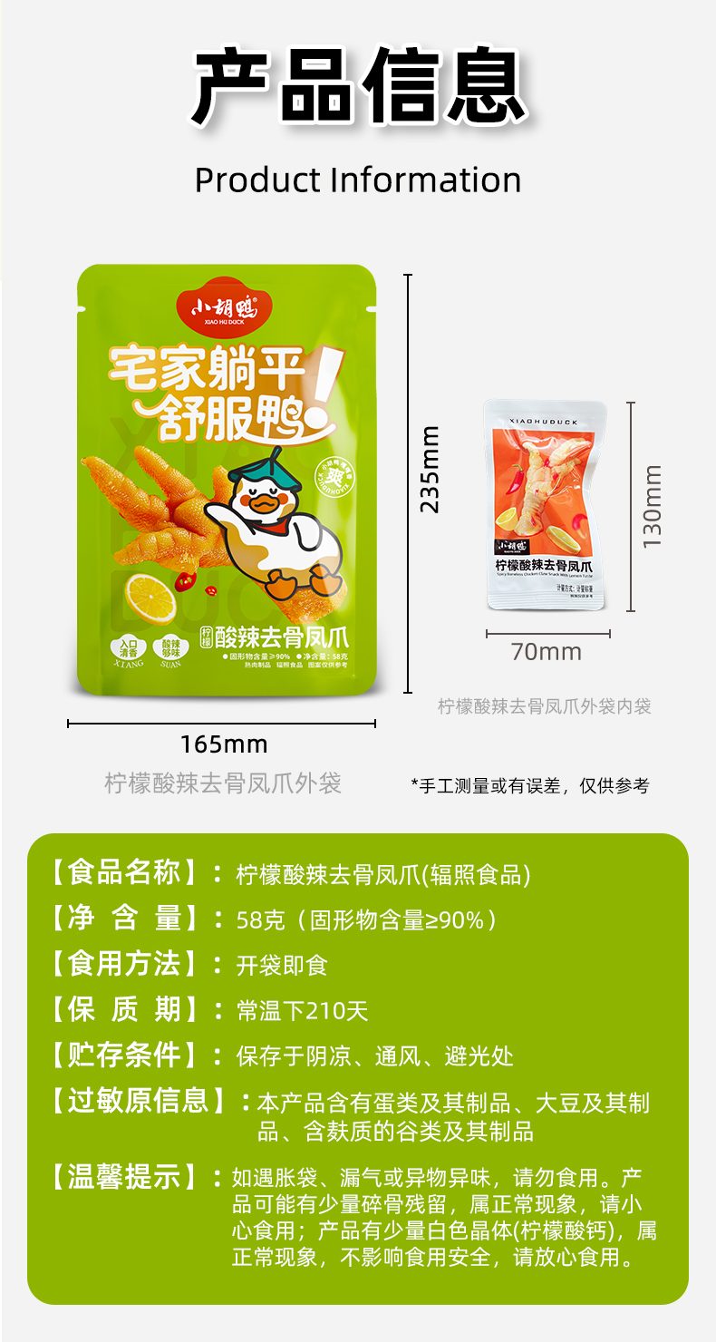 (轻享装)58g柠檬酸辣去骨凤爪真空独立小包装