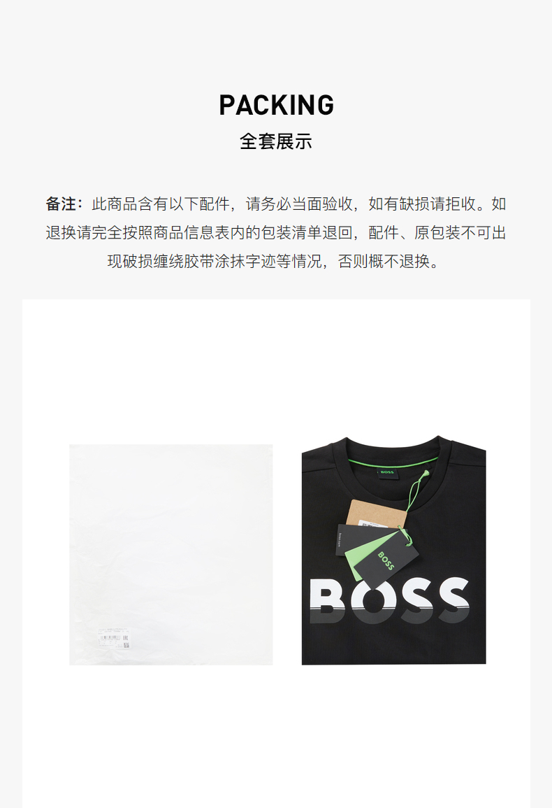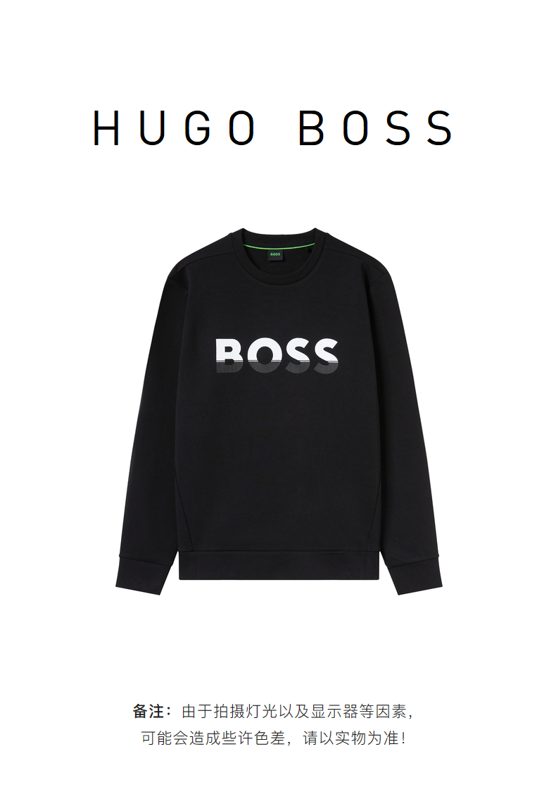 HUGO BOSS 雨果博斯 2023春夏新品 男士BOSS徽标字母印花休闲运动卫衣 黑色 50477043