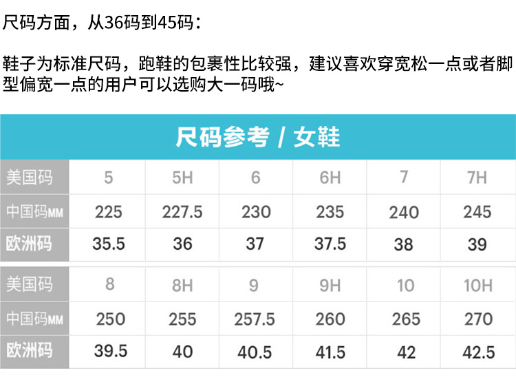 鞋子为标准尺码,跑鞋的包裹性比较强,建议喜欢穿宽松一点或者脚型偏宽一点的用户可以选购大一码哦~~~~~~~ 商品名:亚瑟士男女款跑鞋 规格:男女鞋 材质:工程提花网布+耐磨橡胶 生产日期:最新 包装方式:盒装 发货地:广东/上海 发货时效:3-5天 售后标准:不影响二次销售的,支持7天无理由退换货,寄回需要原包装寄回,否则不予退换 停发会主动退款,下单代表认可 |