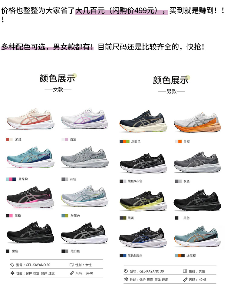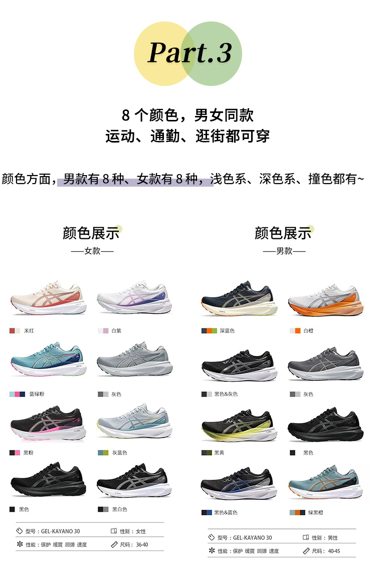 「减震回弹 改善足部内旋轻量」ASICS亚瑟士新款运动鞋GEL-KAYANO 30稳定支撑跑鞋 透气运动鞋