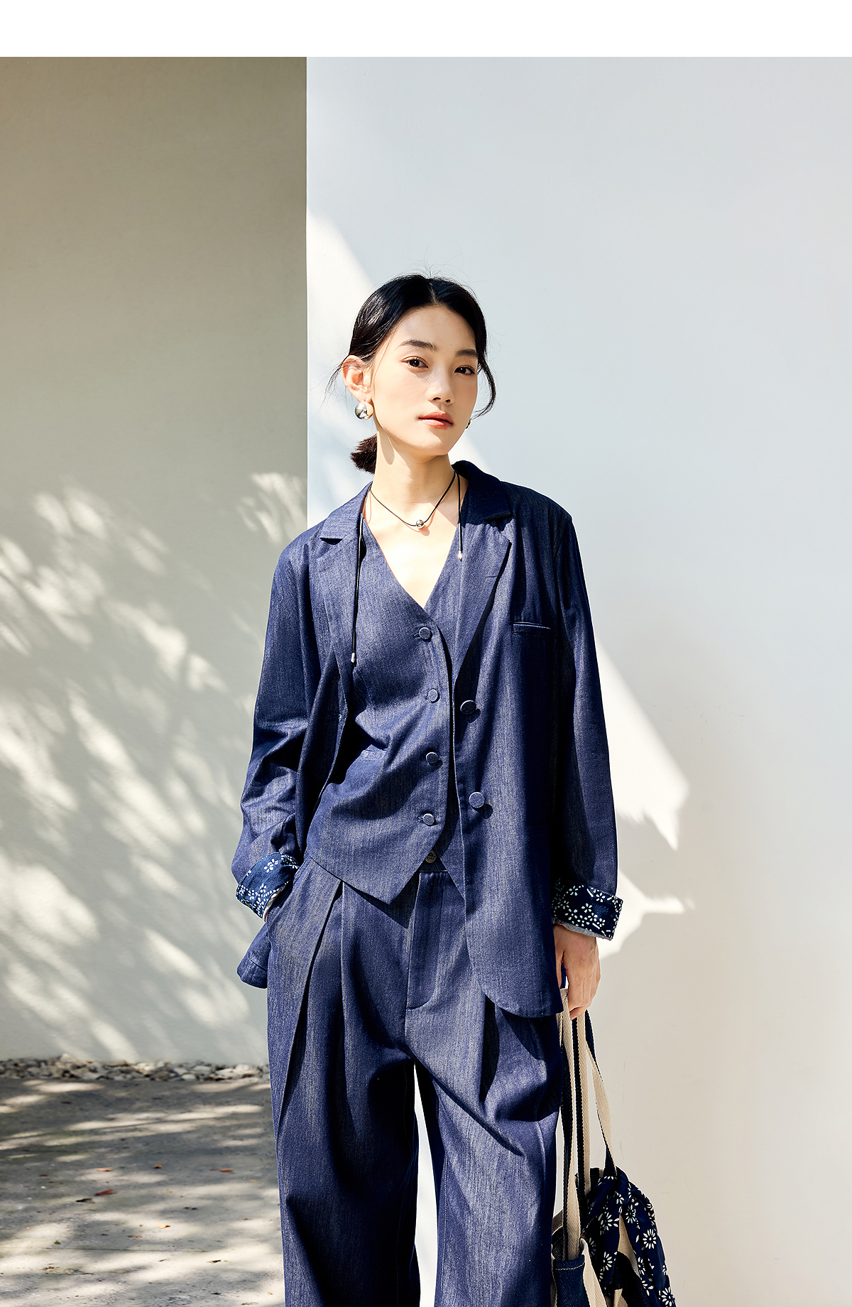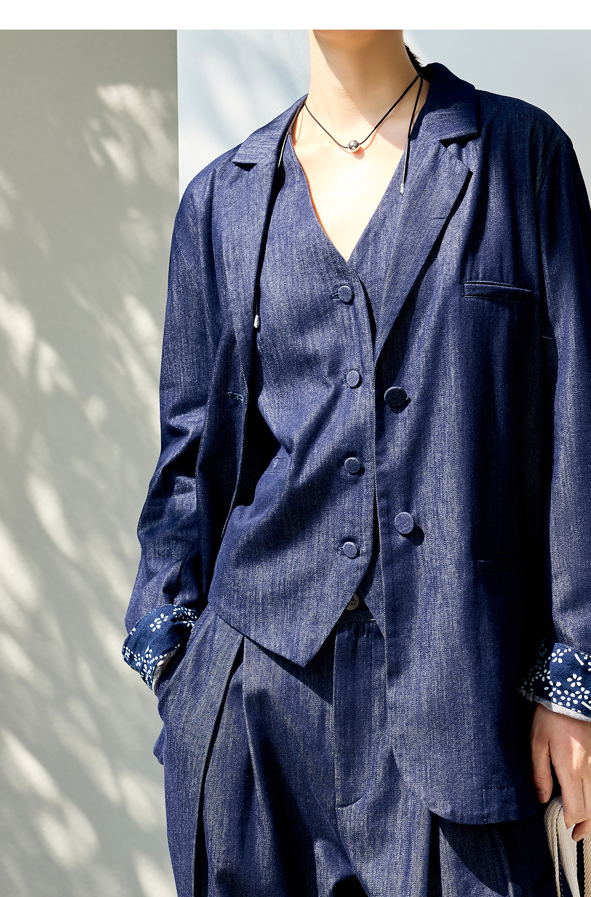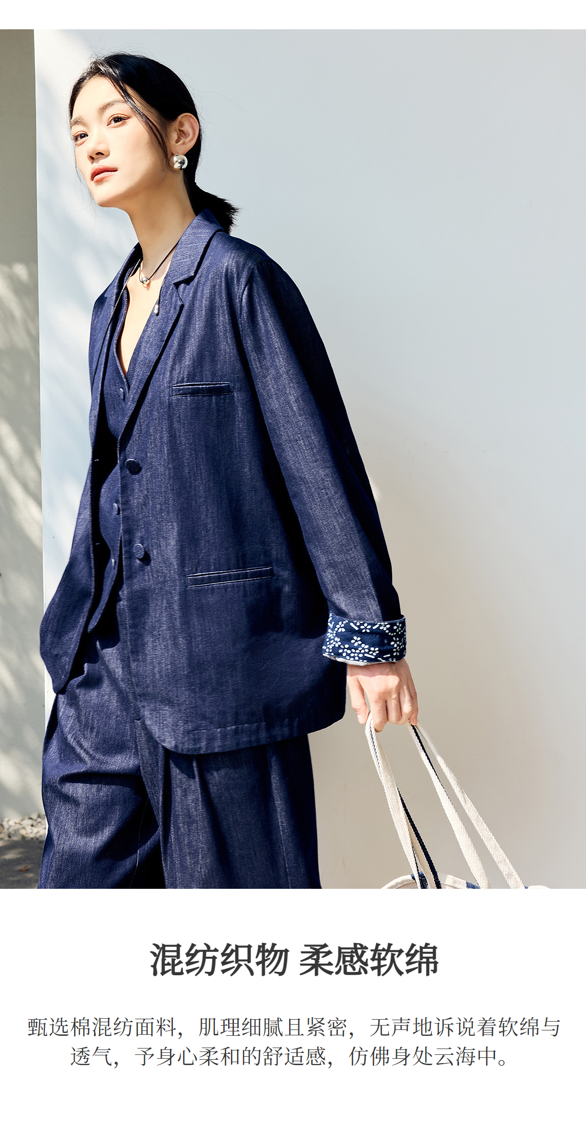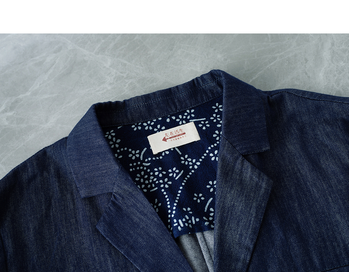 【林栖设计小店】(现货)棉混纺小西装通勤拼蓝印花布传统复古2025春季新品外套上衣女1951079