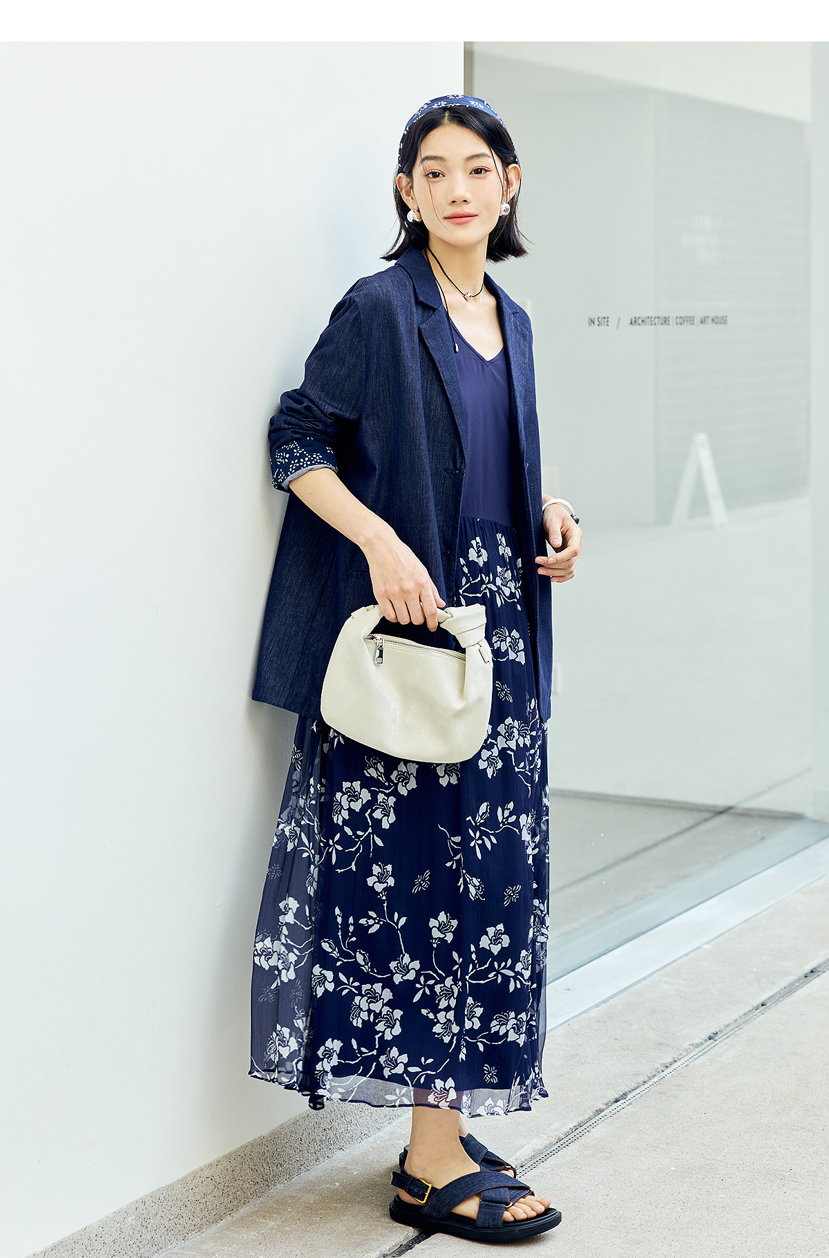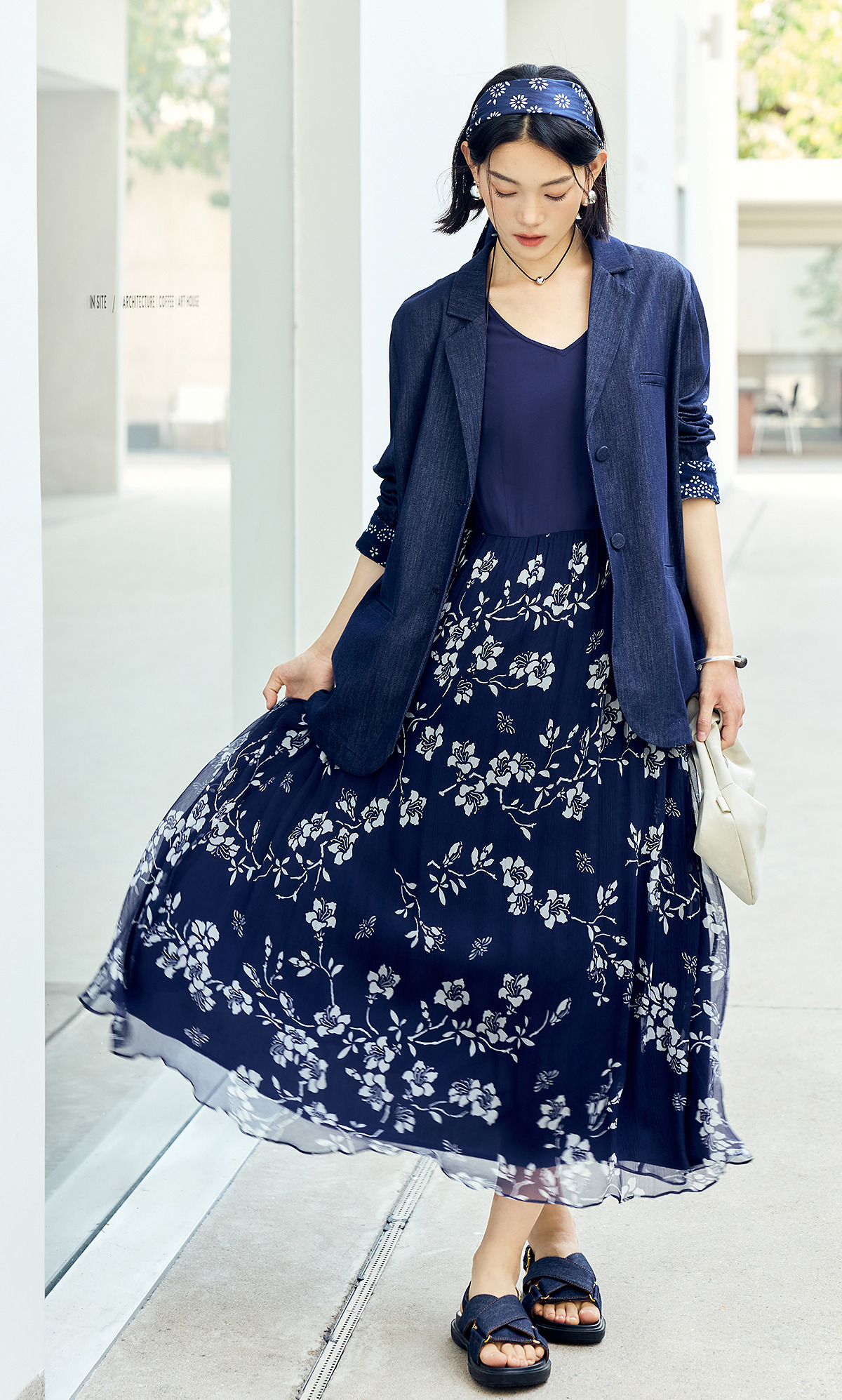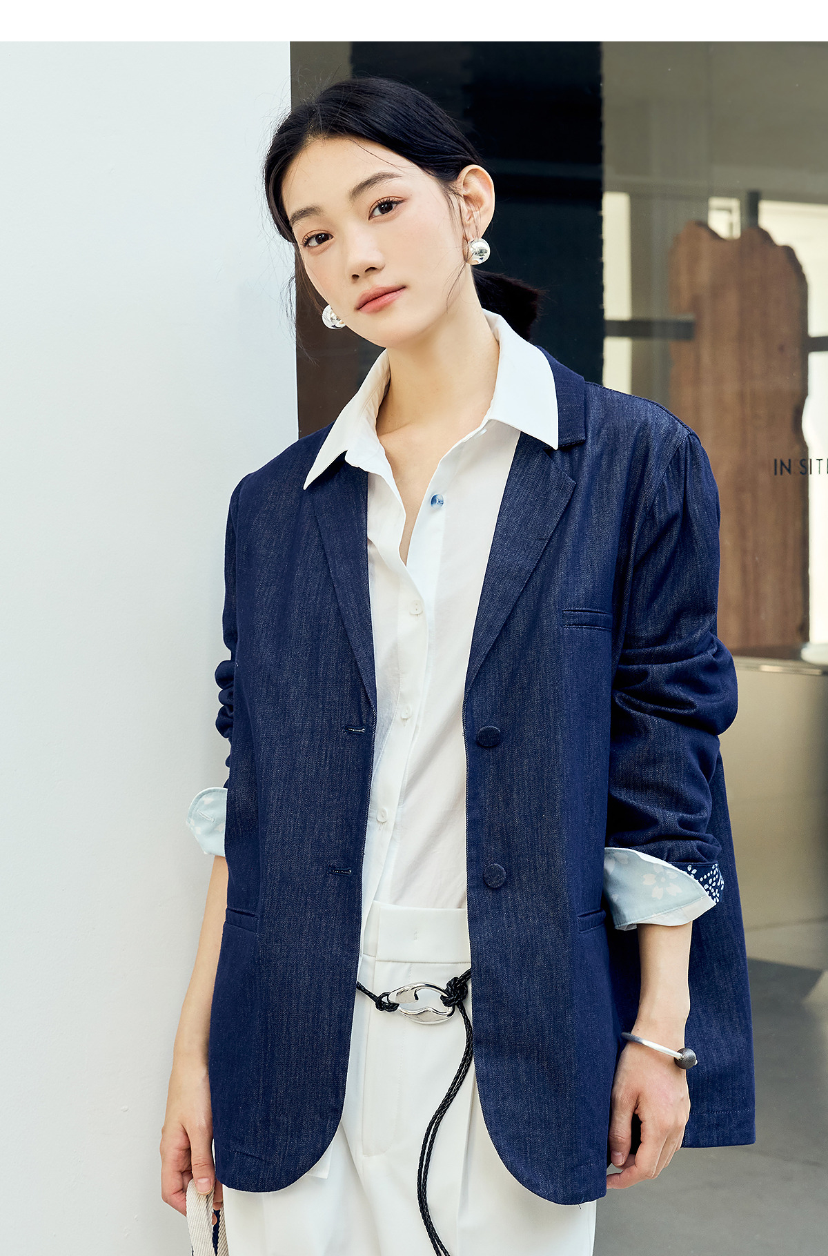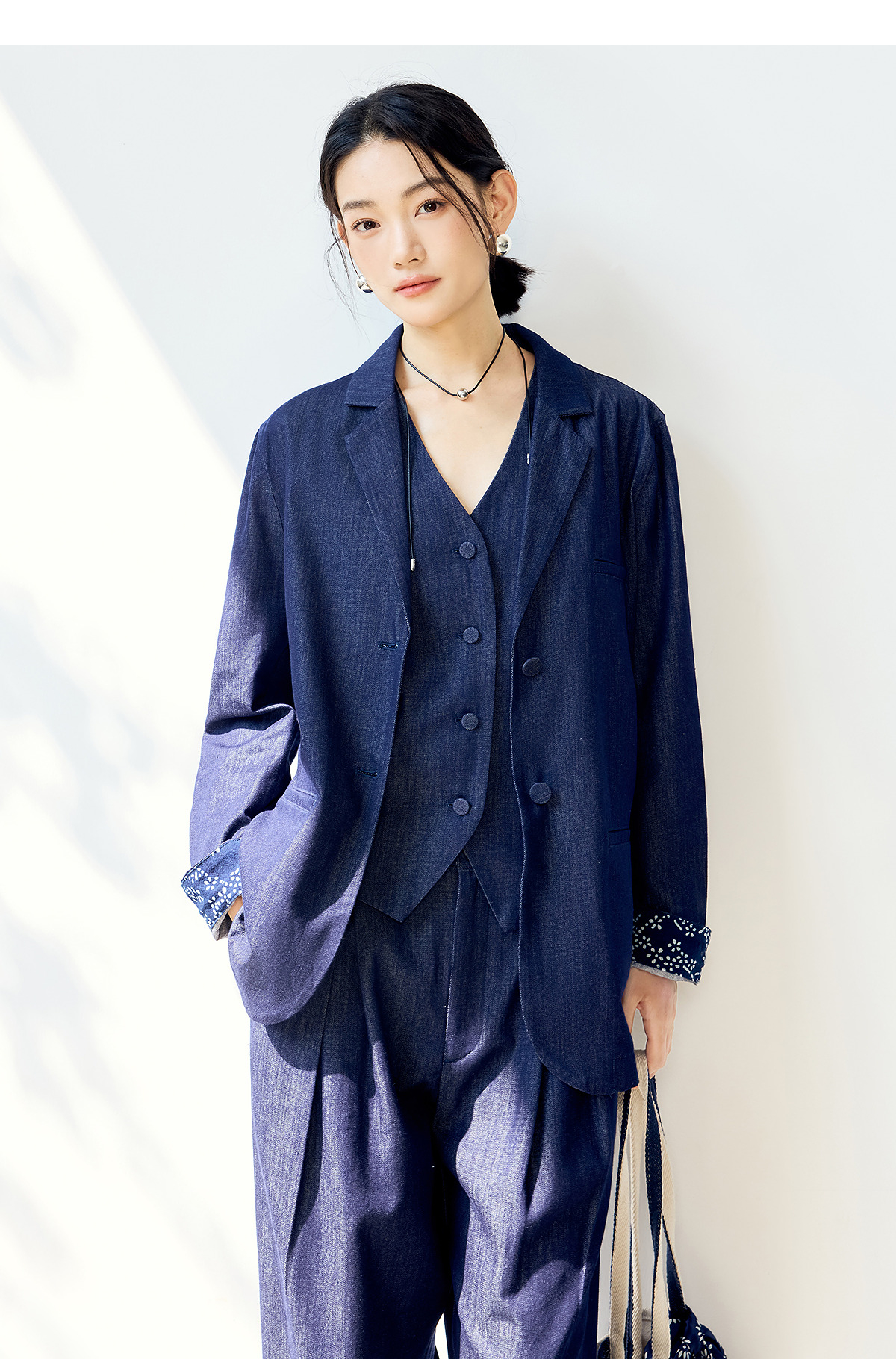 【林栖设计小店】(现货)棉混纺小西装通勤拼蓝印花布传统复古2025春季新品外套上衣女1951079
