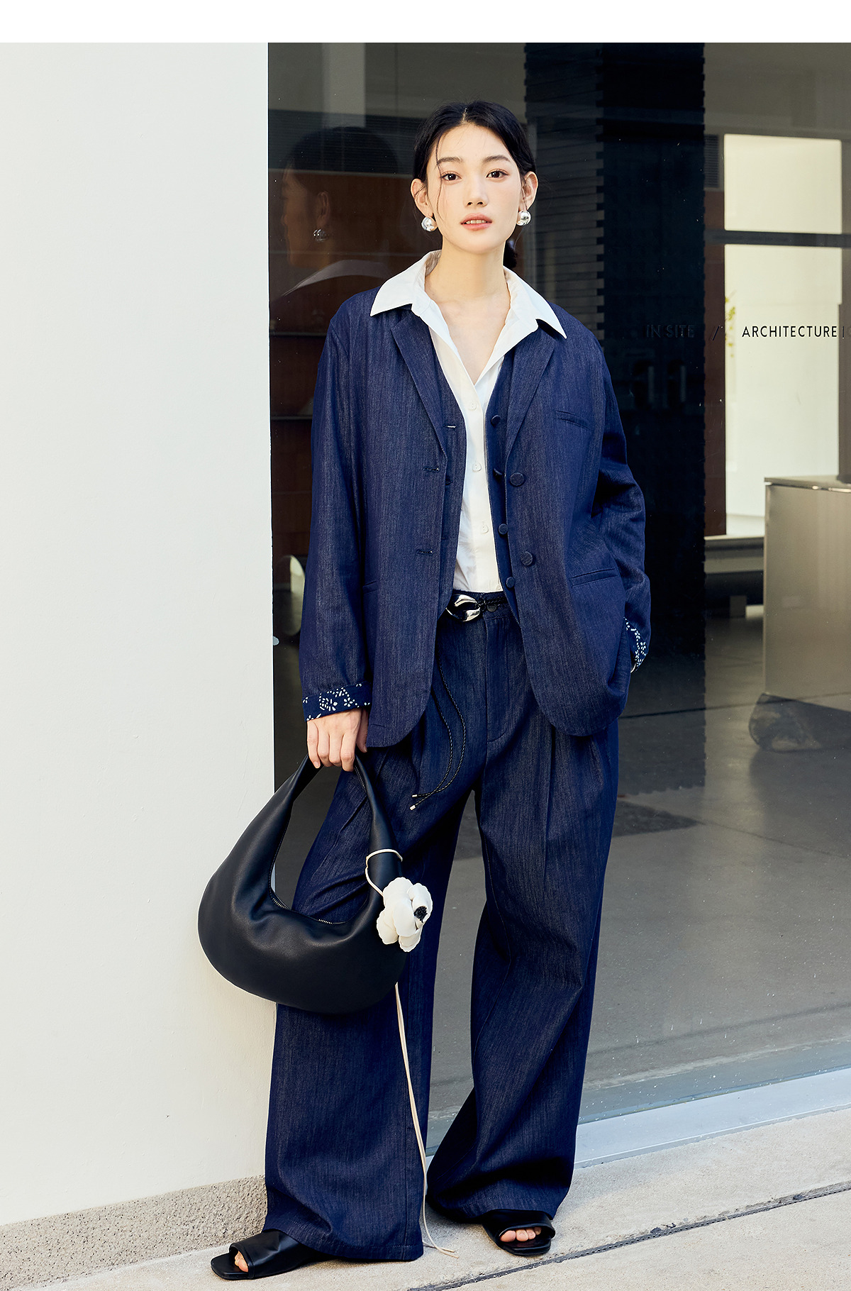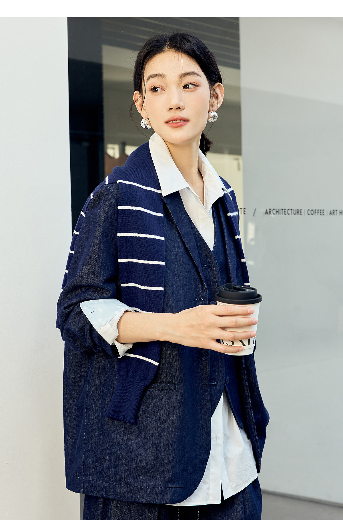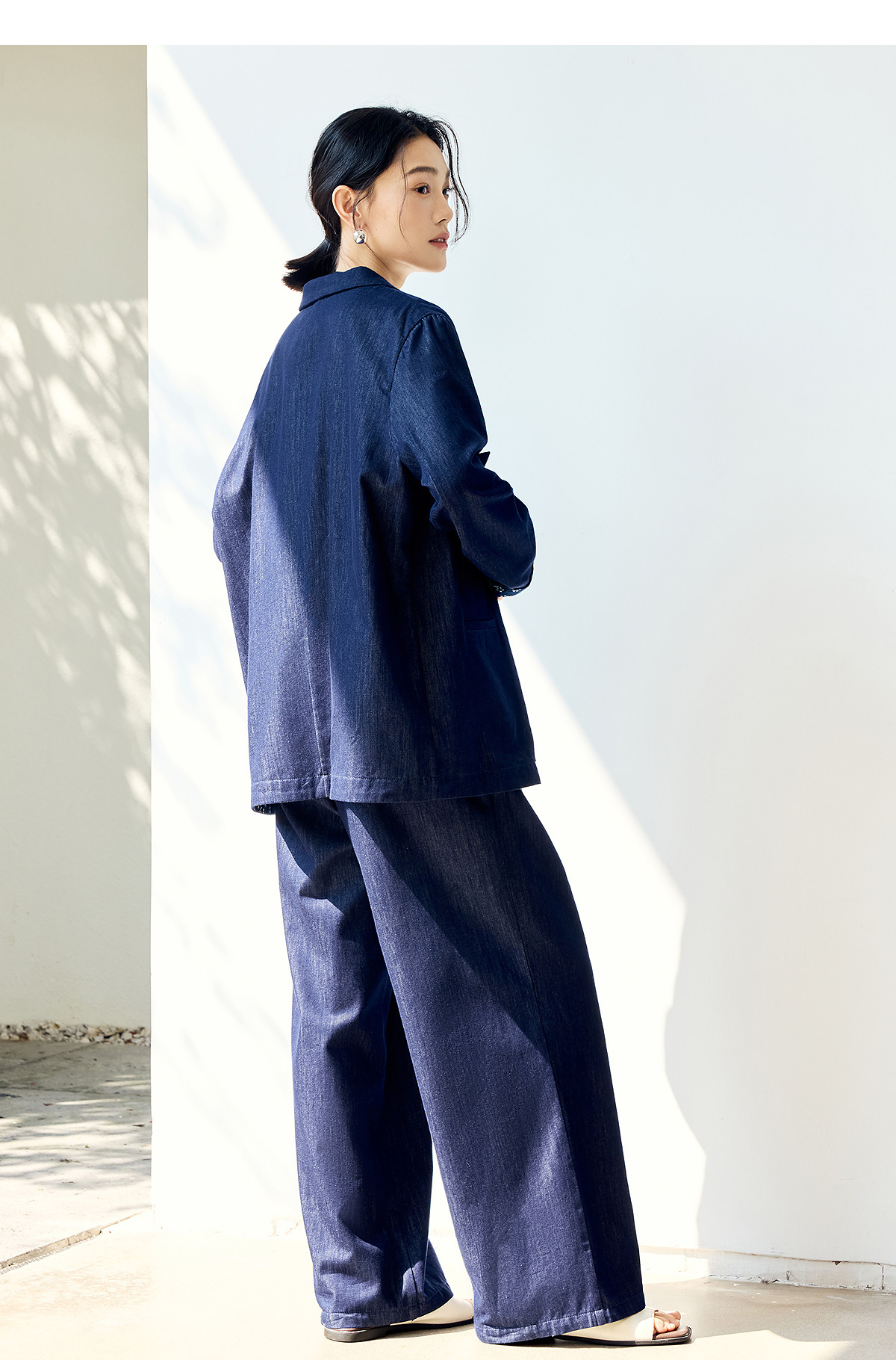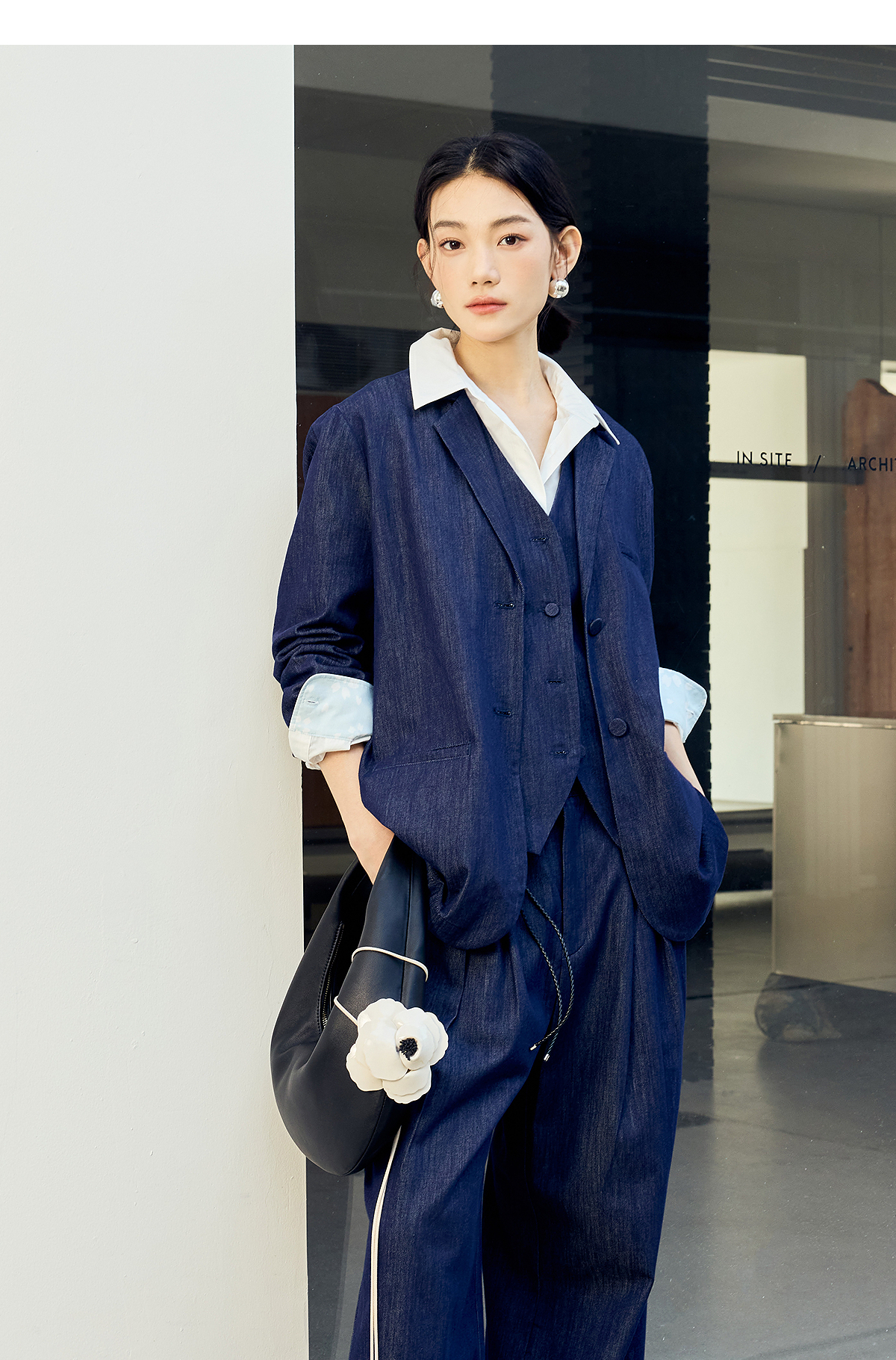 【林栖设计小店】(现货)棉混纺小西装通勤拼蓝印花布传统复古2025春季新品外套上衣女1951079