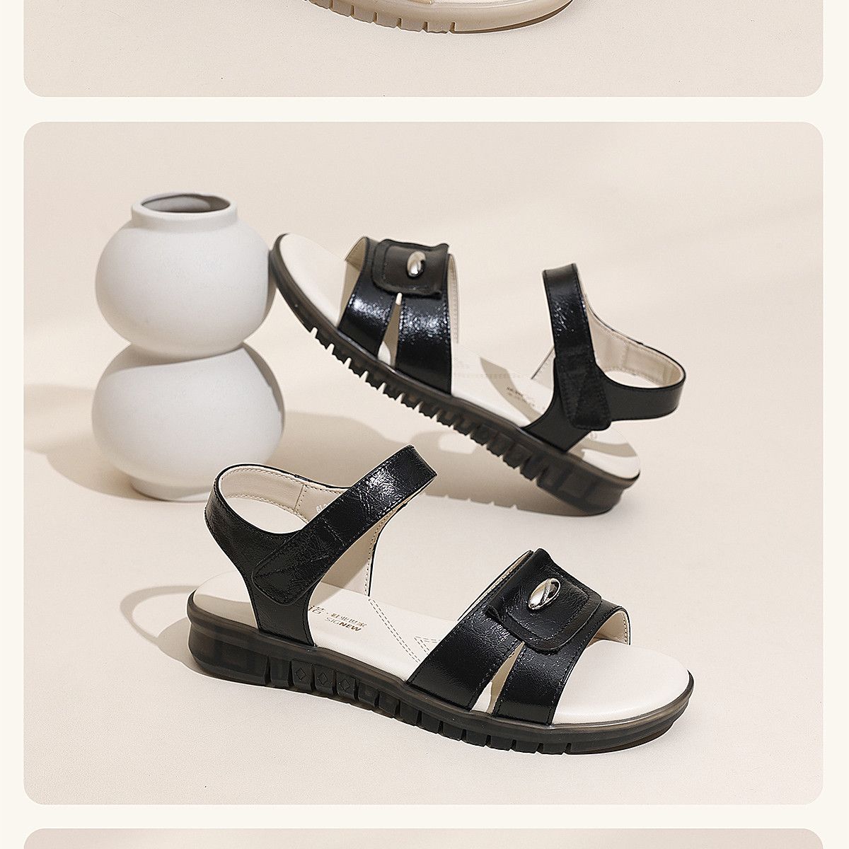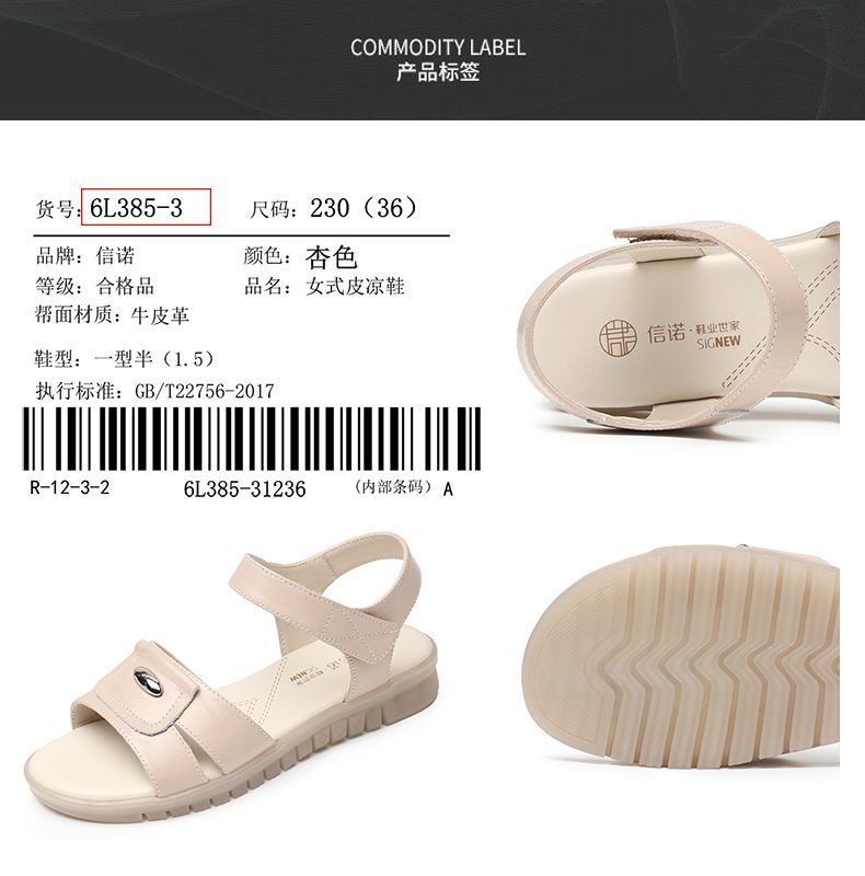 信诺妈妈凉鞋女平底软底舒适魔术贴中老年休闲沙滩鞋2026夏季新款6L385-3