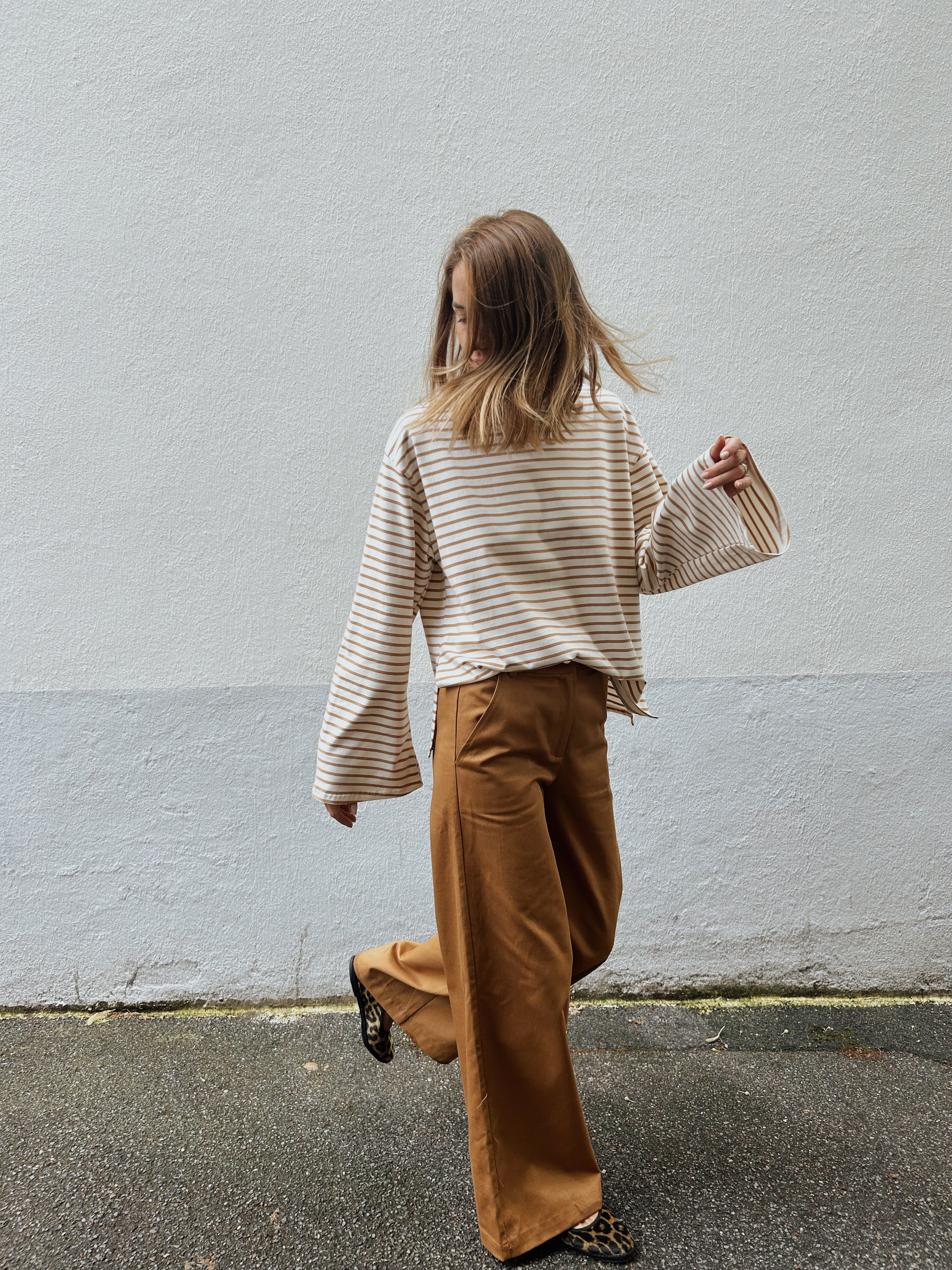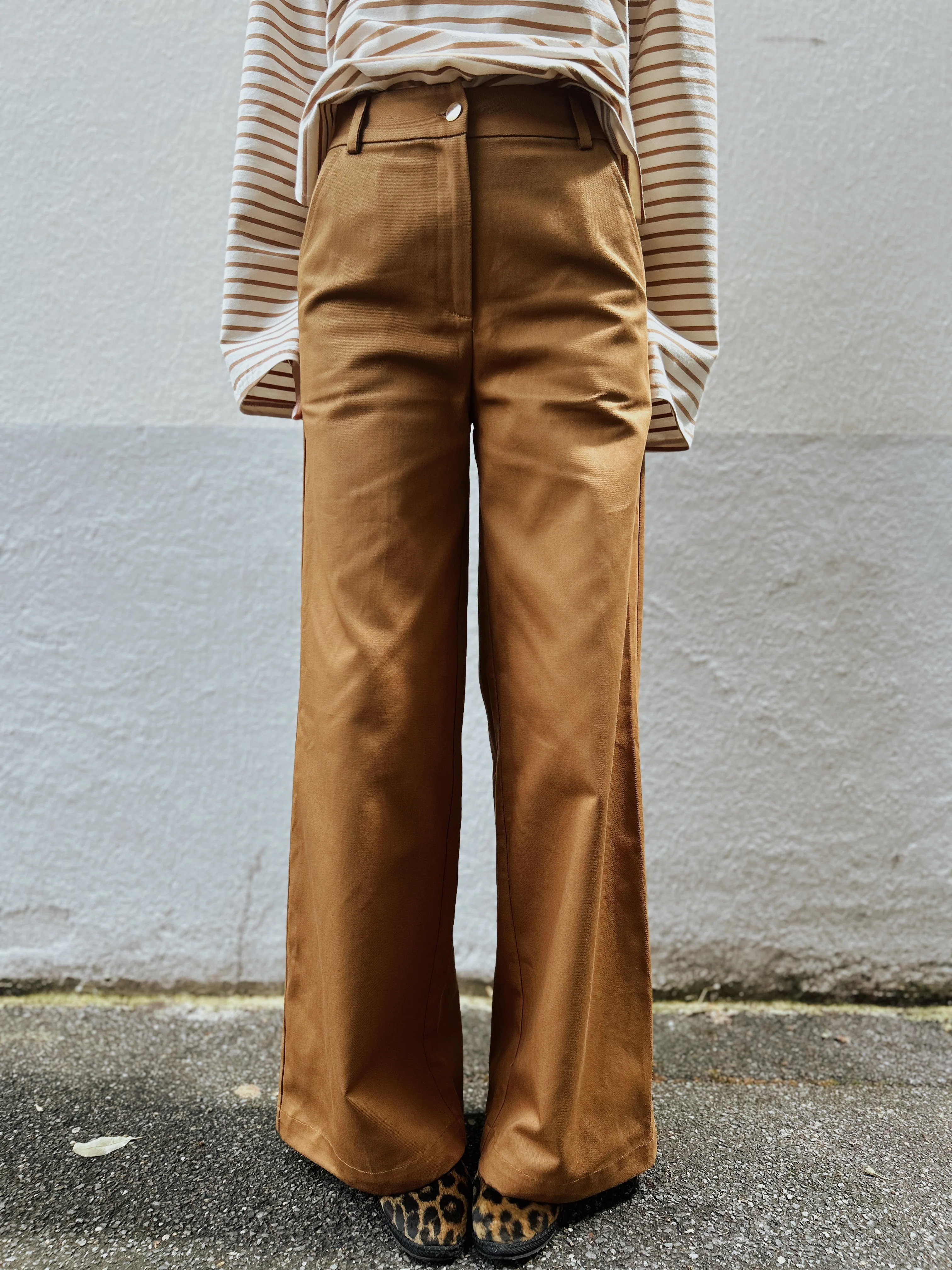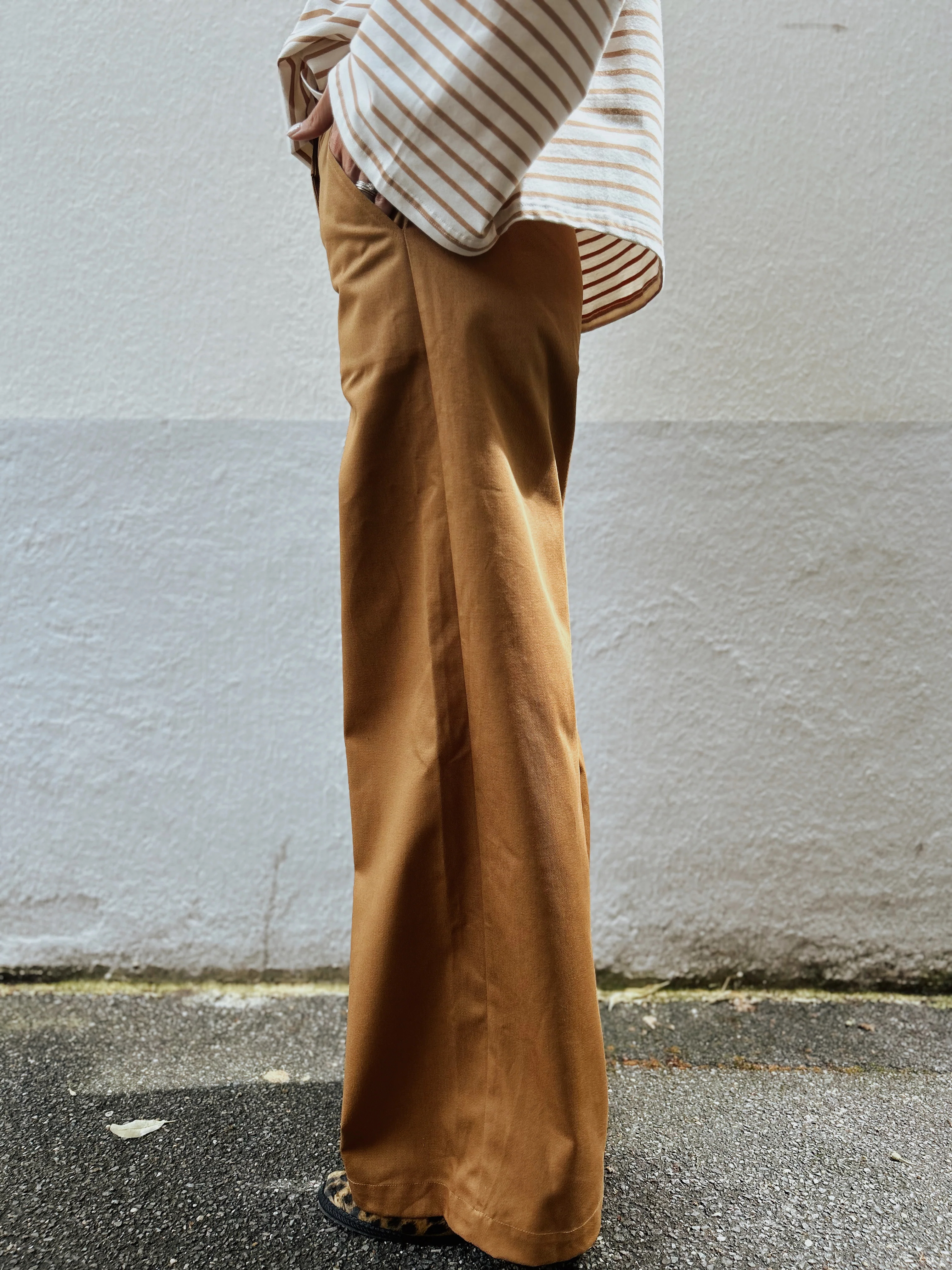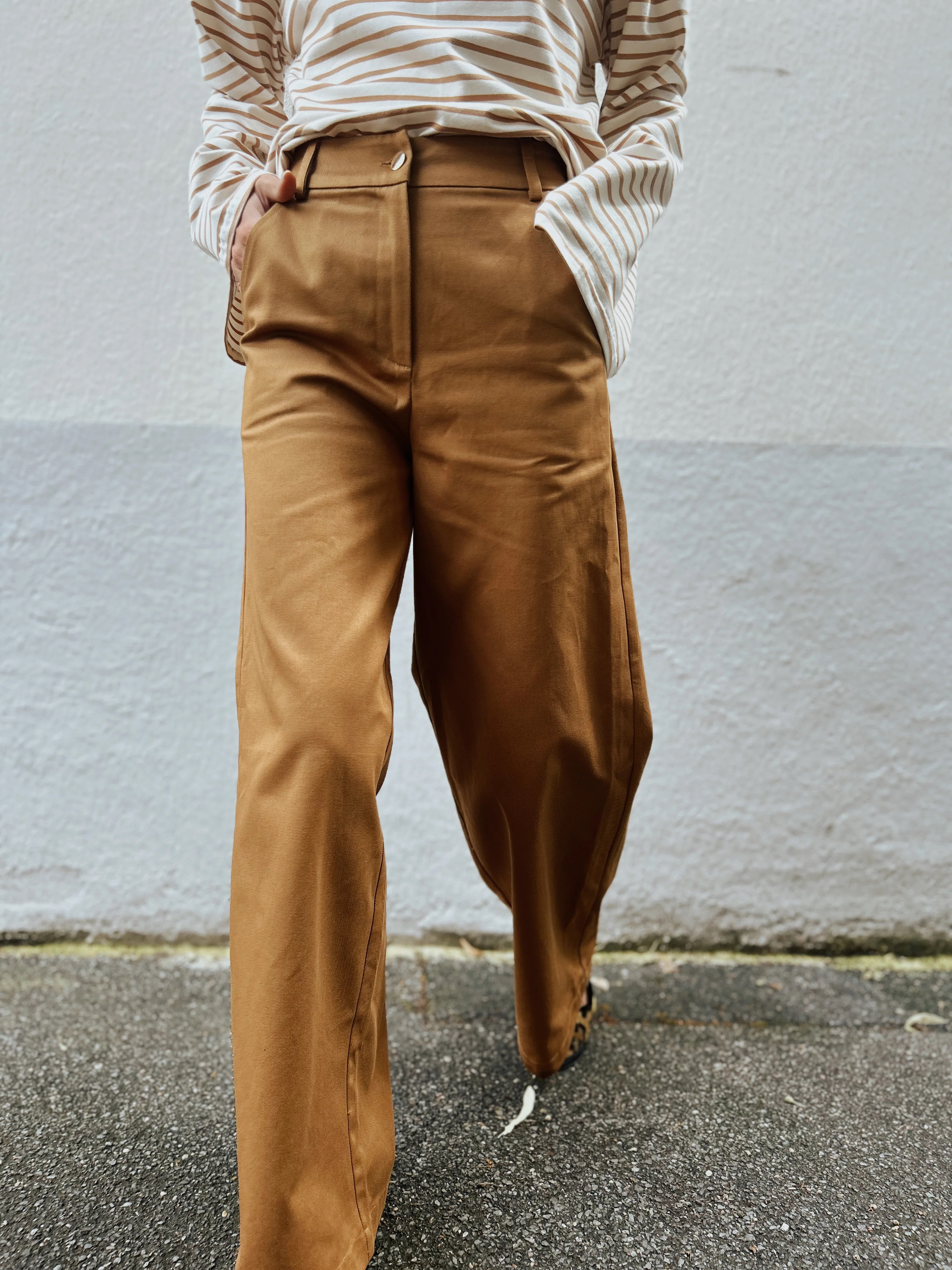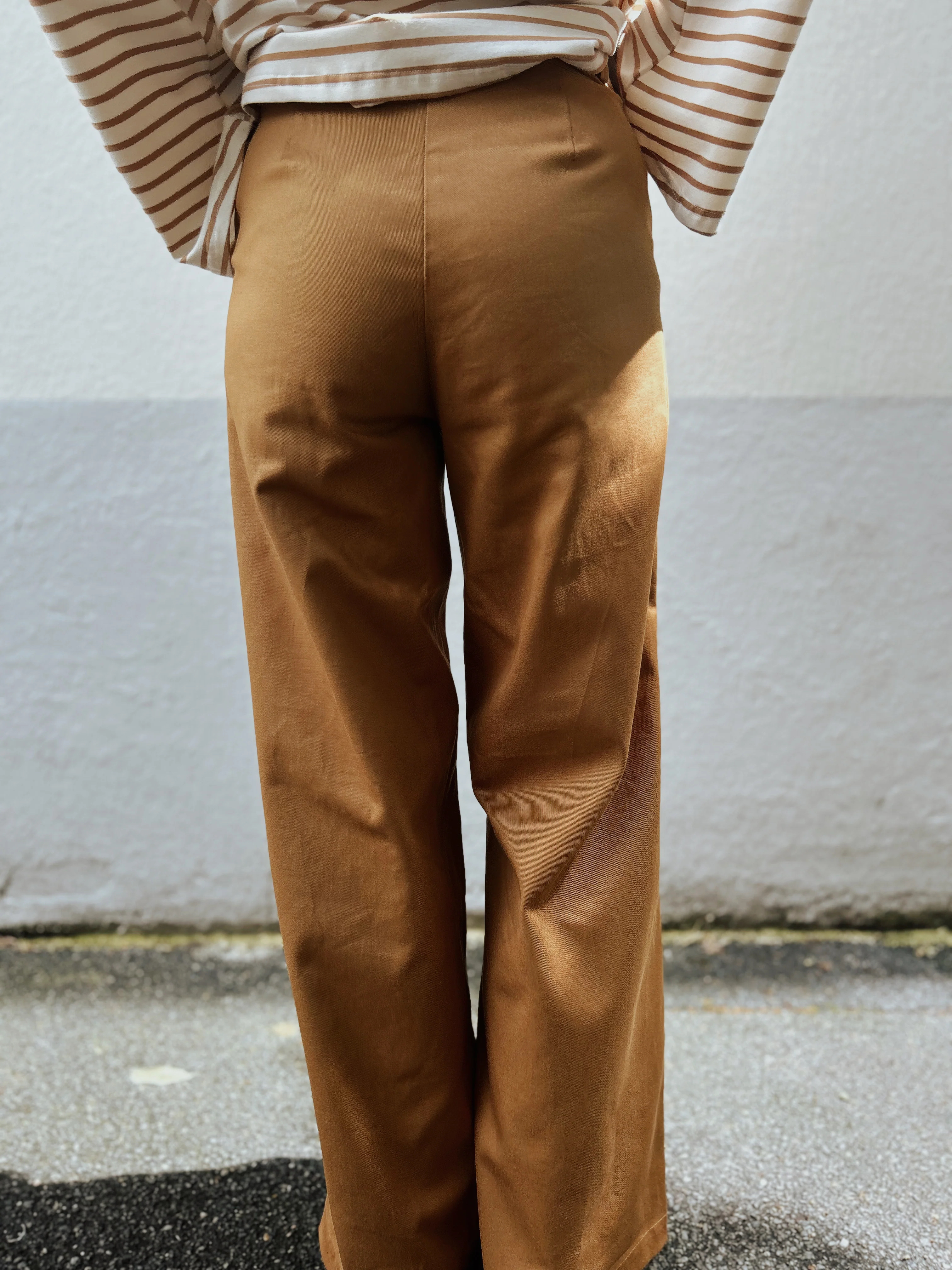 TYNVIE 撞色褶皱腰直筒休闲裤-黑色