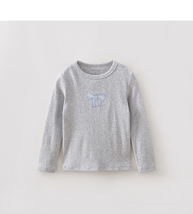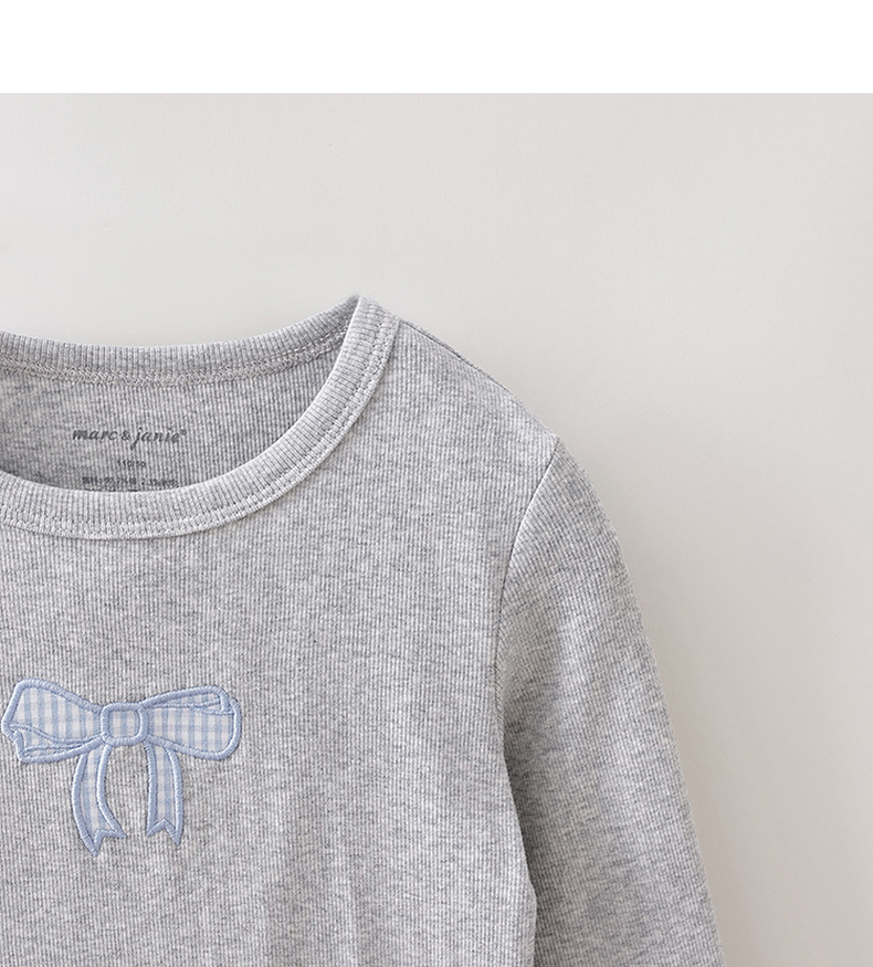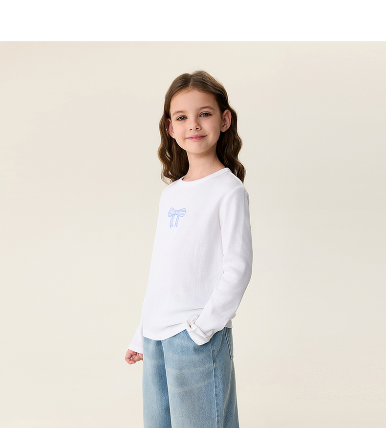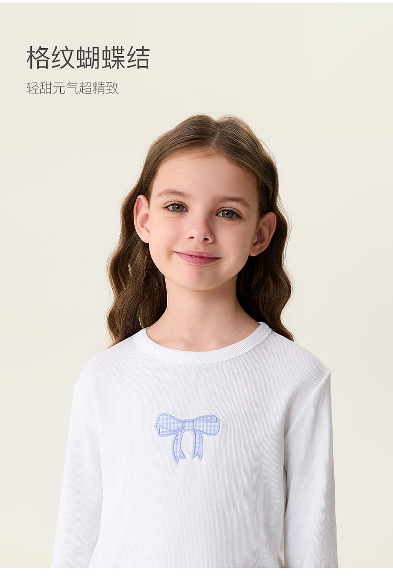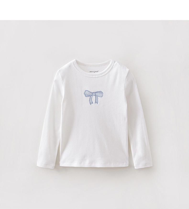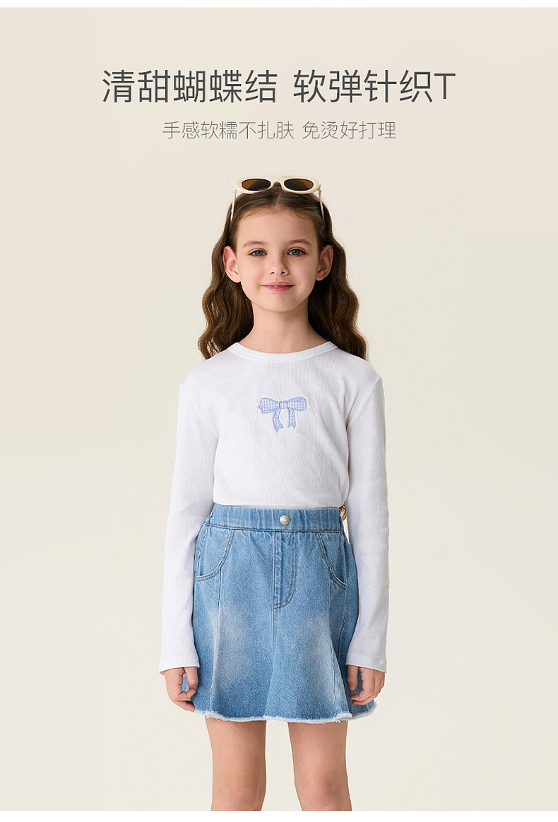 马克珍妮清甜蝴蝶结女童软弹针织T恤2026年春装新款560183