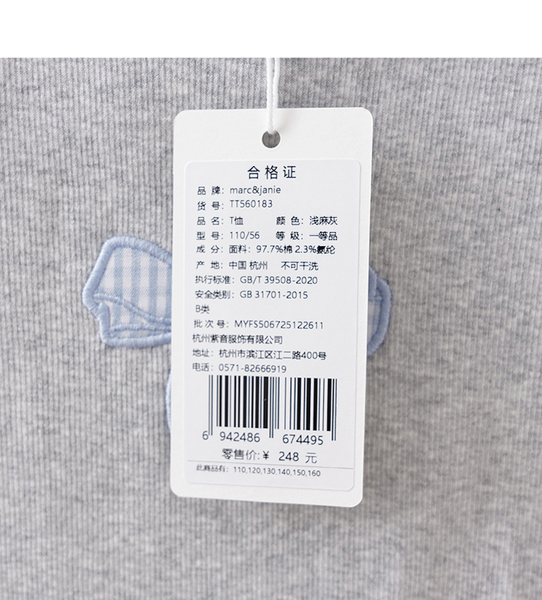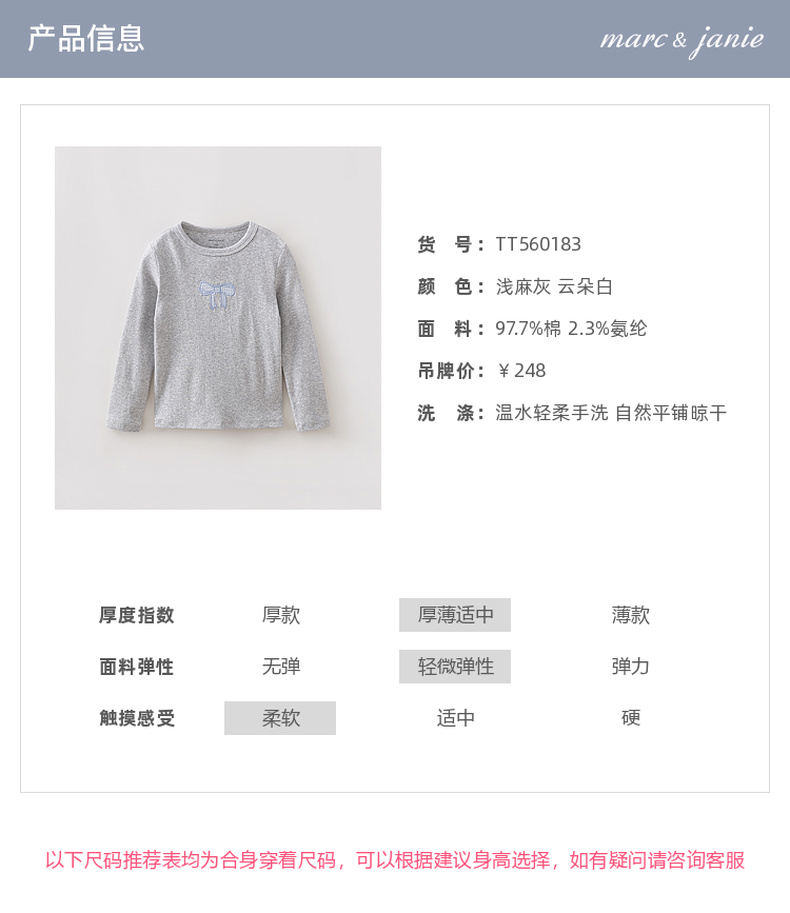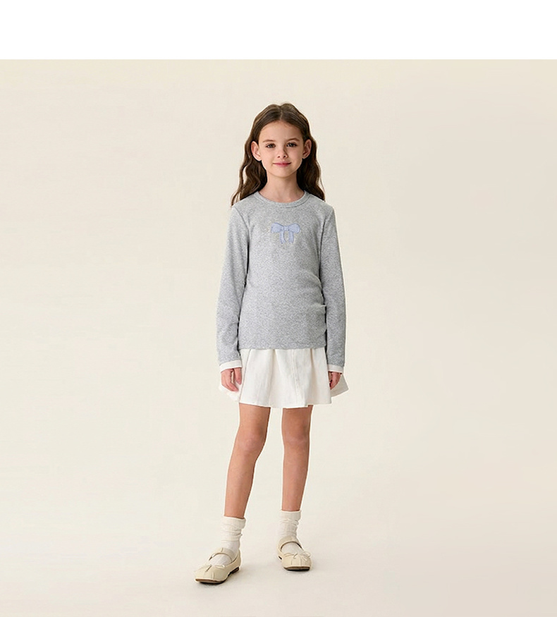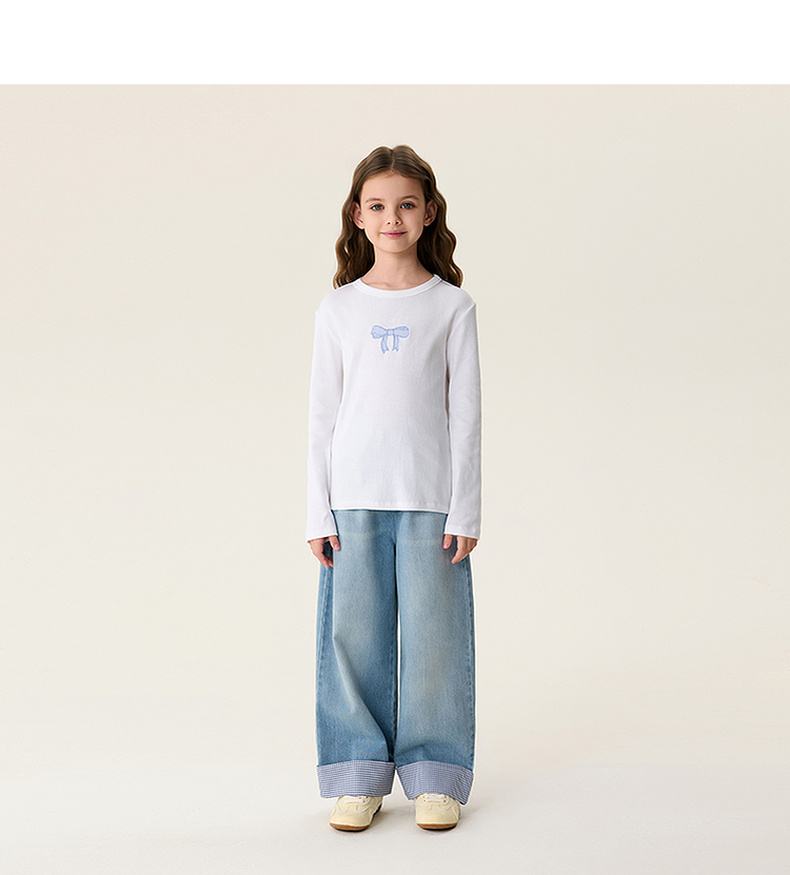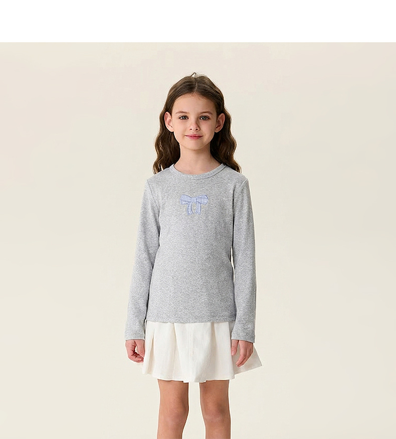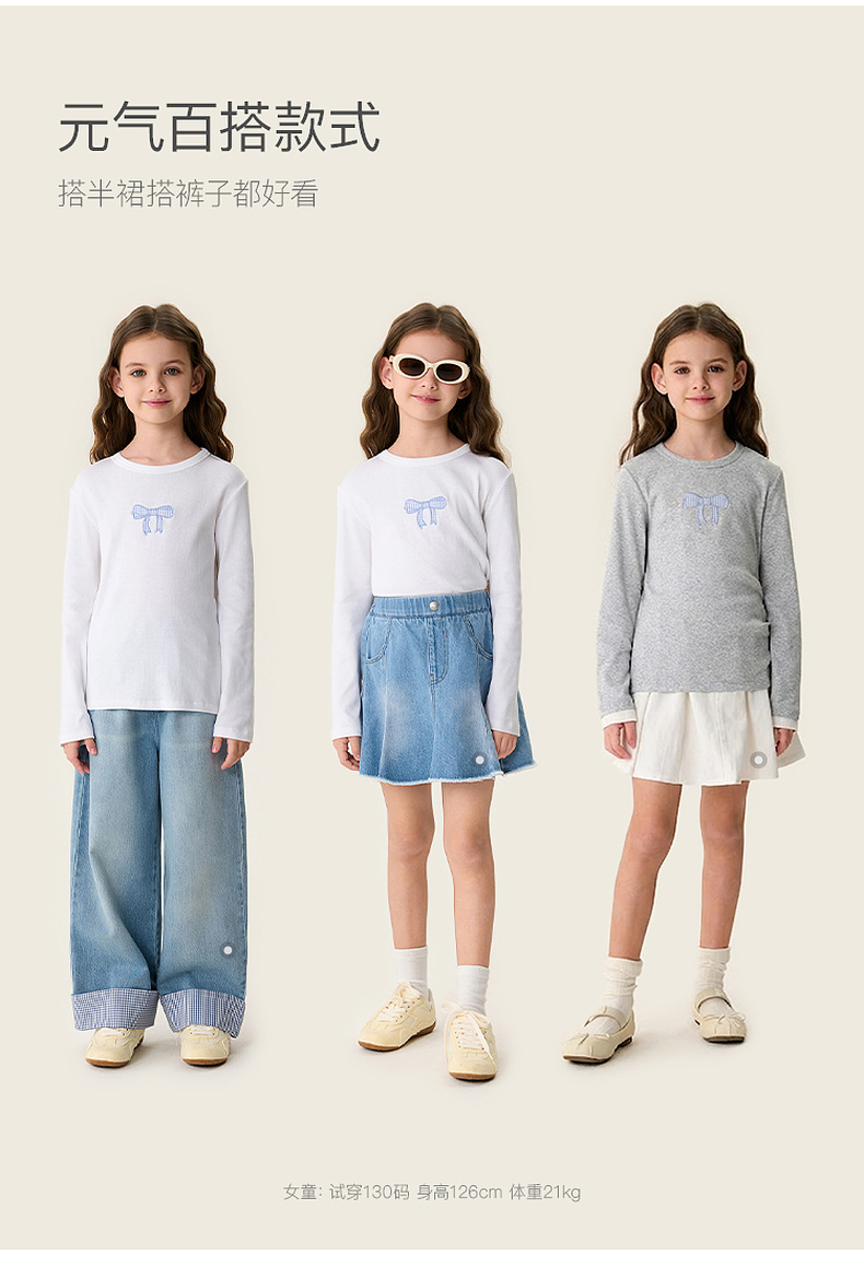马克珍妮清甜蝴蝶结女童软弹针织T恤2026年春装新款560183