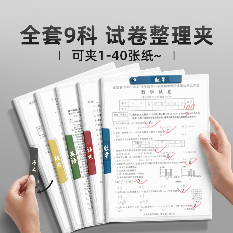 开学季福利!【9个装 送全科科目贴】a3双拉杆试卷夹文件夹小学生专用卷子收纳整理神器a4资料夹收纳袋