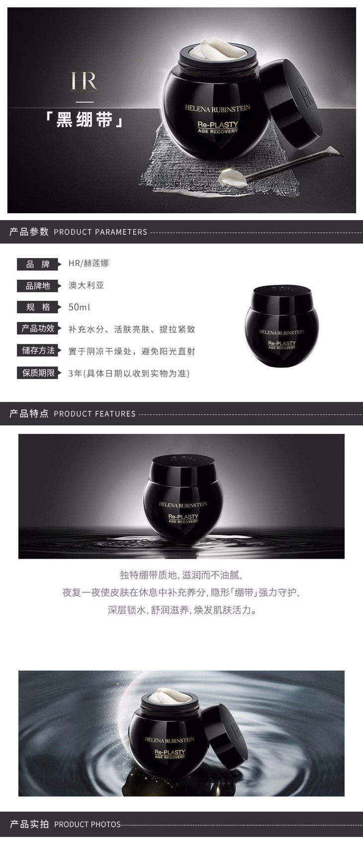 【完税进口】法国赫莲娜HR晚霜 50ml 黑绷带