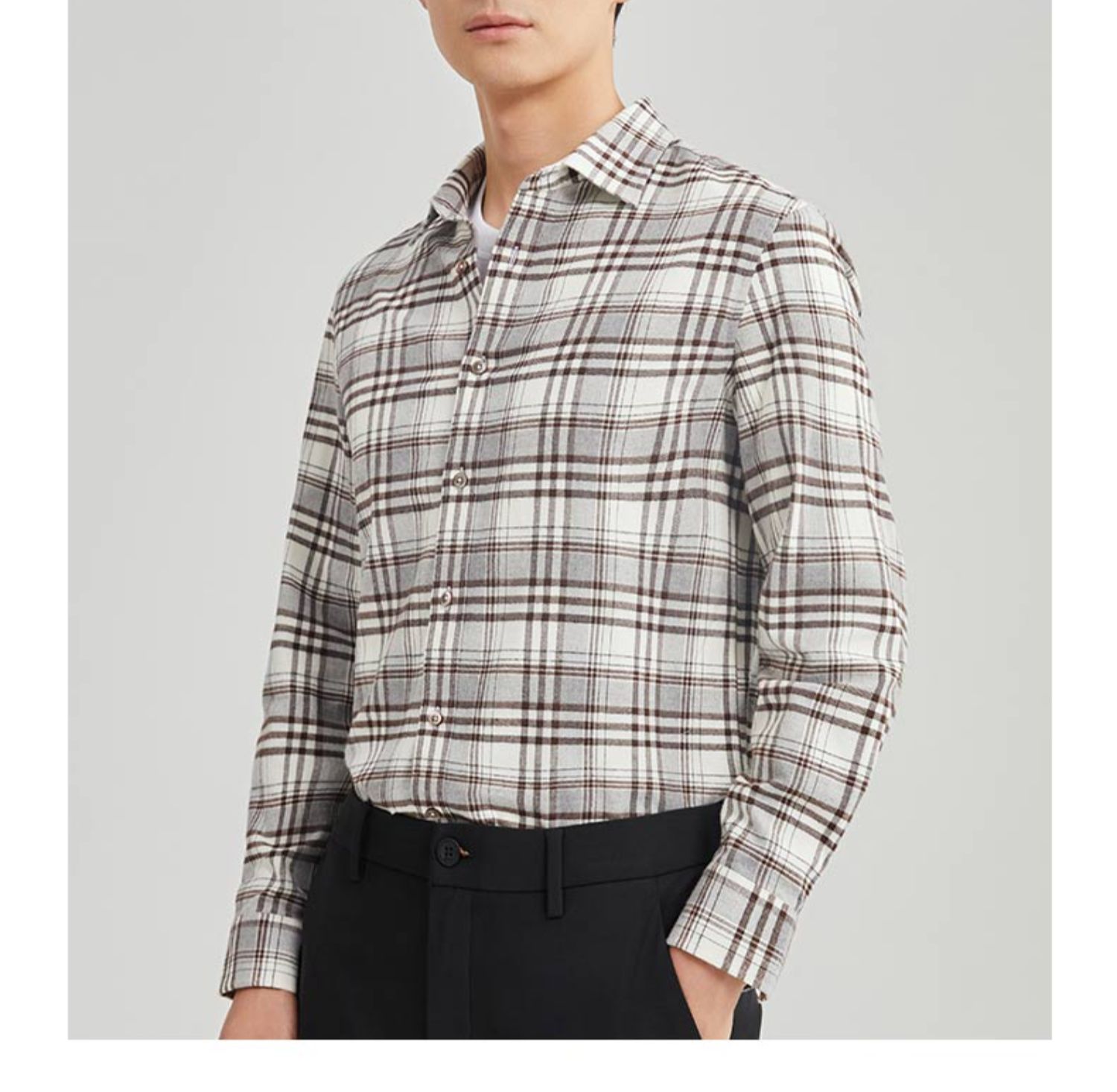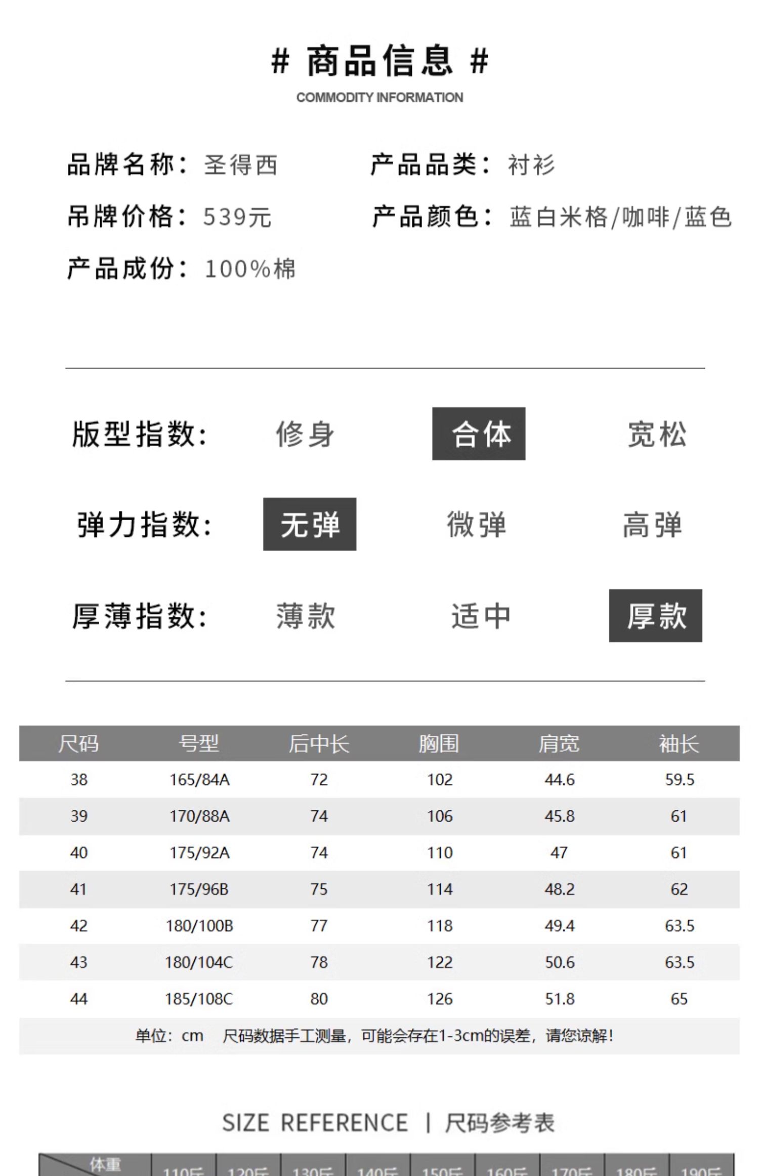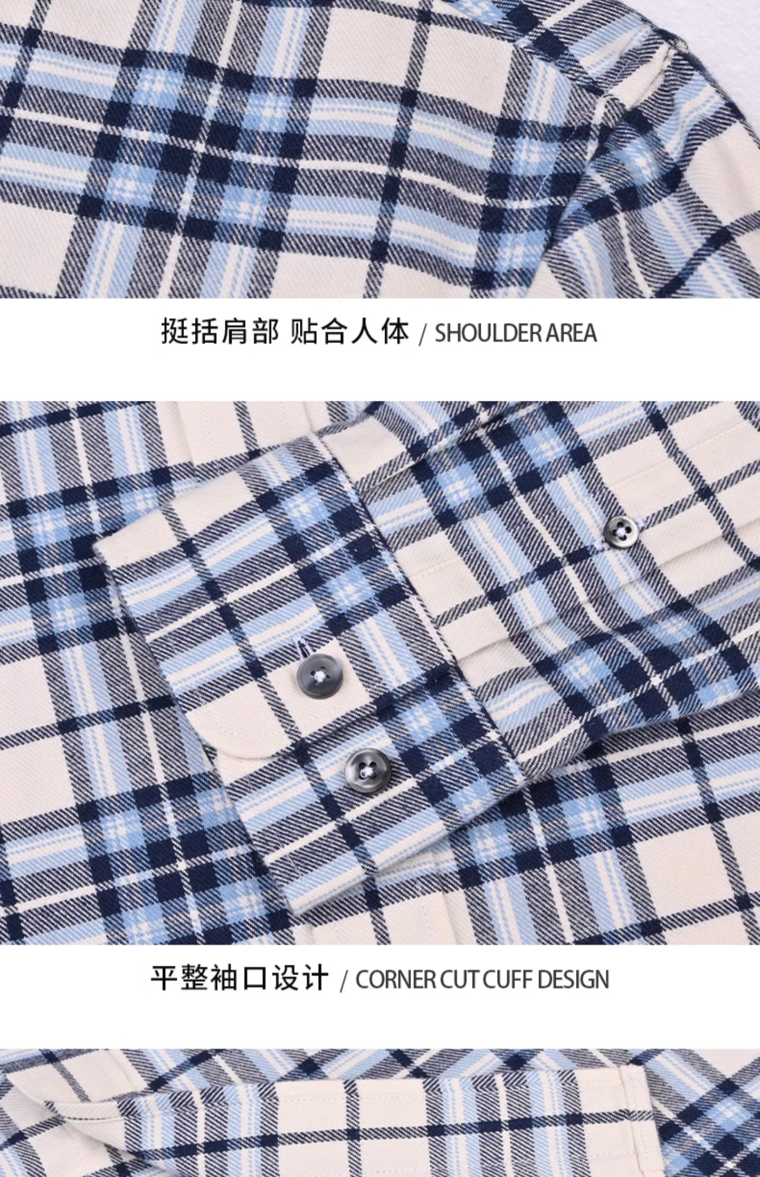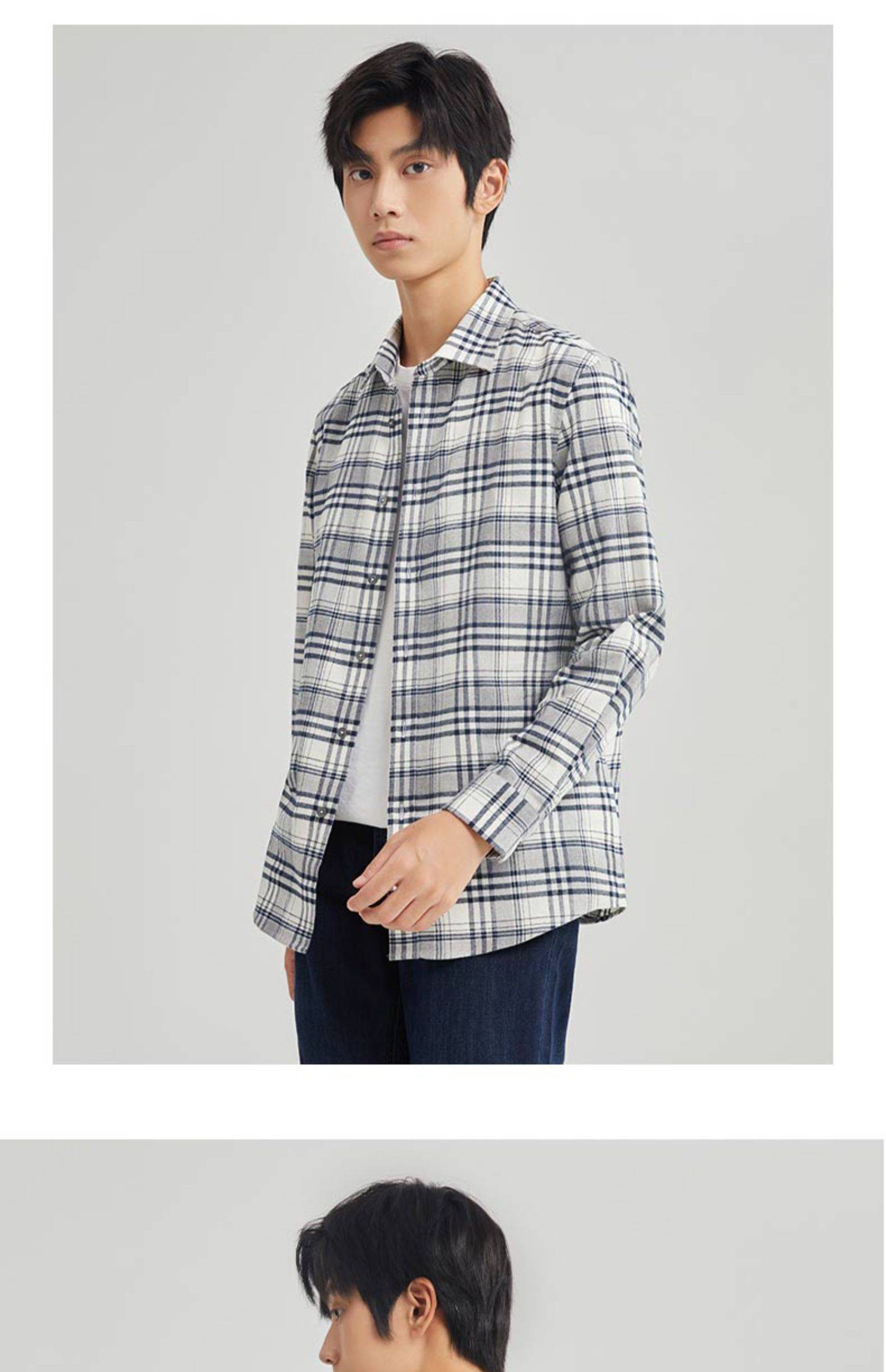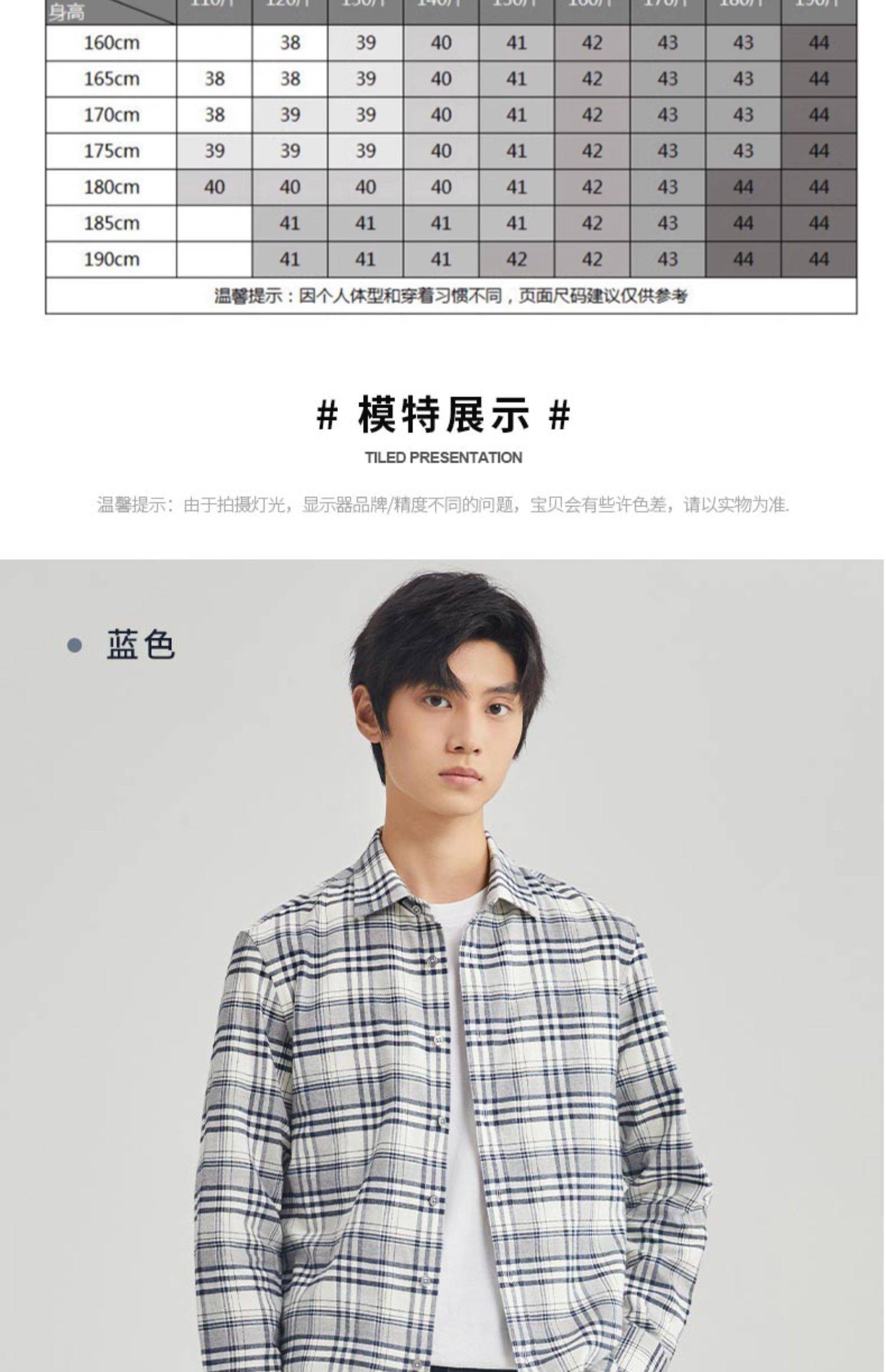 【100%棉】圣得西磨毛保暖商务休闲纯棉长袖衬衫秋冬新款格纹衬衣2352954511A